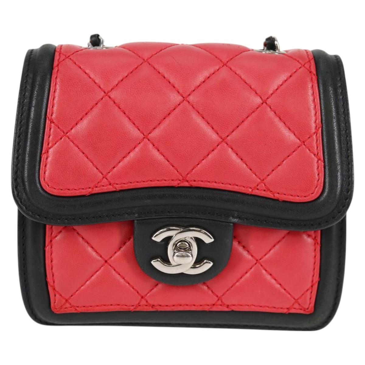 CHANEL Matelasse Chain Shoulder Bag Lamb Skin Red Silver CC Auth 127167M