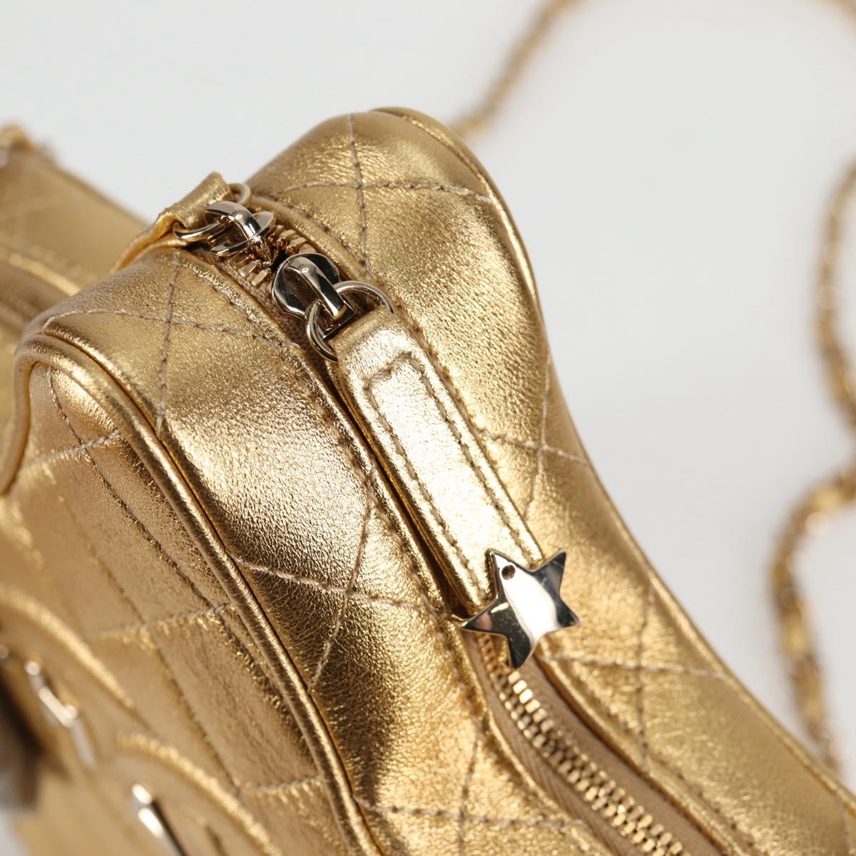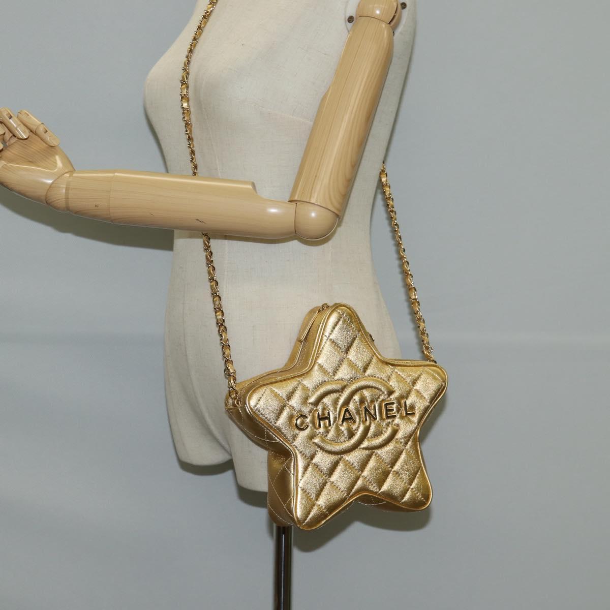 CHANEL Matelasse Chain Shoulder Bag Leather Gold CC Auth 127169SM