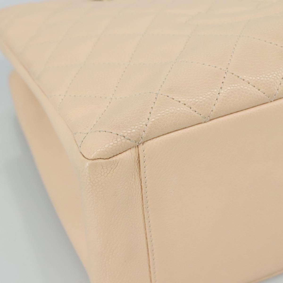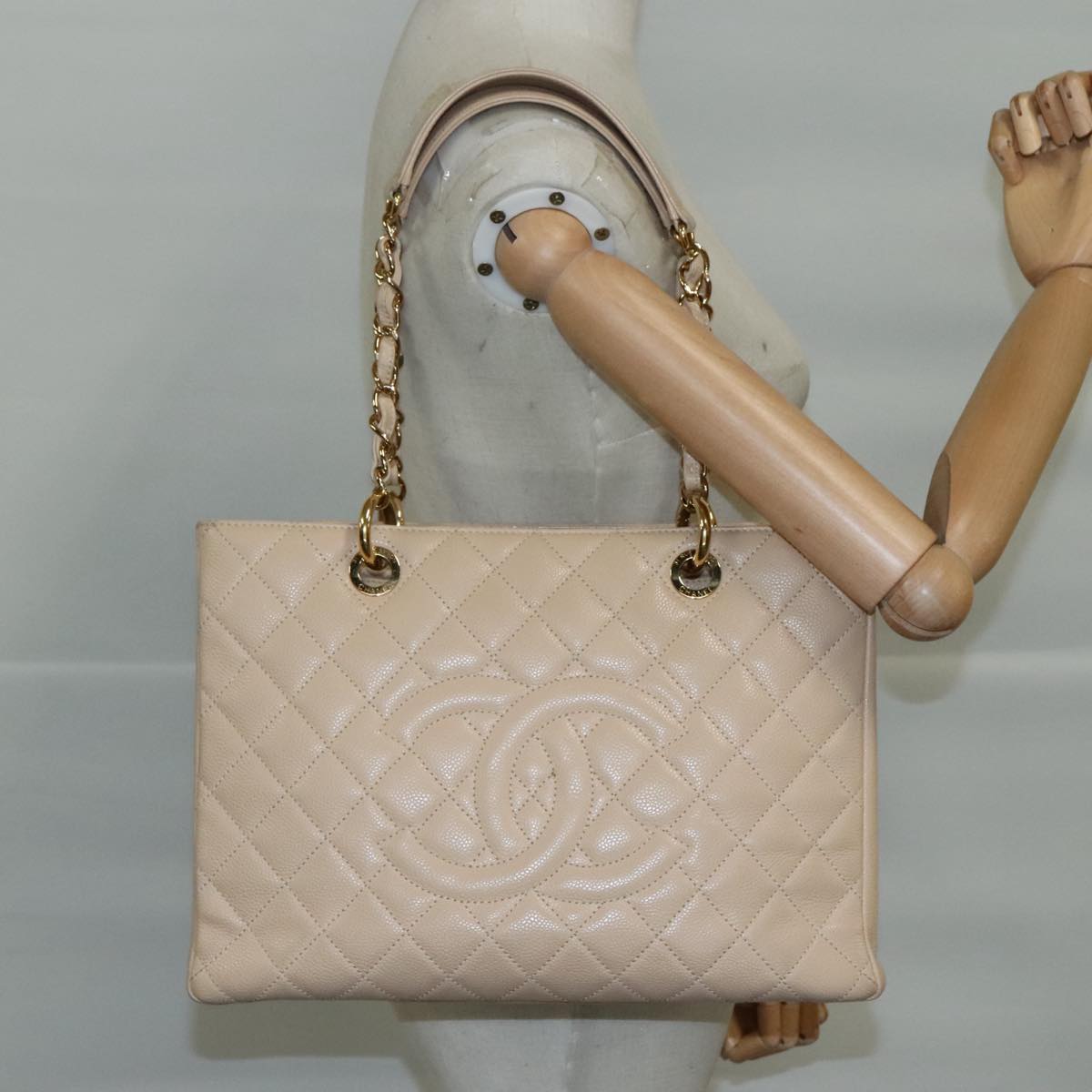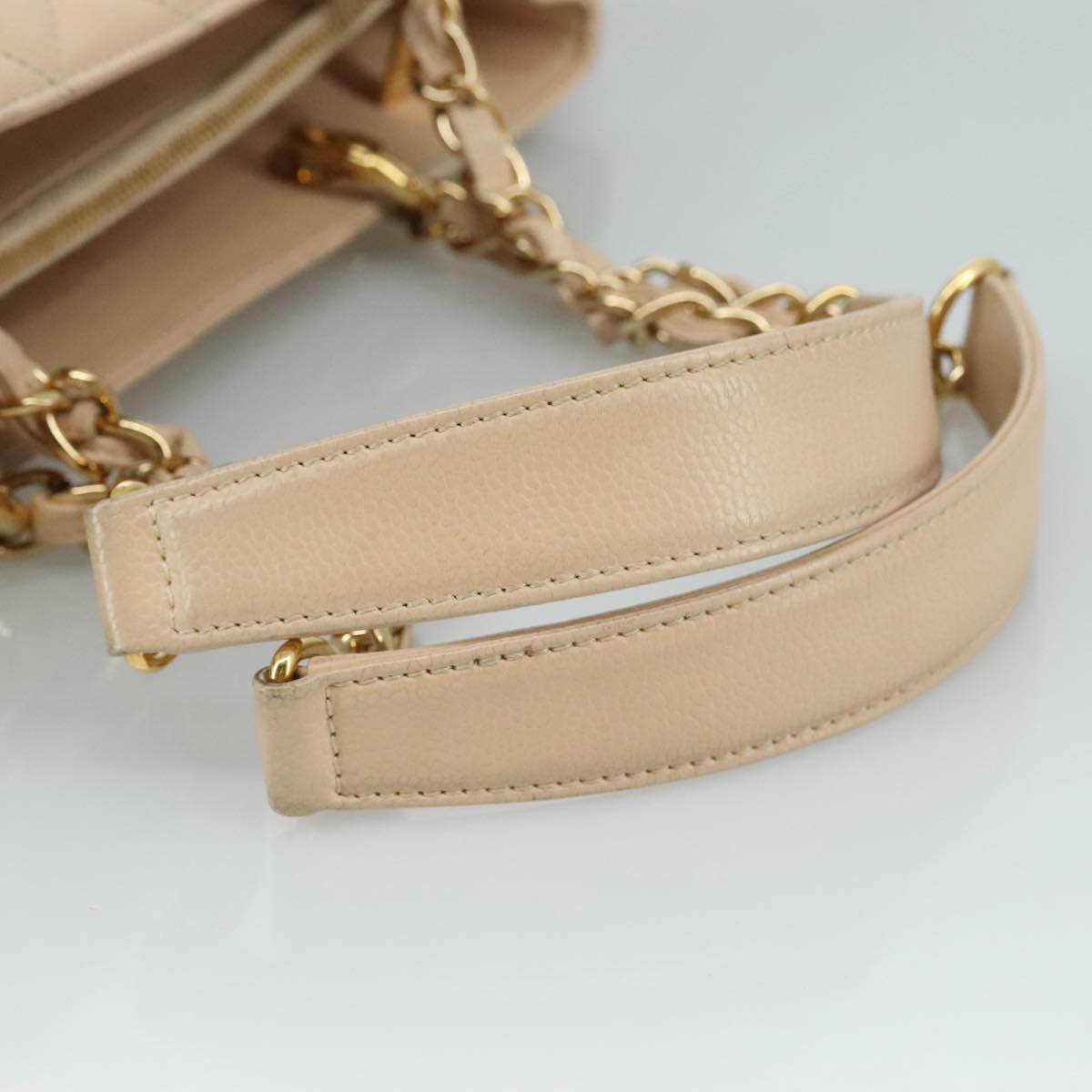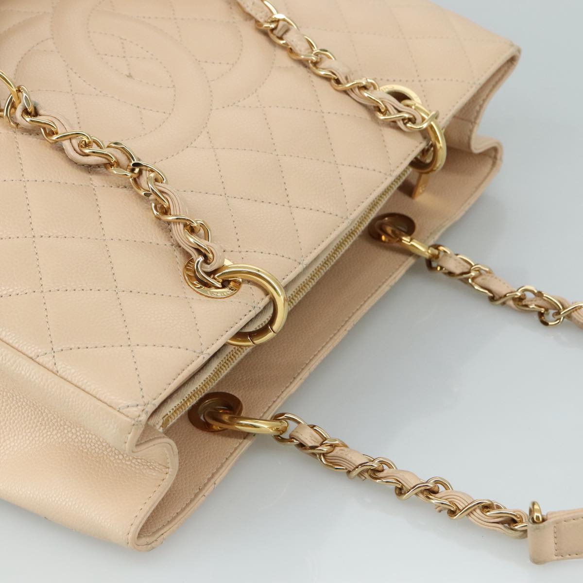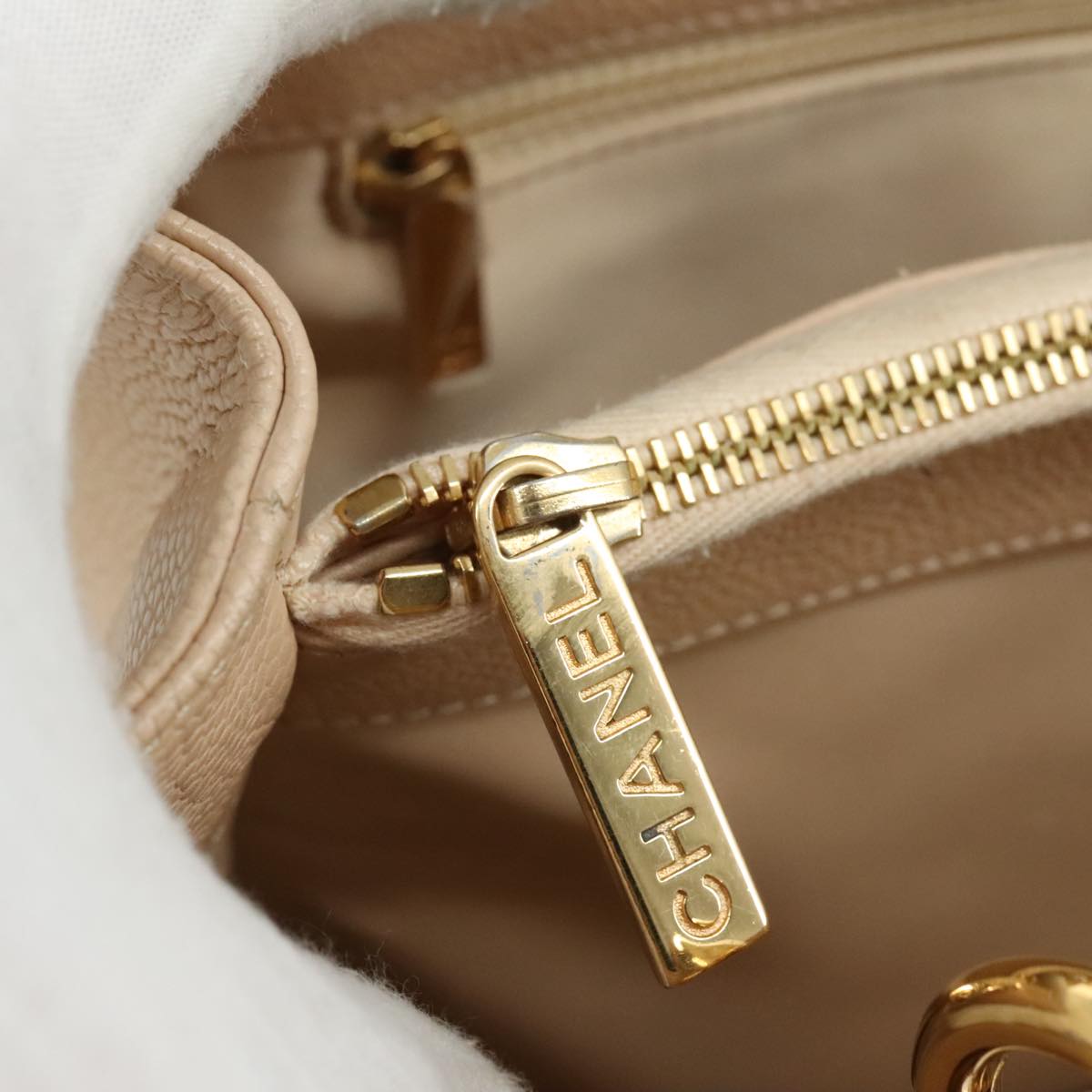 CHANEL Matelasse Chain Tote Bag Caviar Skin Beige Gold CC Auth PP121V