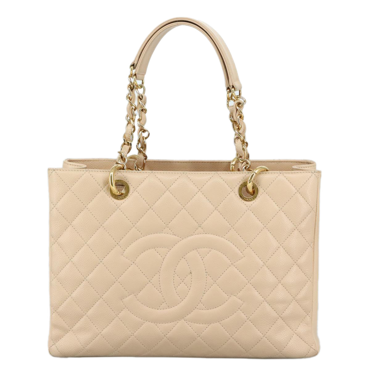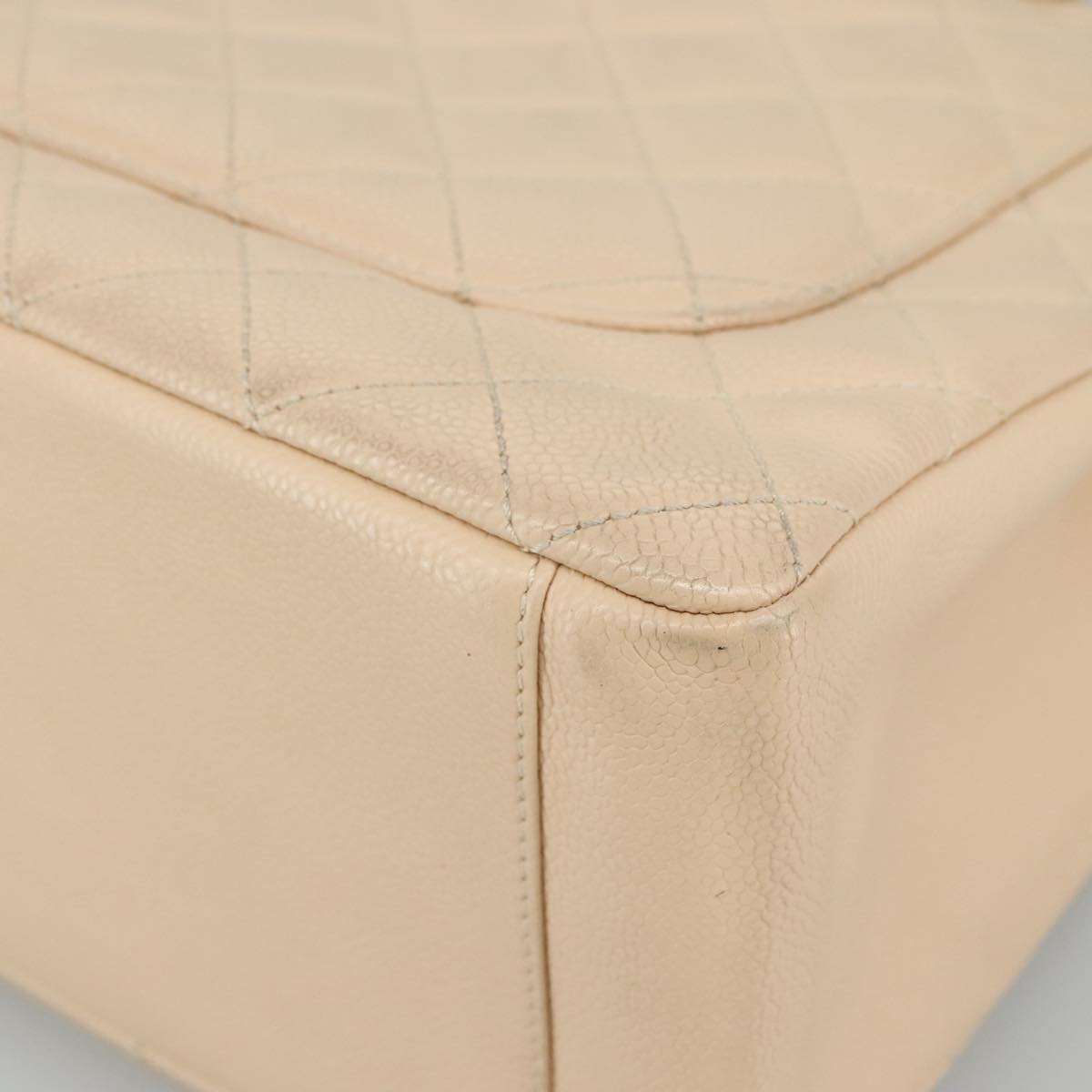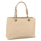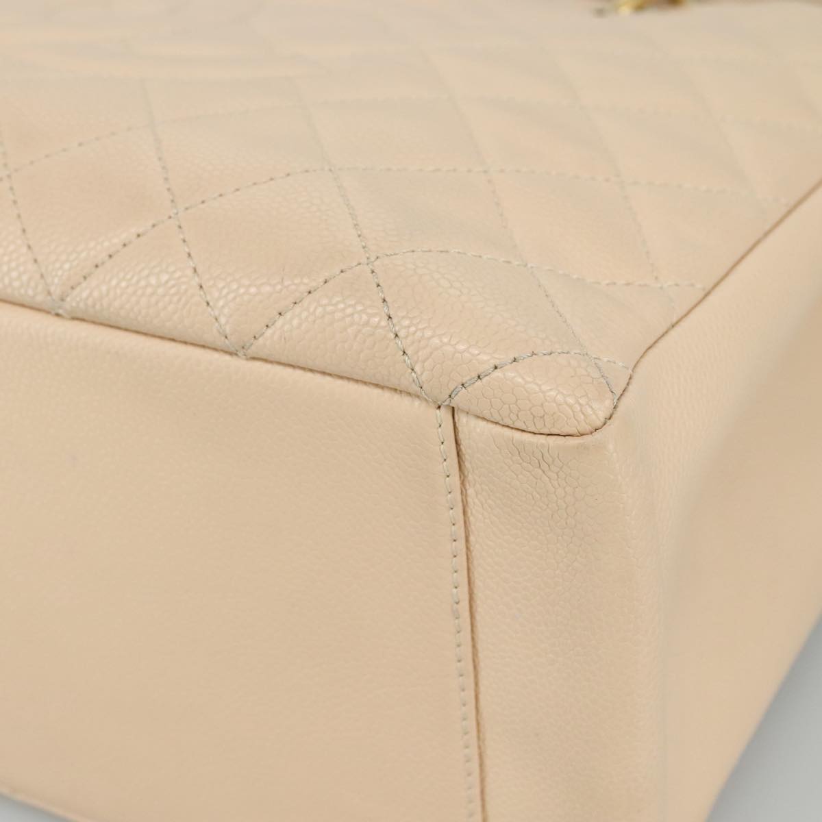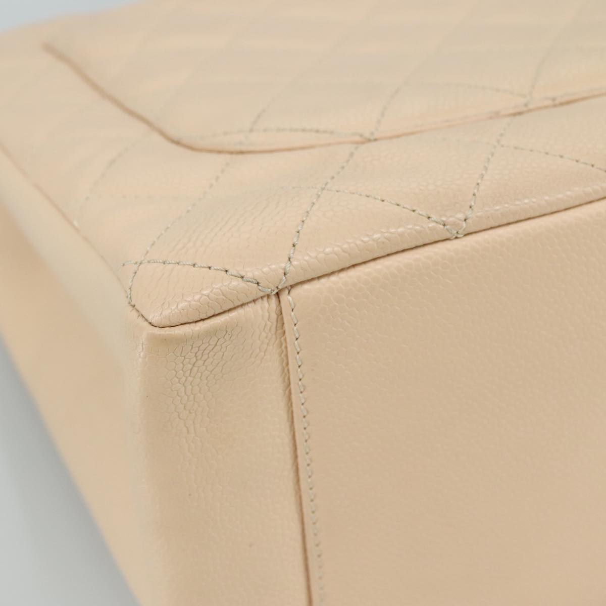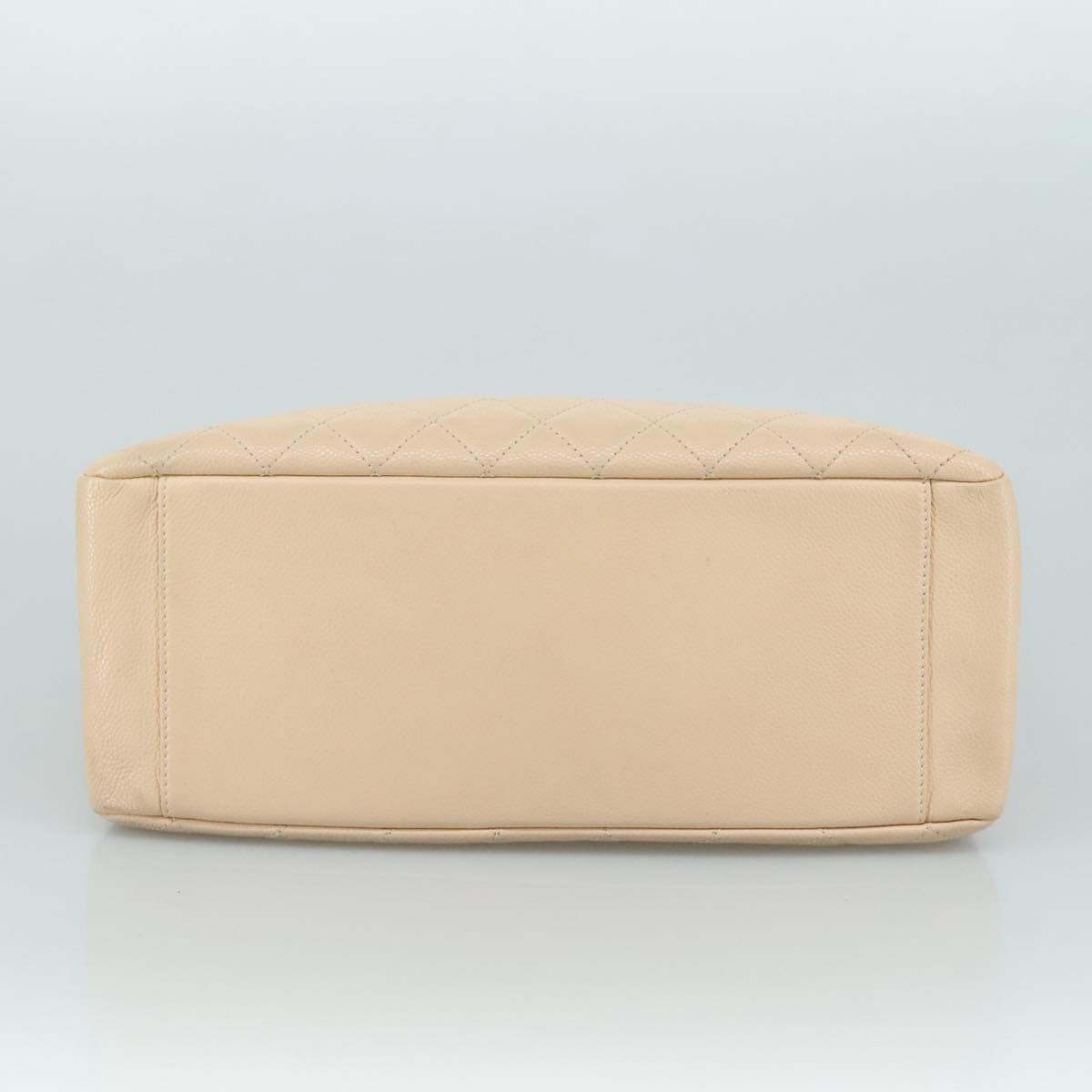 CHANEL Matelasse Chain Tote Bag Caviar Skin Beige Gold CC Auth PP121V
