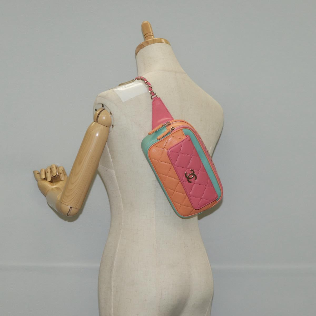 CHANEL Matelasse Chain Waist bag Leather Pink Gold CC Auth 125467SAM
