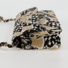 CHANEL Matelasse Checkered Flag Chain Shoulder Bag Nylon Beige CC Auth 125975M