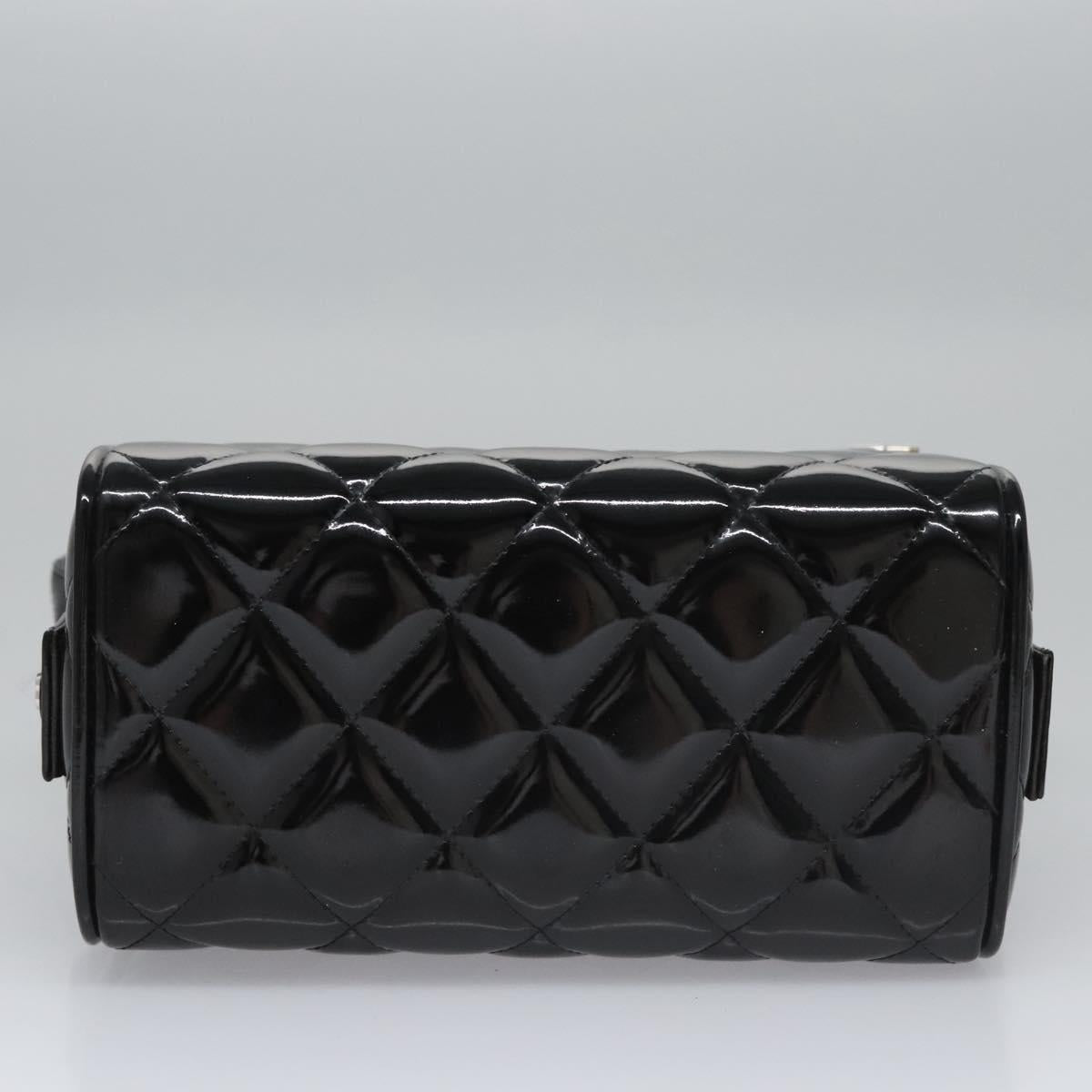 CHANEL Matelasse Hand Bag Patent leather Black CC Auth BA452AV