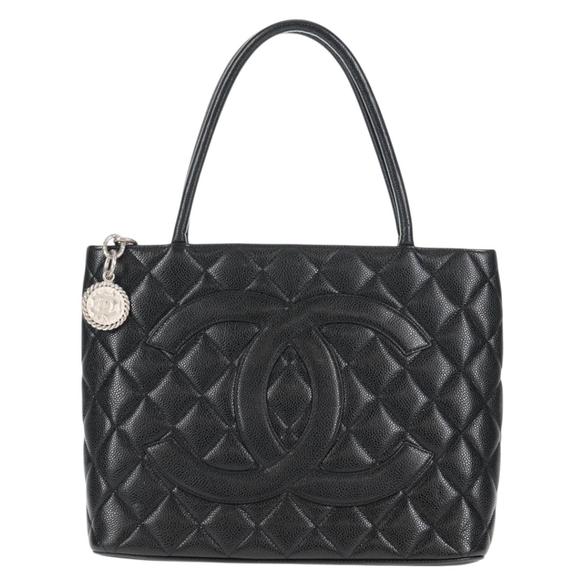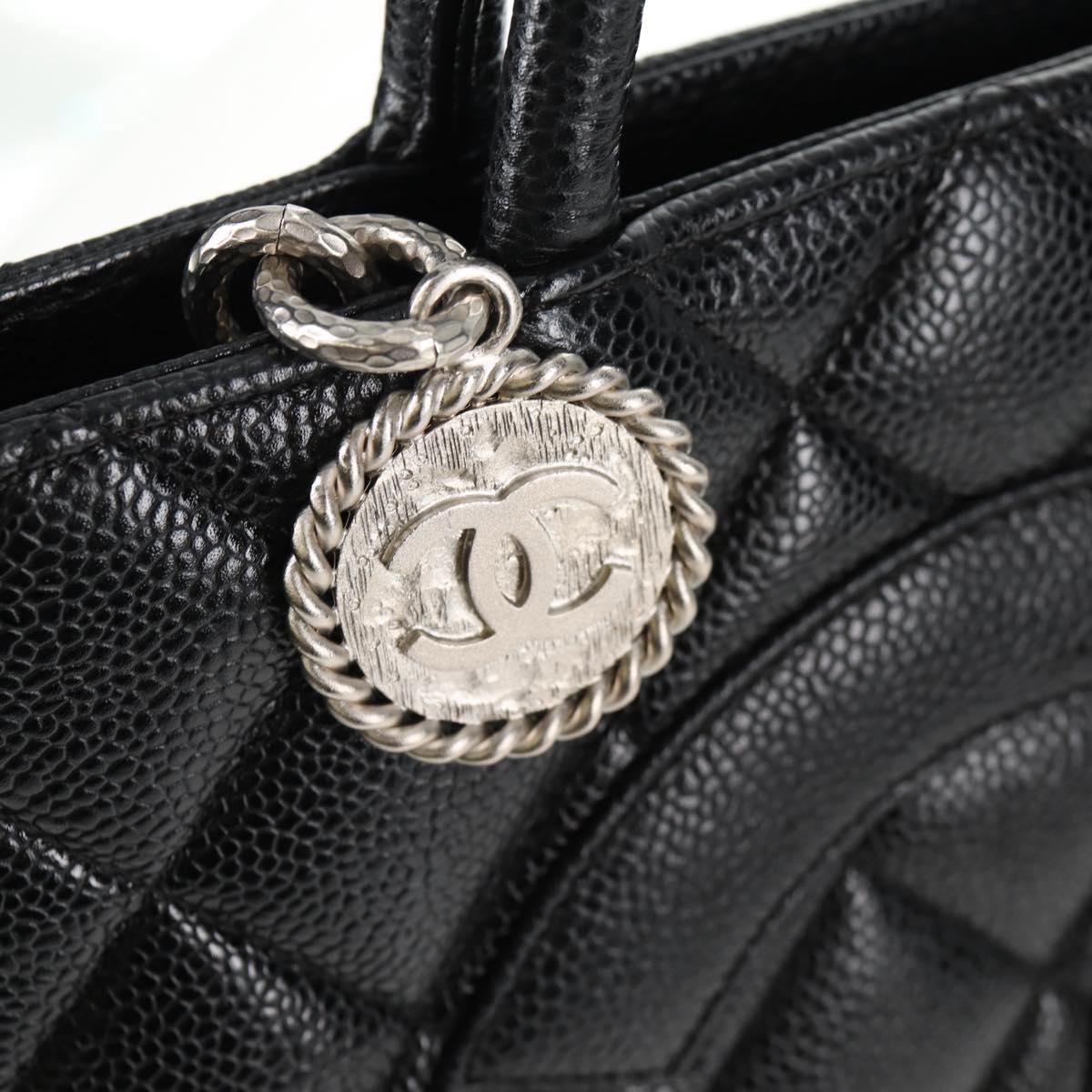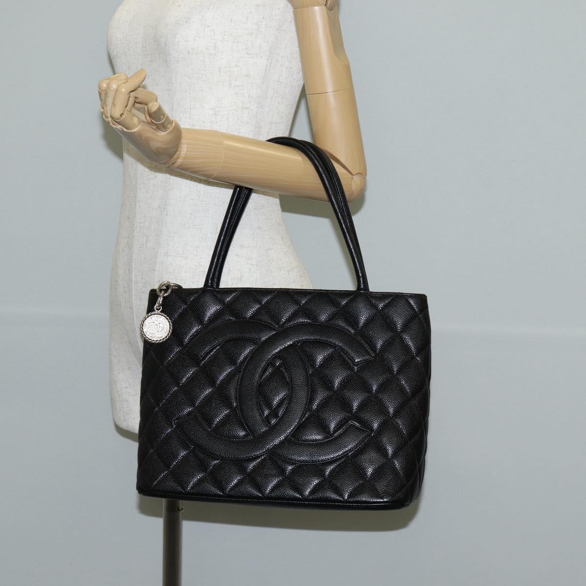 CHANEL Matelasse Reprint Tote Bag Caviar Skin Black Silver CC Auth ac3878V