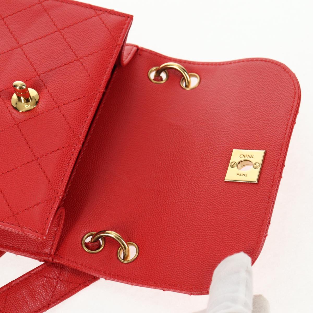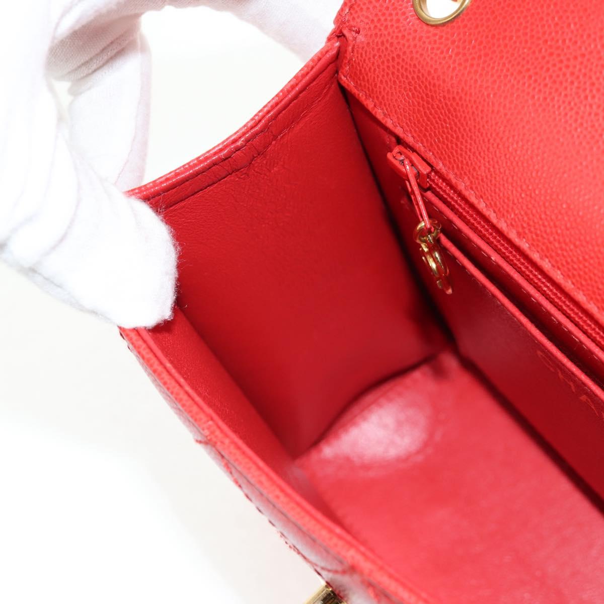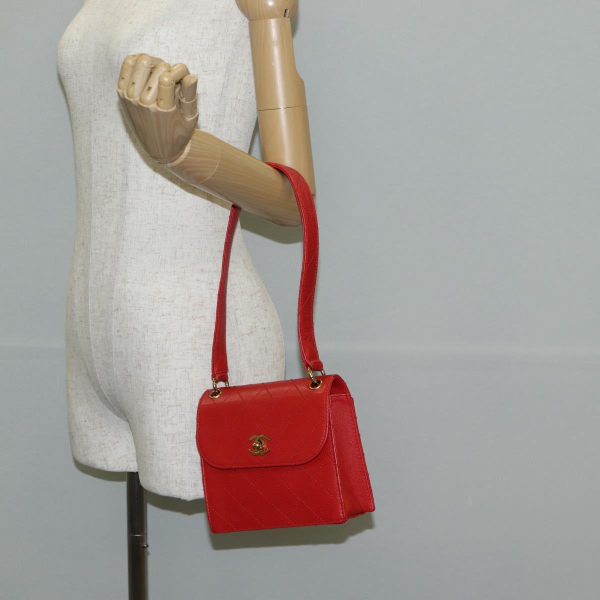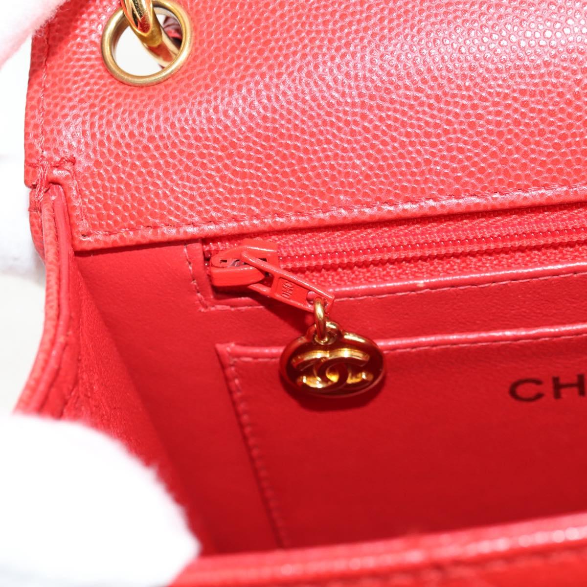 CHANEL Matelasse Shoulder Bag Caviar Skin Red Gold CC Auth gh936V