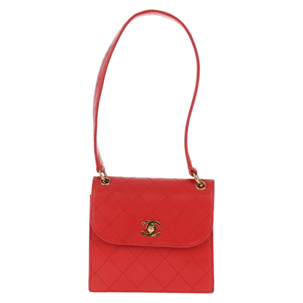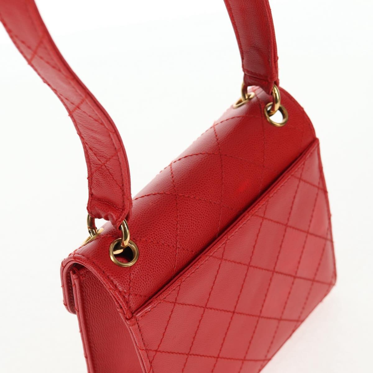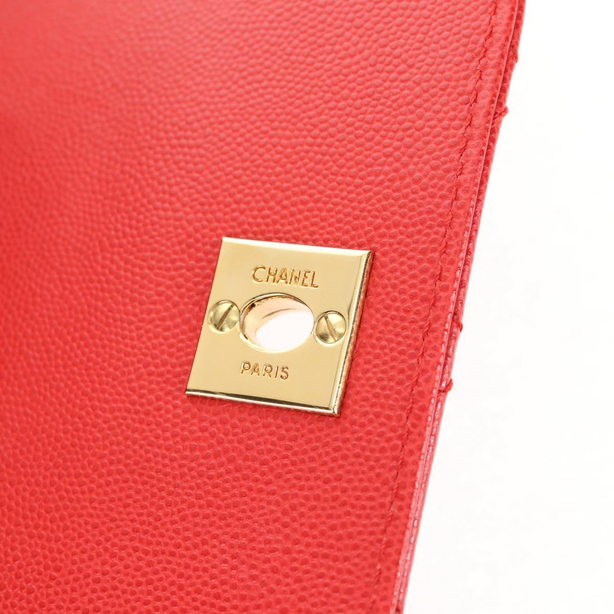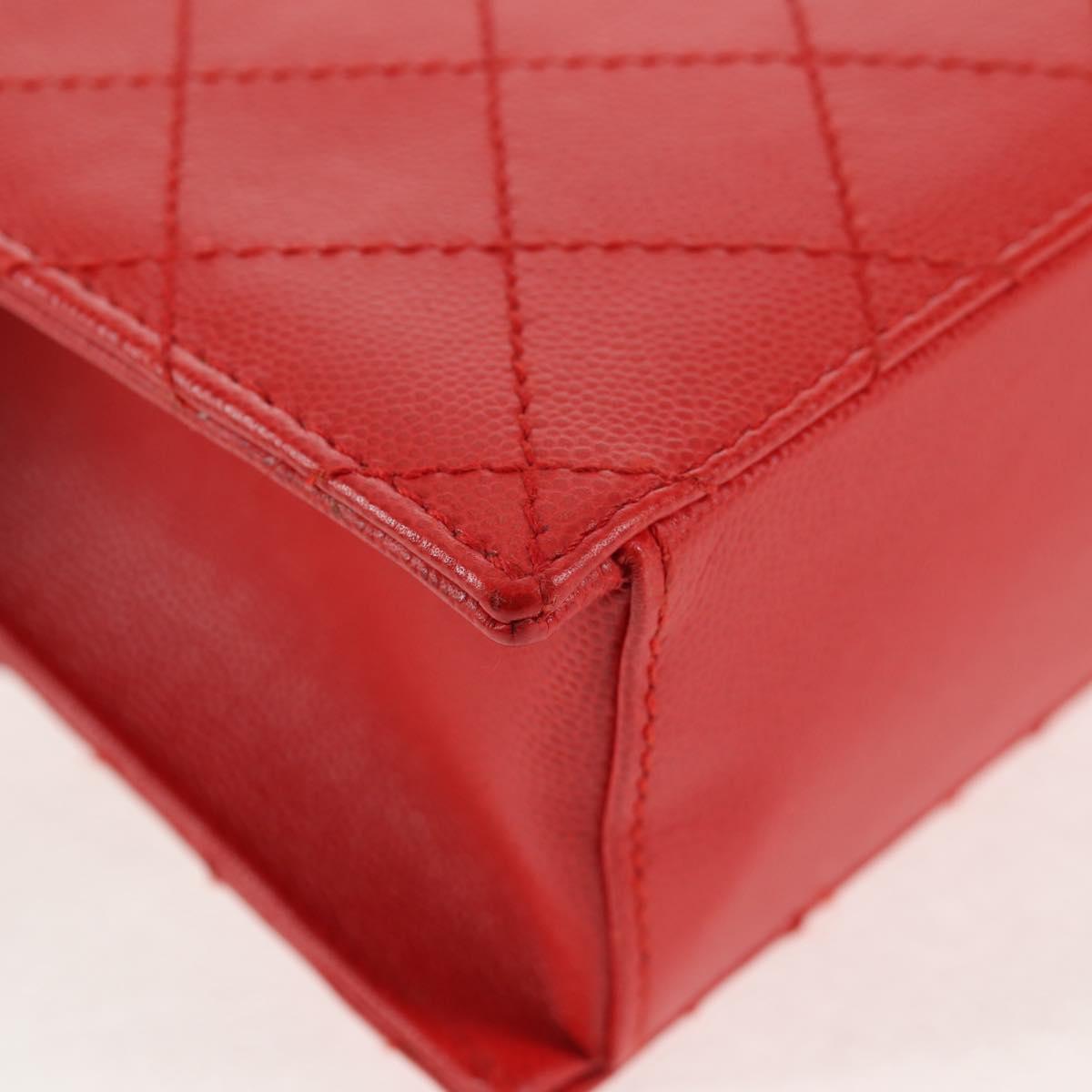 CHANEL Matelasse Shoulder Bag Caviar Skin Red Gold CC Auth gh936V
