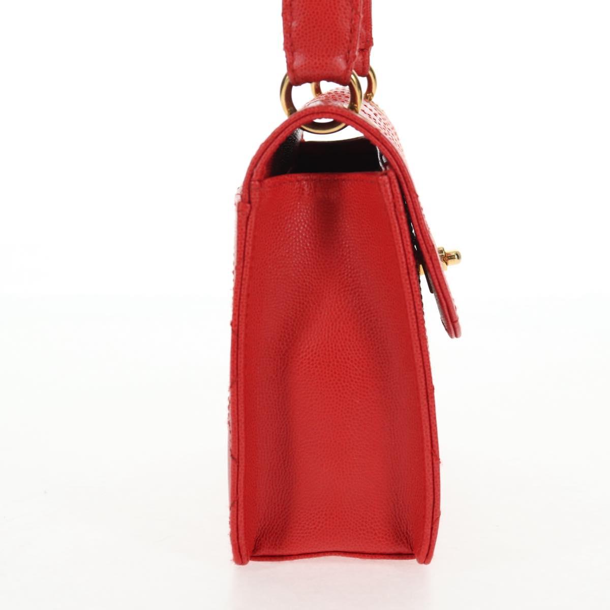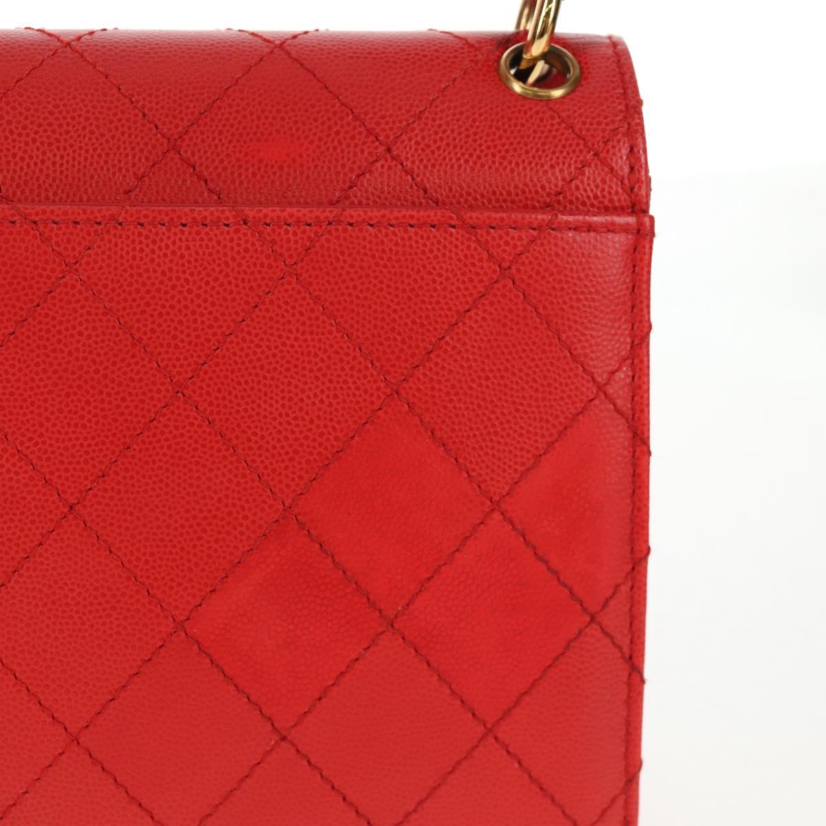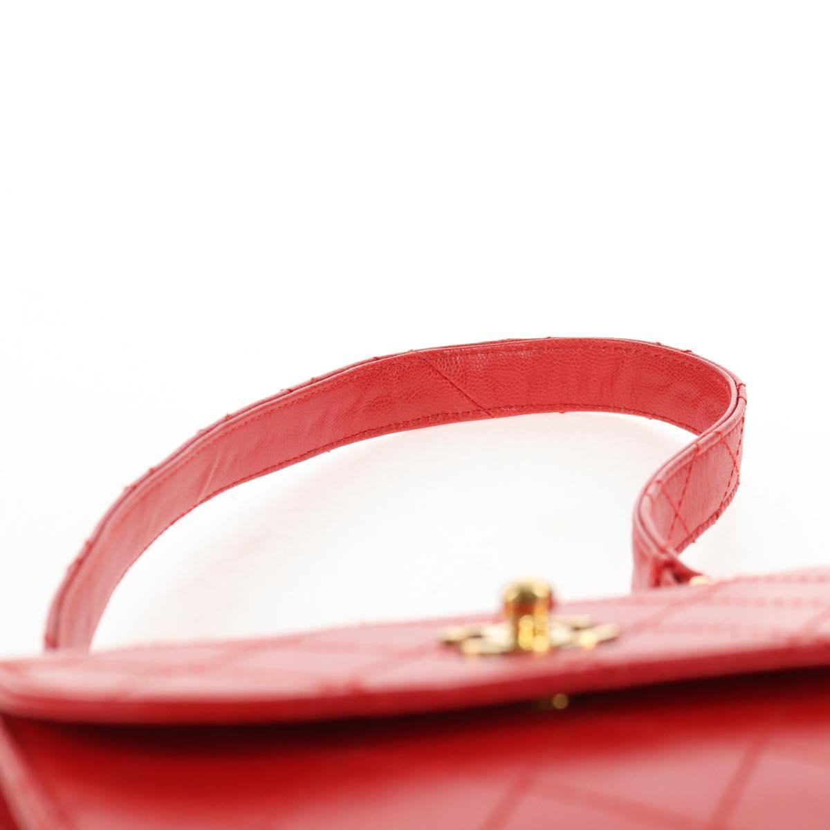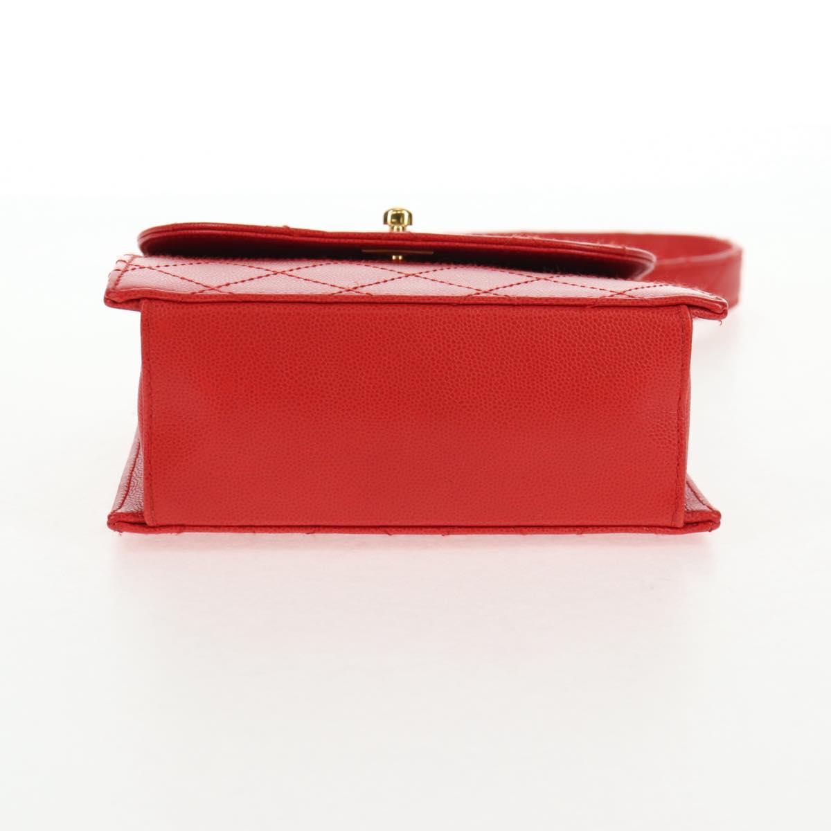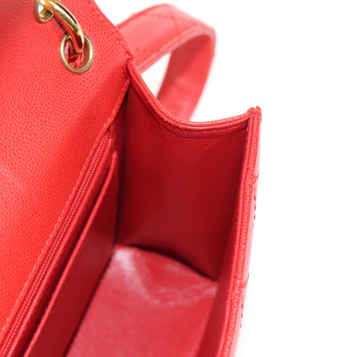 CHANEL Matelasse Shoulder Bag Caviar Skin Red Gold CC Auth gh936V