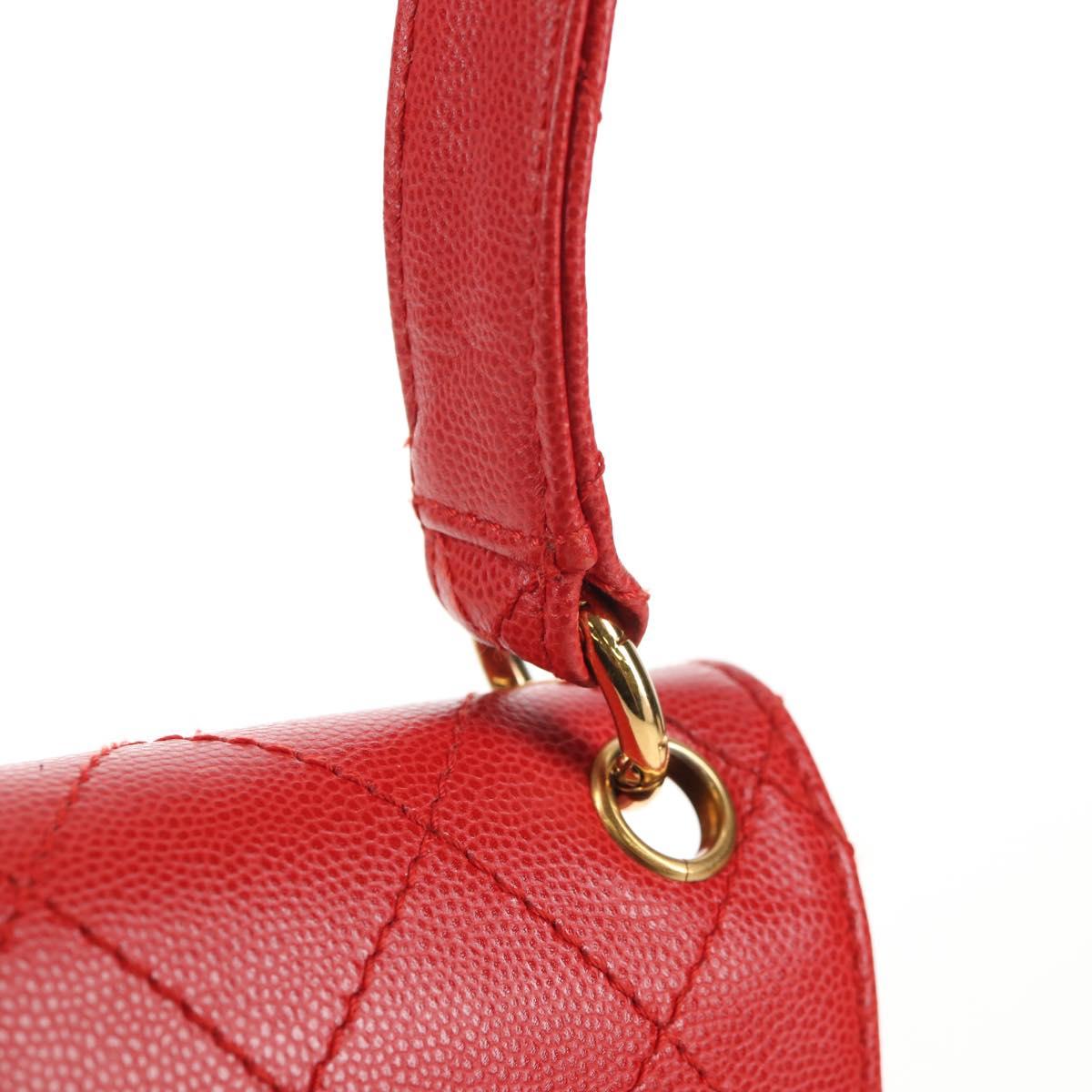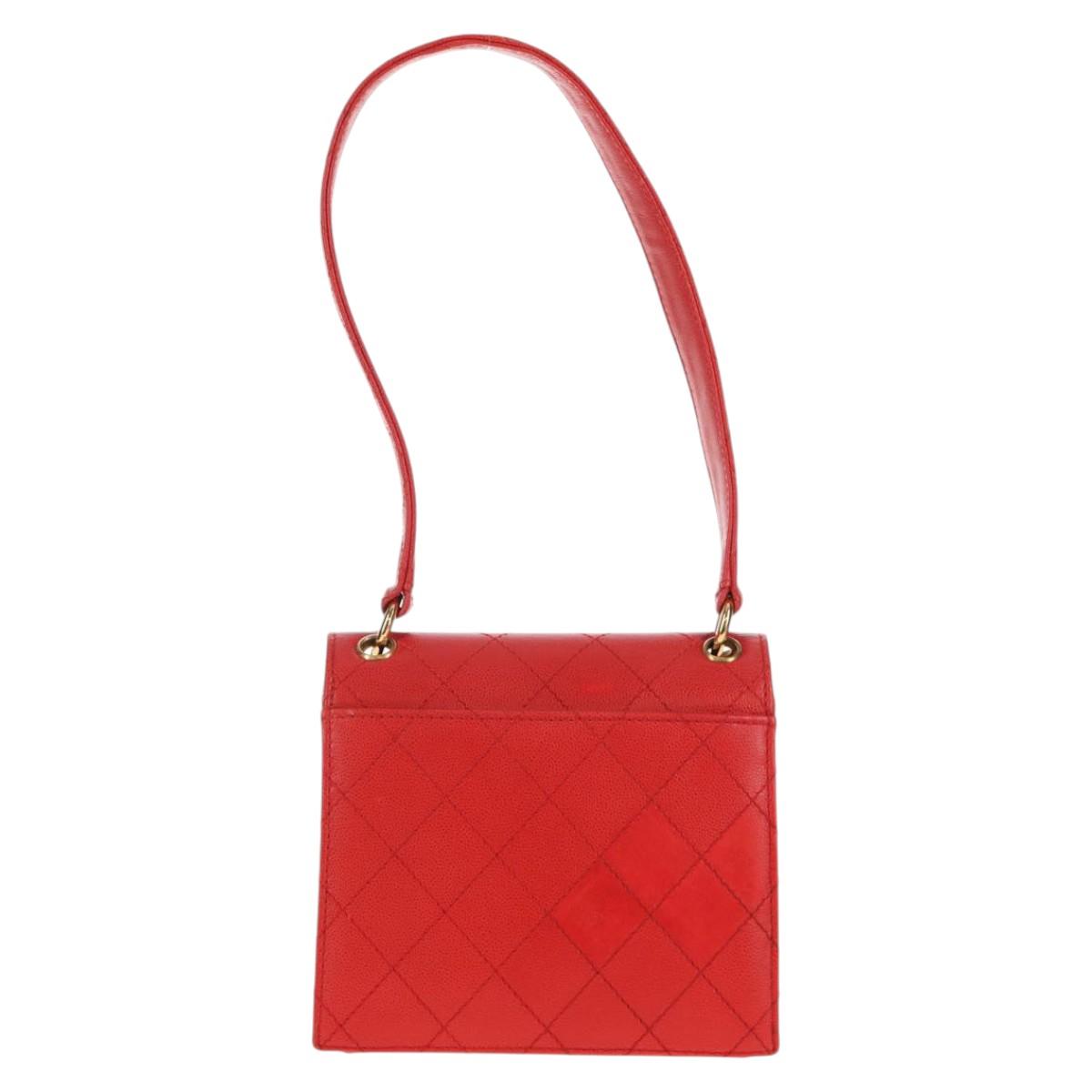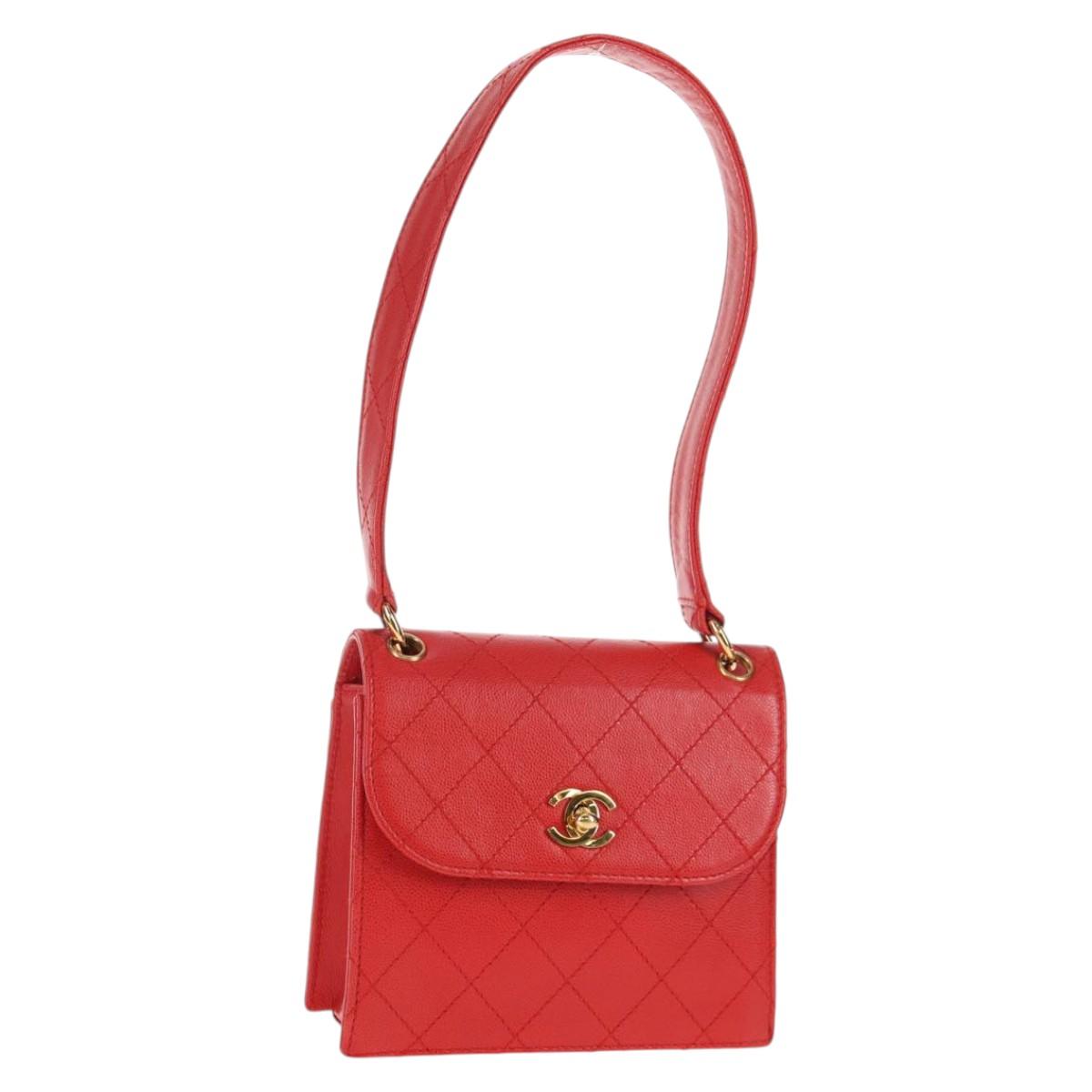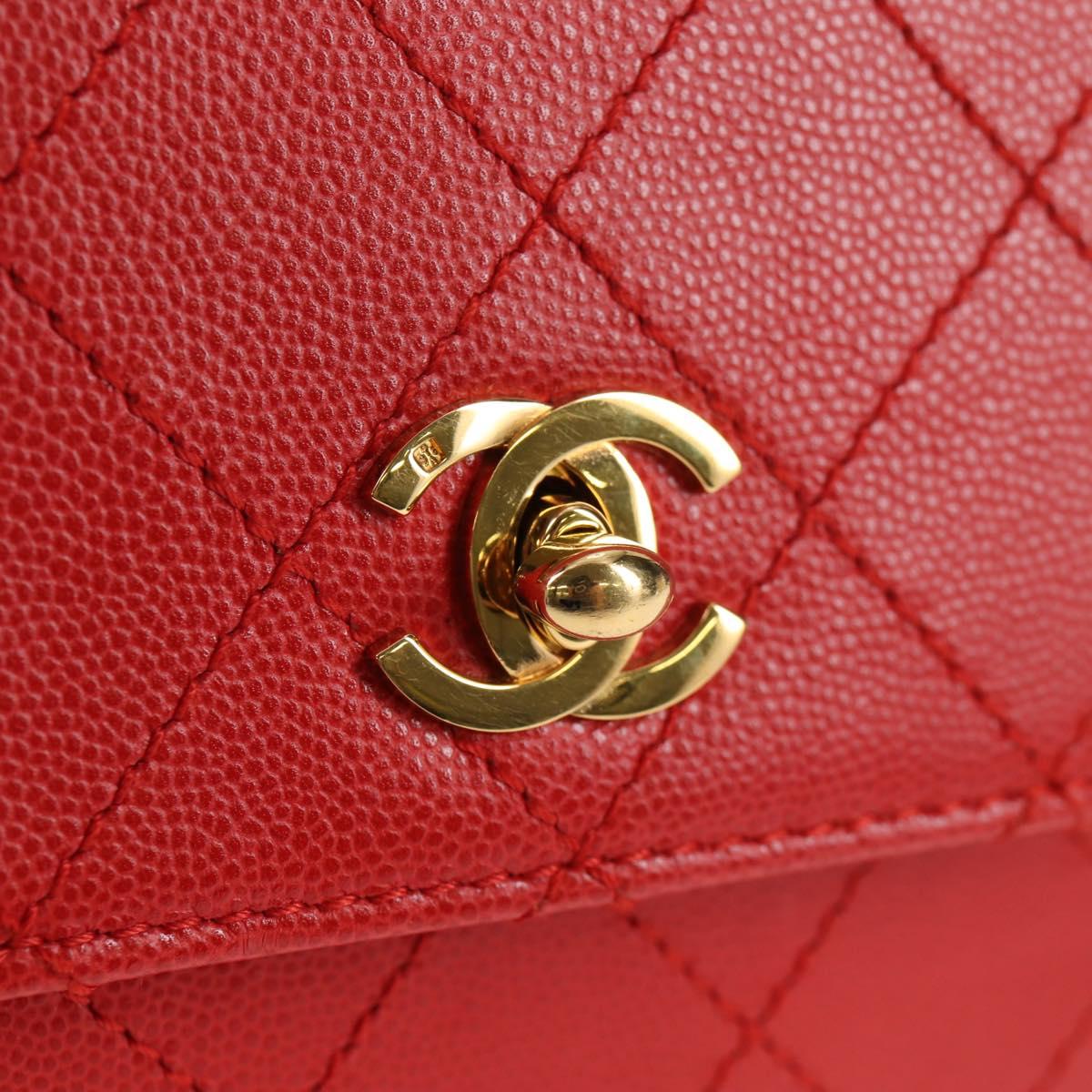 CHANEL Matelasse Shoulder Bag Caviar Skin Red Gold CC Auth gh936V