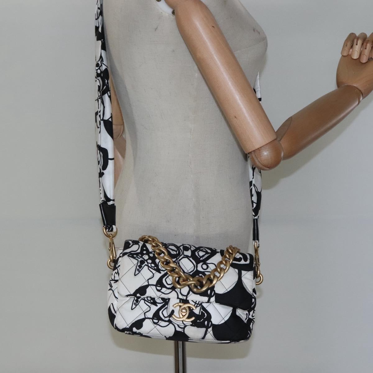CHANEL Mini Matelasse 20 Chain Single Flap Bag Nylon 2way White CC Auth PP235AM