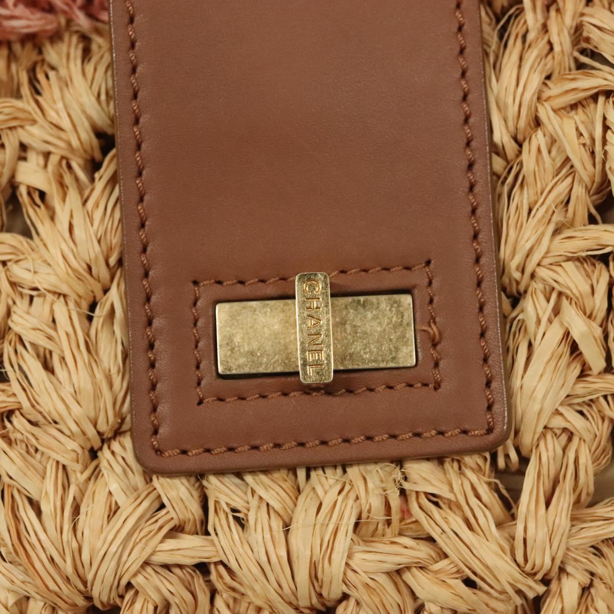 CHANEL Shoulder Bag Raffia Beige Gold CC Auth 122425V