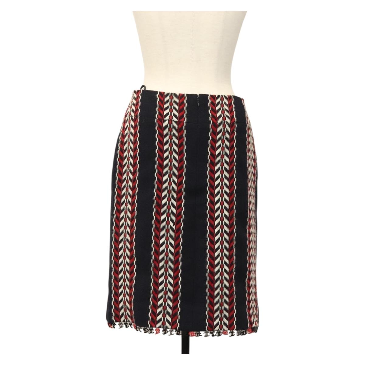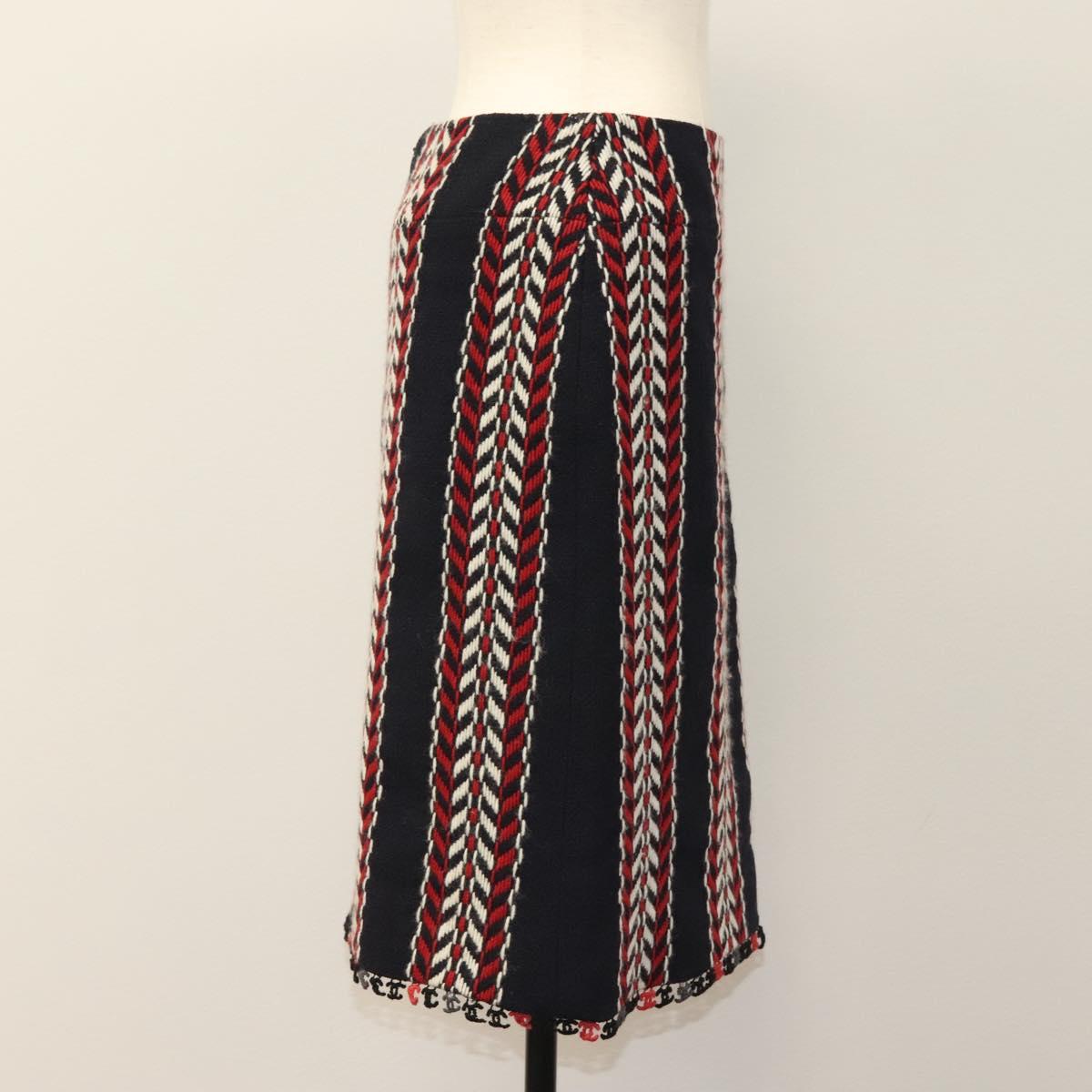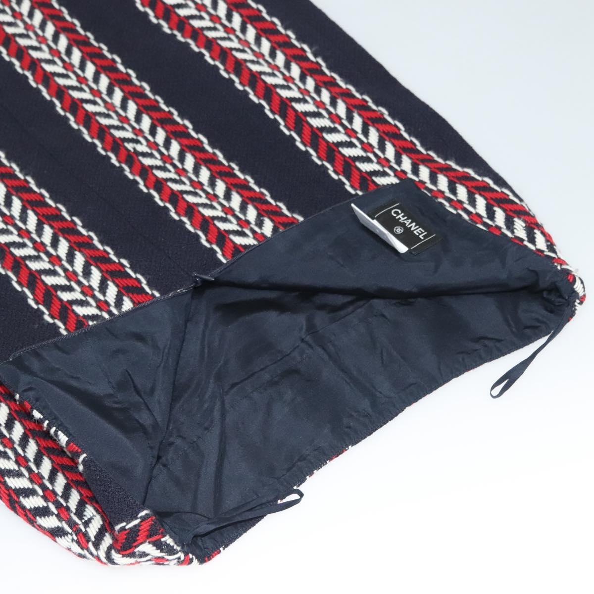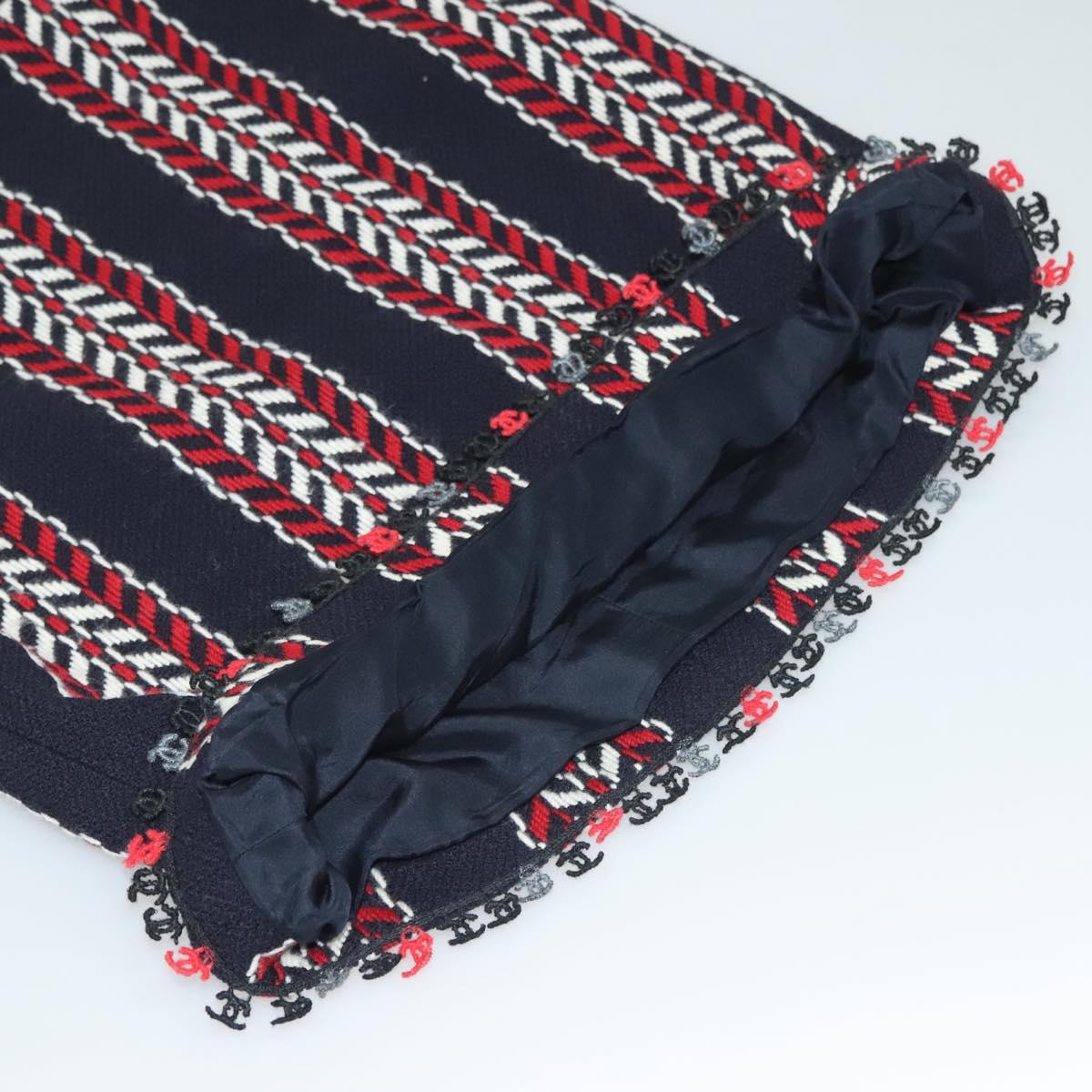 CHANEL Skirt Tweed Navy Red CC Auth 132997M