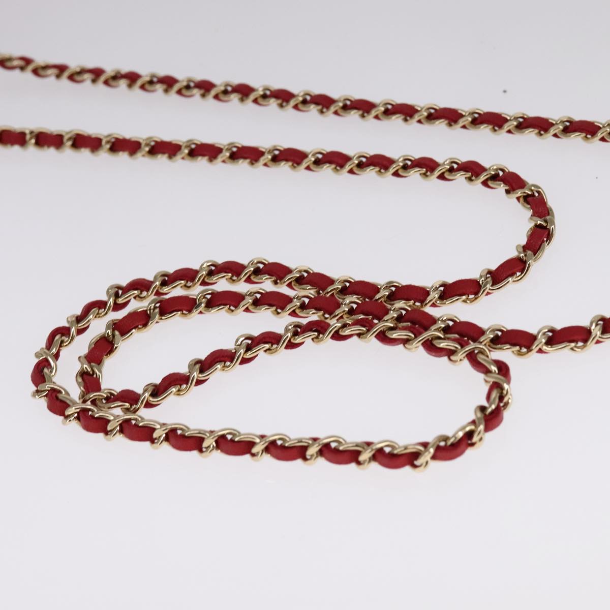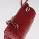 CHANEL Small Box Matelasse Chain Pouch Lamb Skin Red CC Auth 108916AV