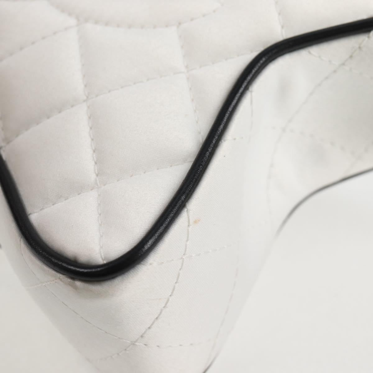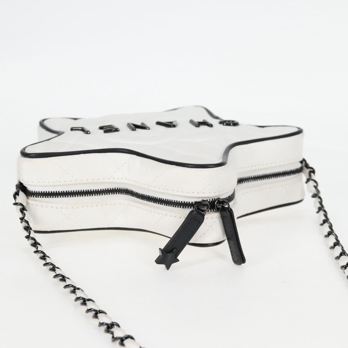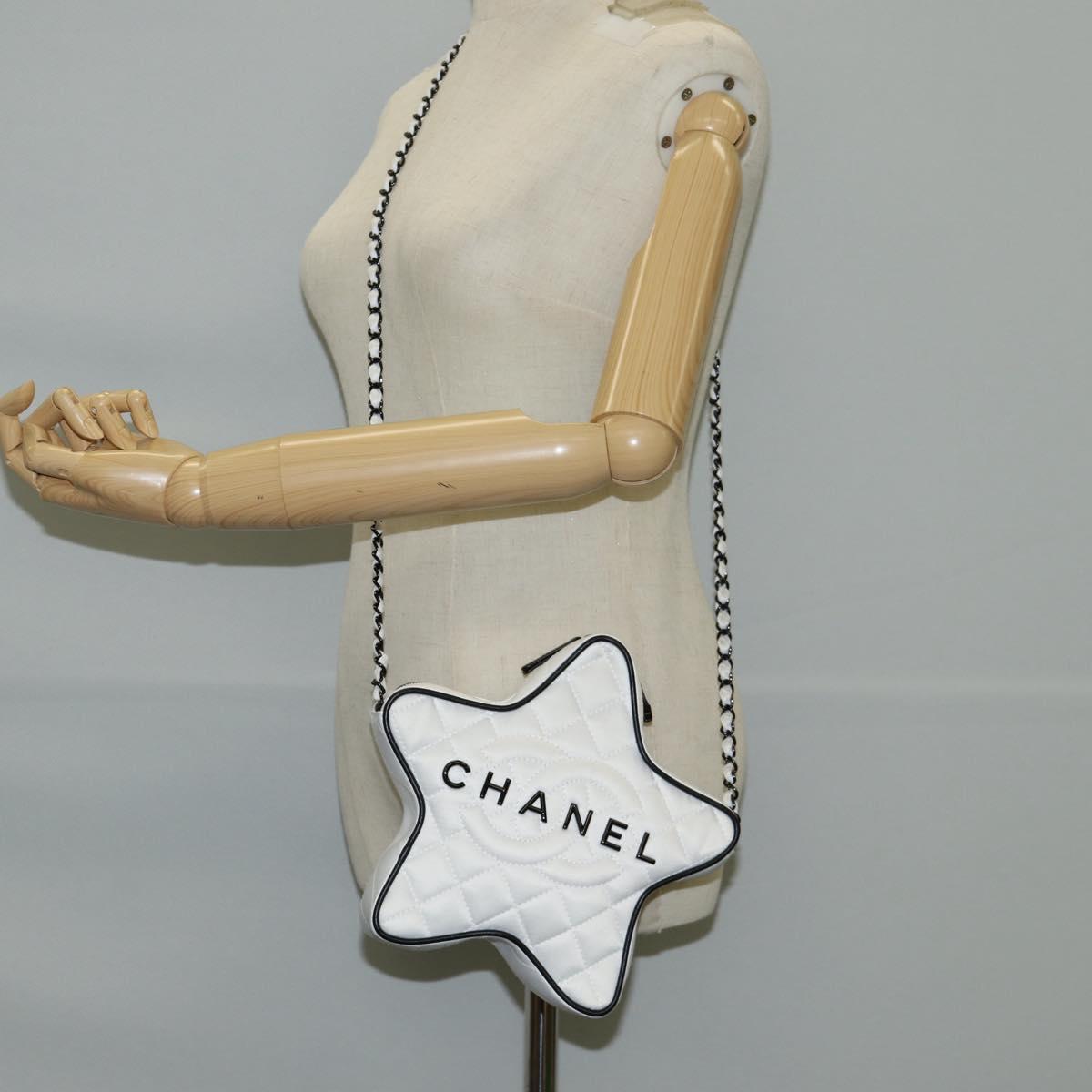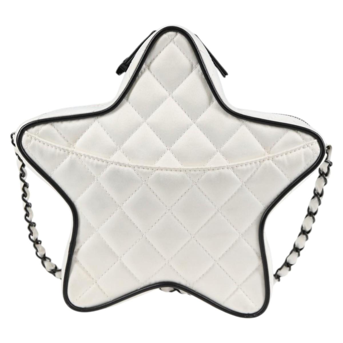 CHANEL Star Chain Shoulder Bag Satin White Gold CC Auth 125991SM