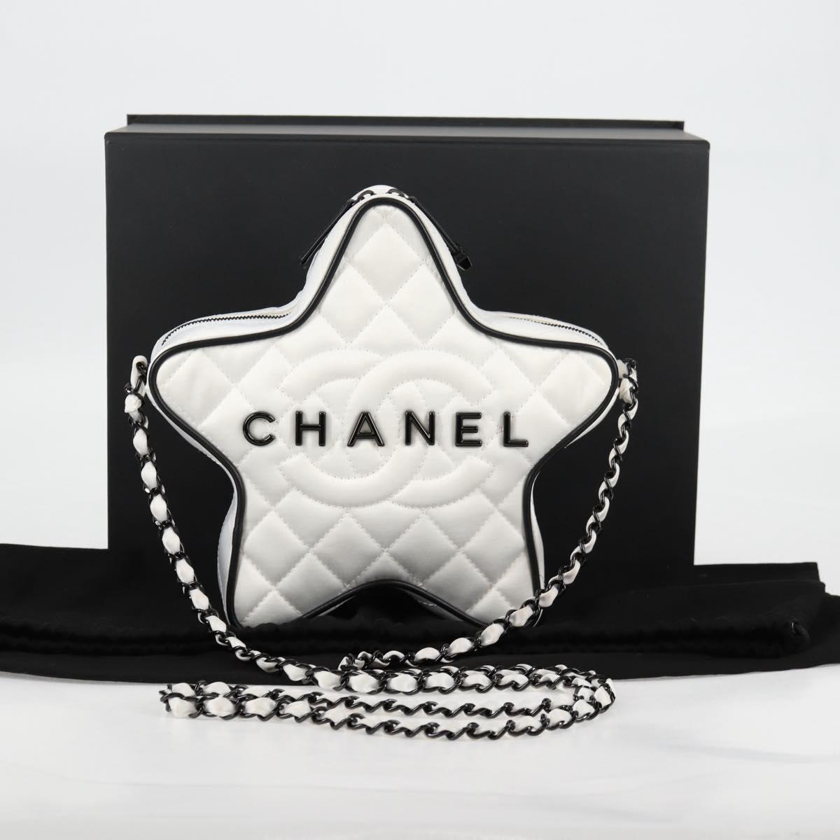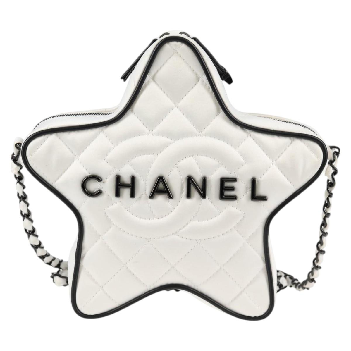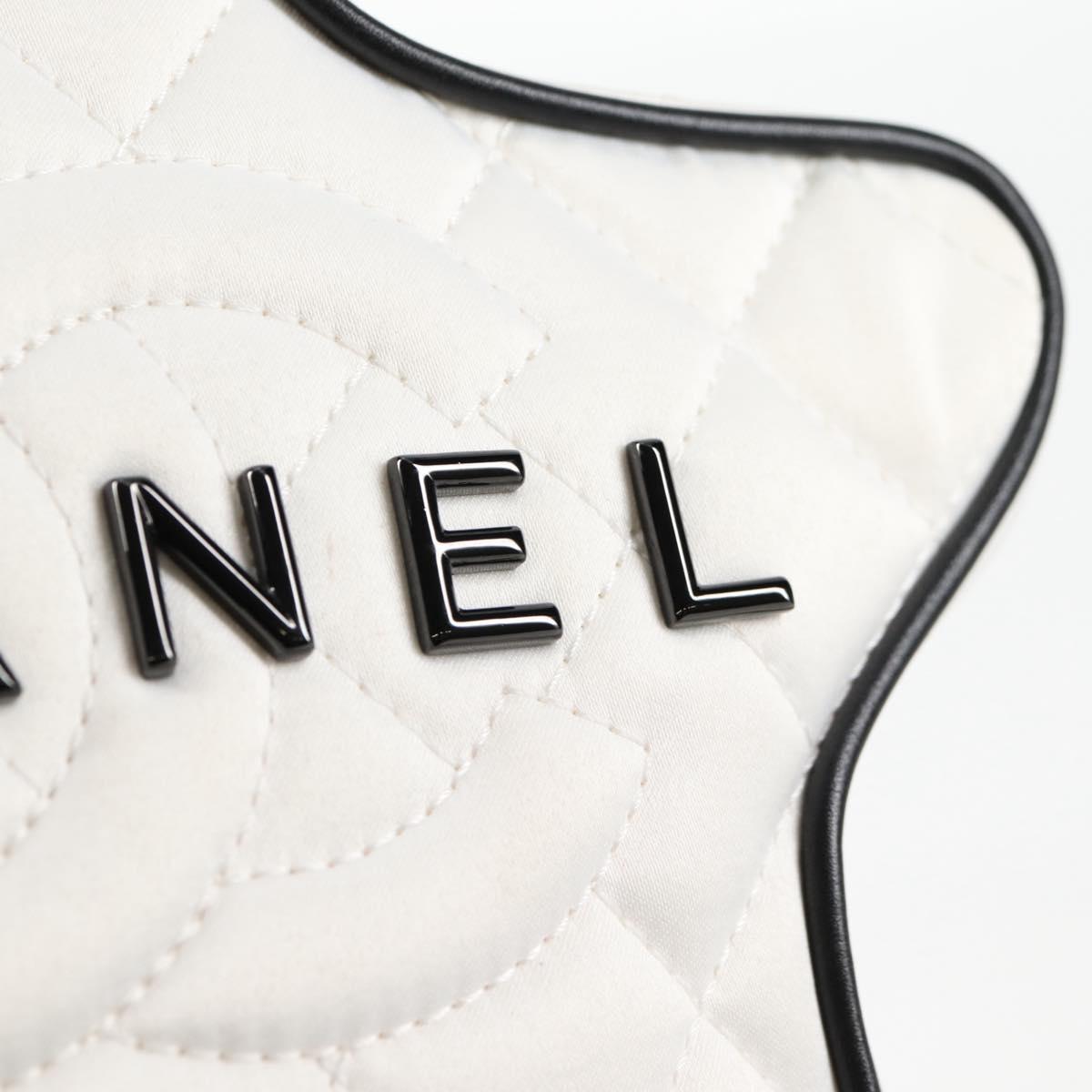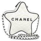 CHANEL Star Chain Shoulder Bag Satin White Gold CC Auth 125991SM