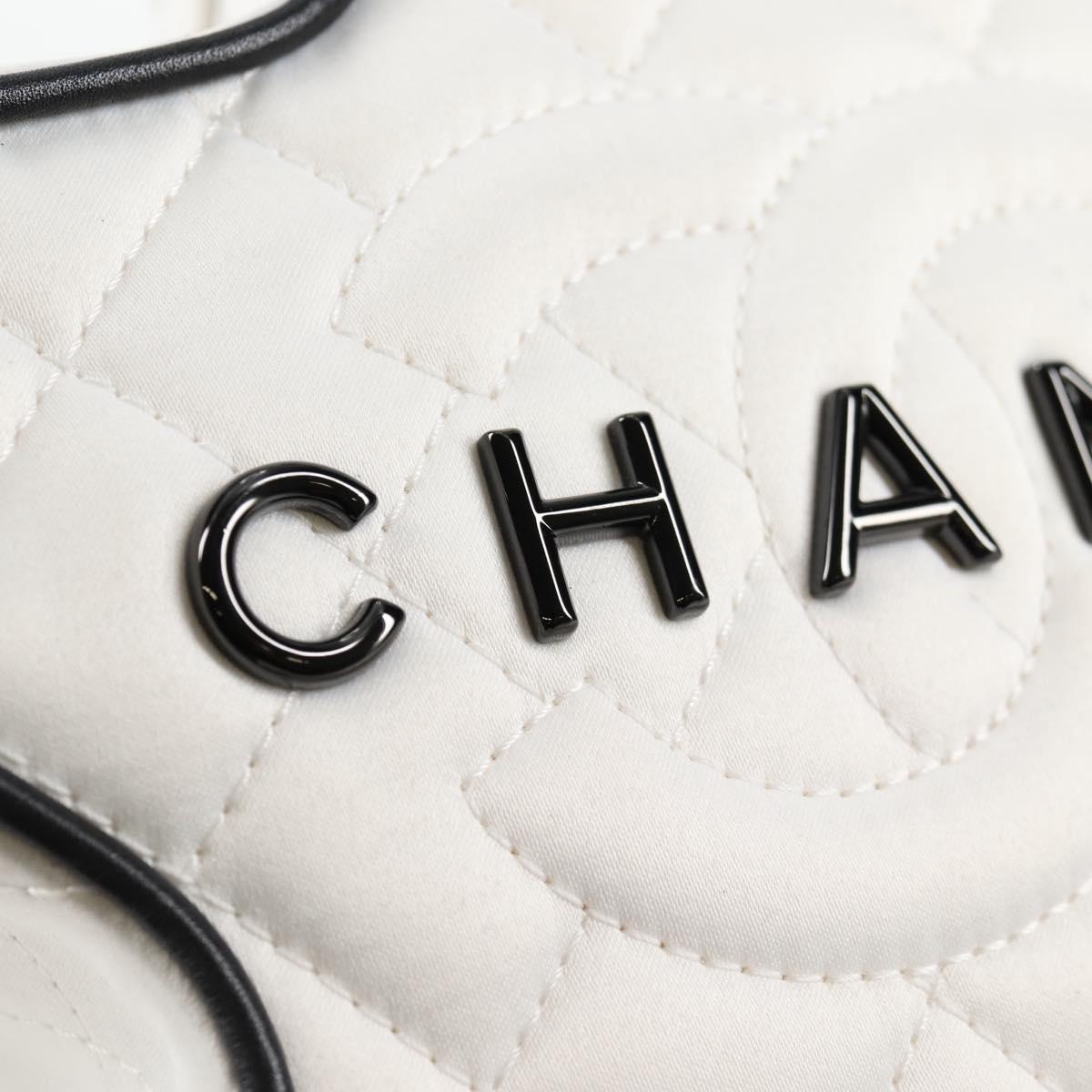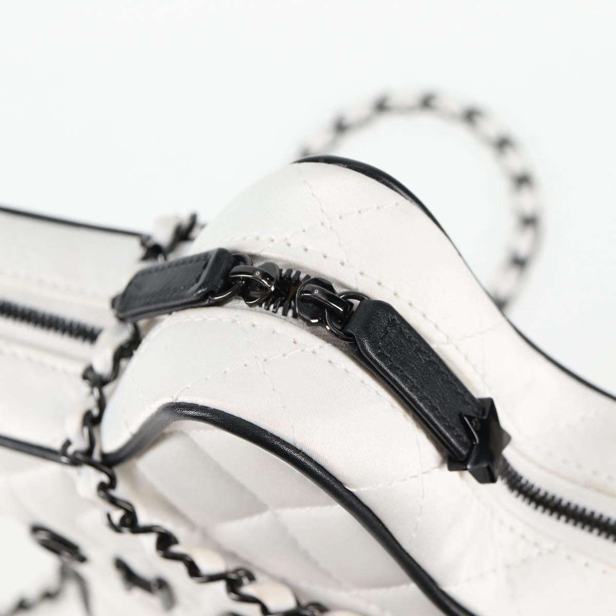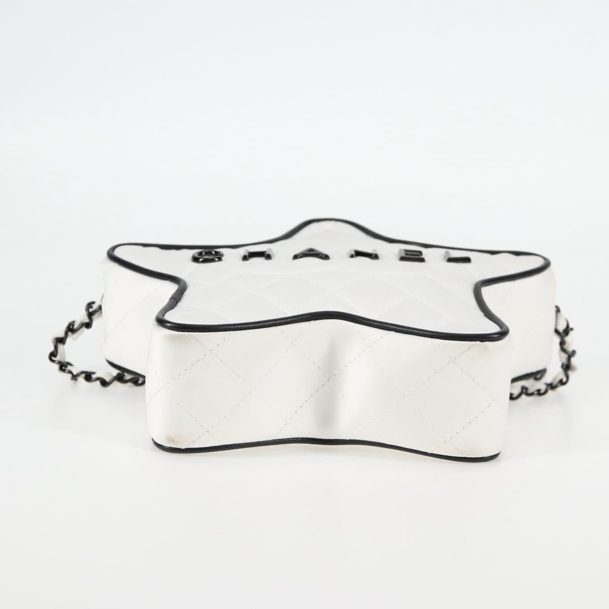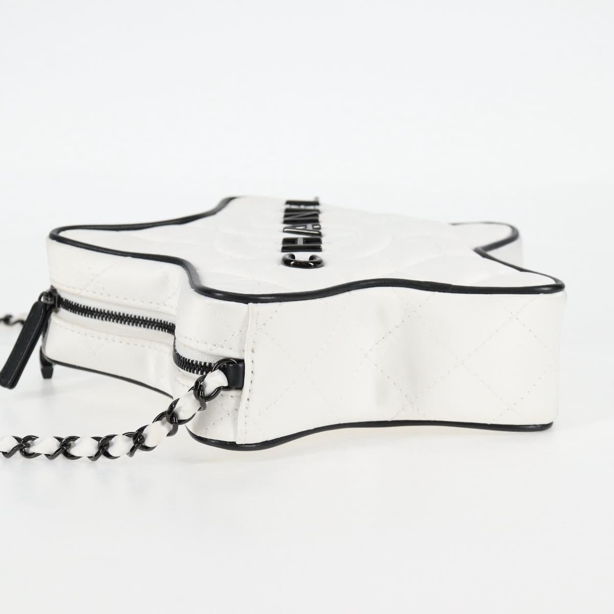 CHANEL Star Chain Shoulder Bag Satin White Gold CC Auth 125991SM