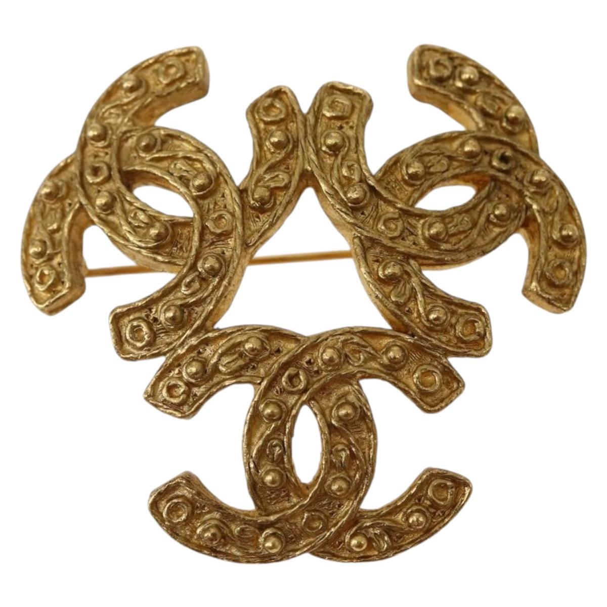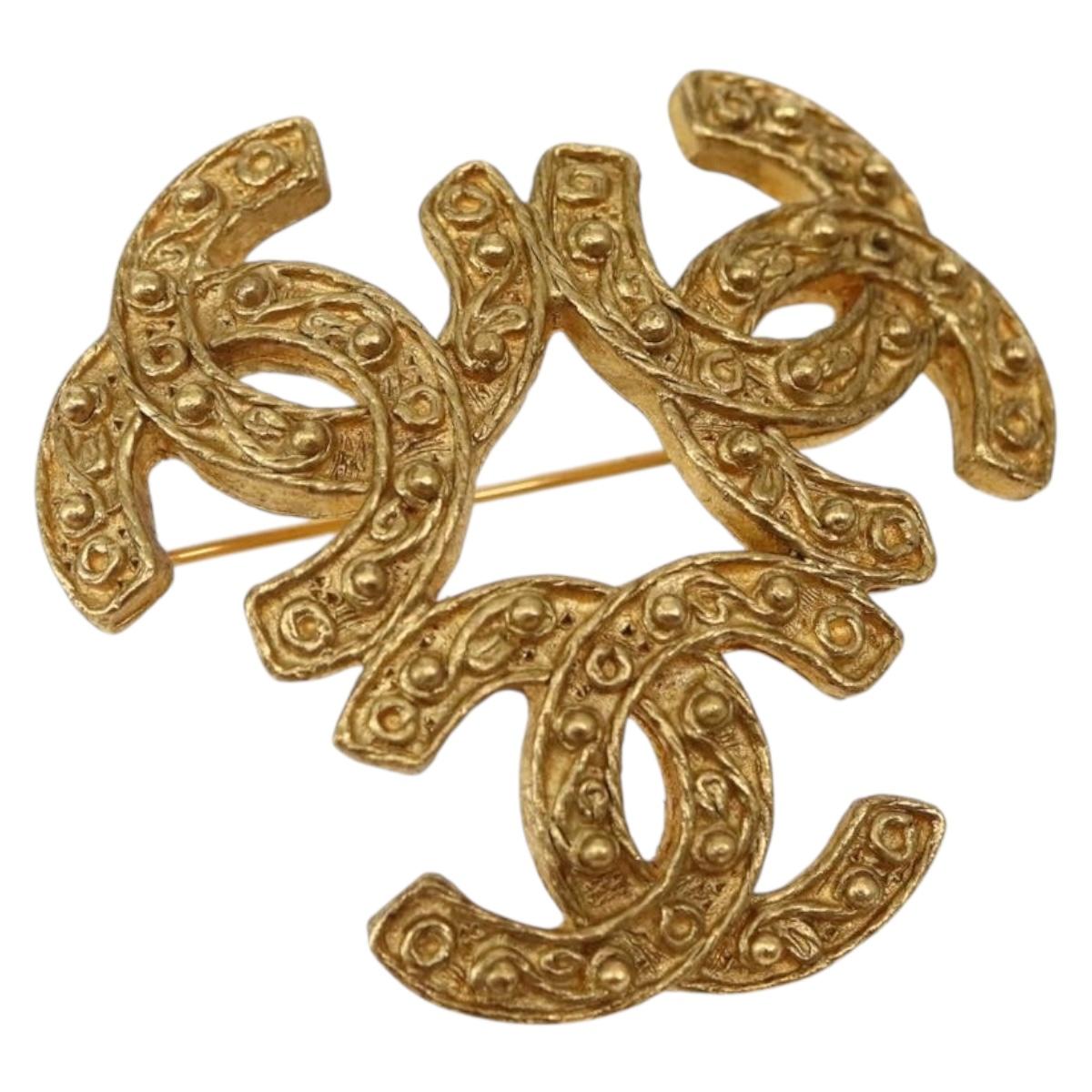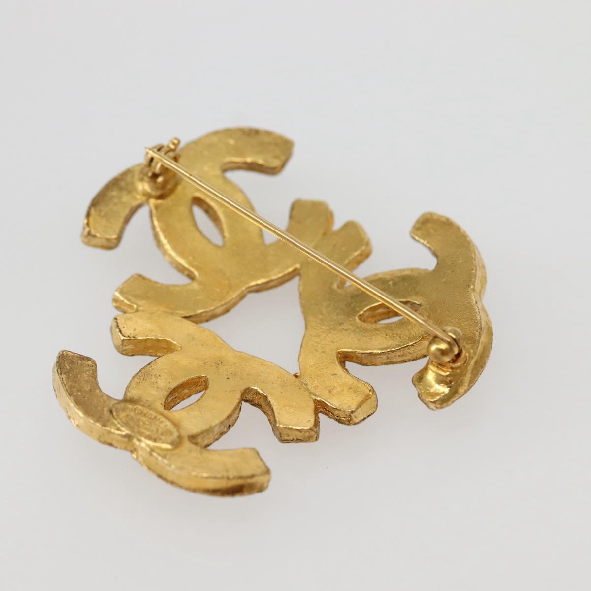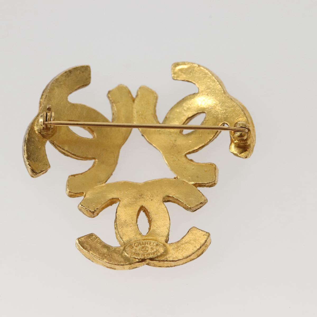 CHANEL Triple Coco Brooch Metal Gold CC Auth BA5789V