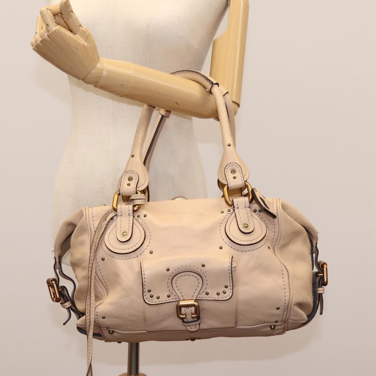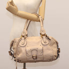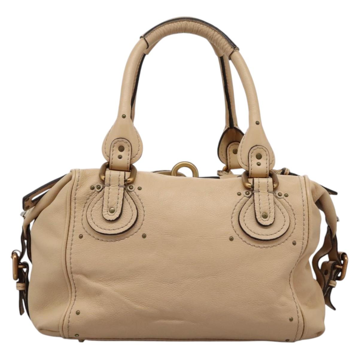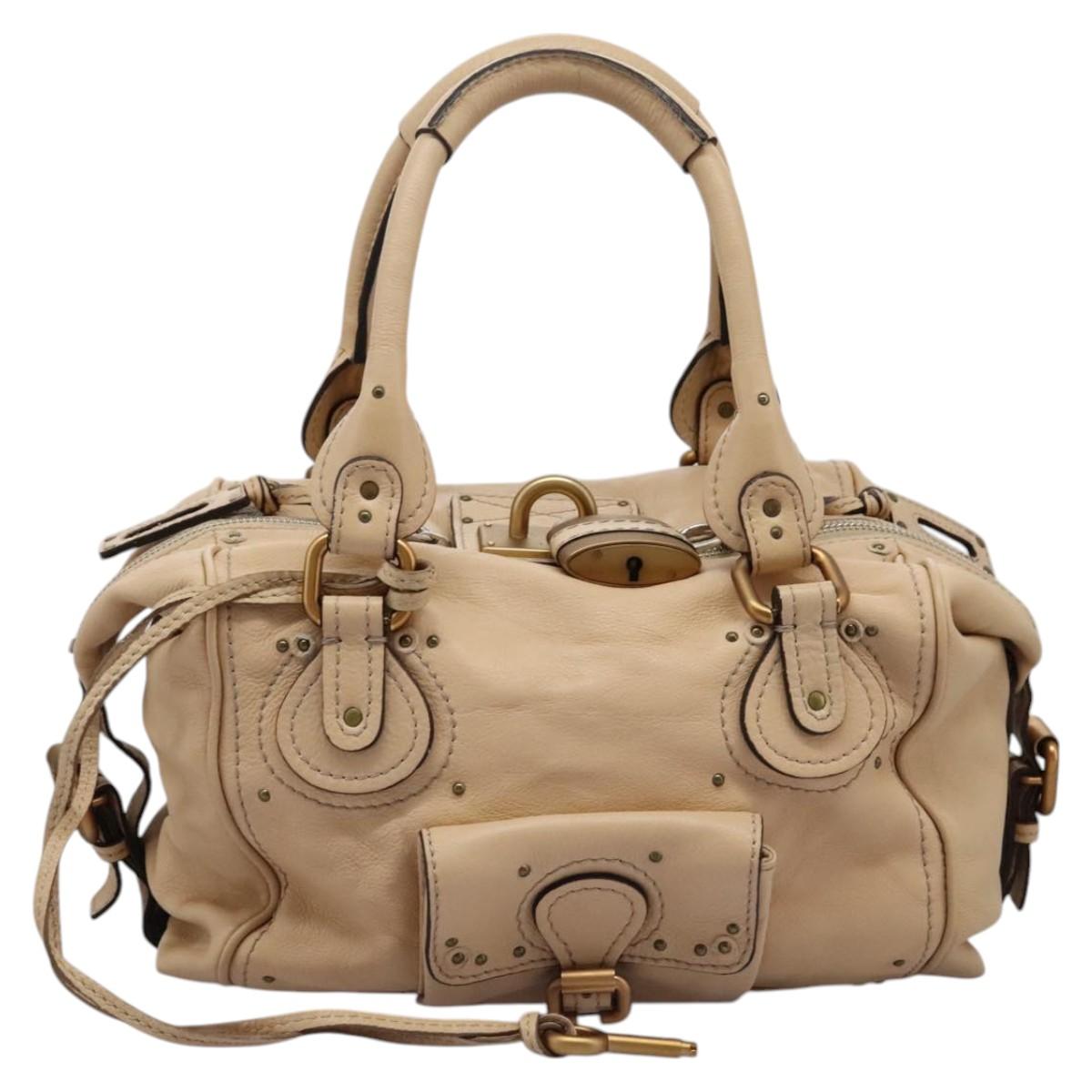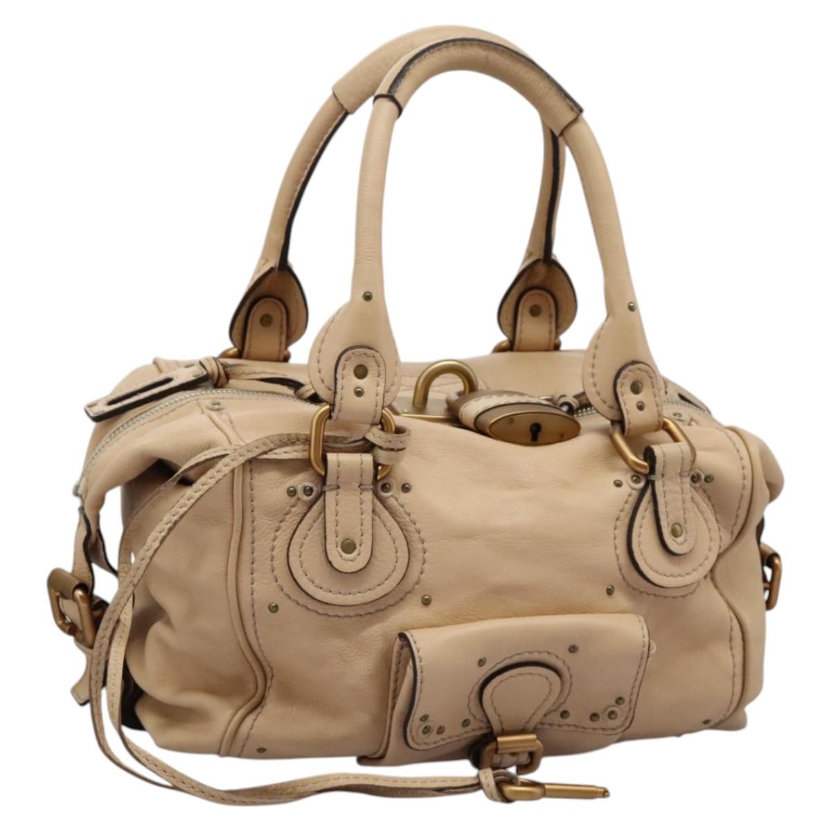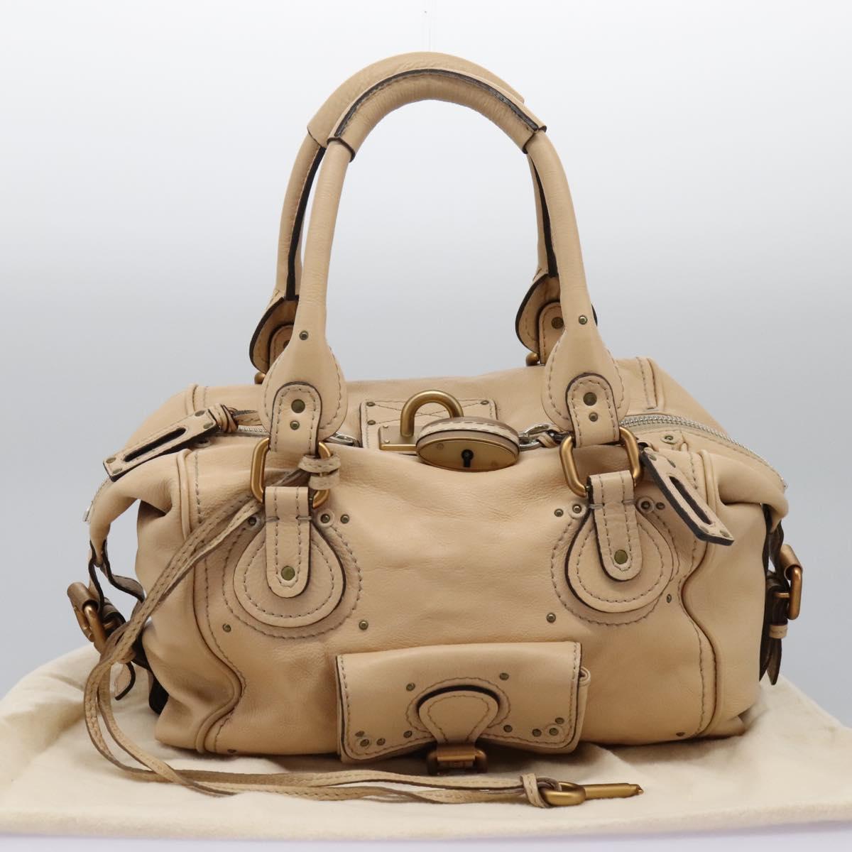 Chloe Paddington Shoulder Bag Leather Beige Gold Silver Auth am7903V