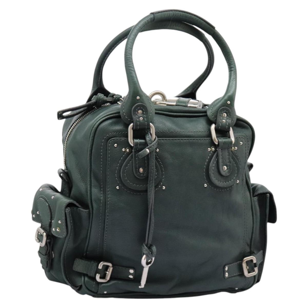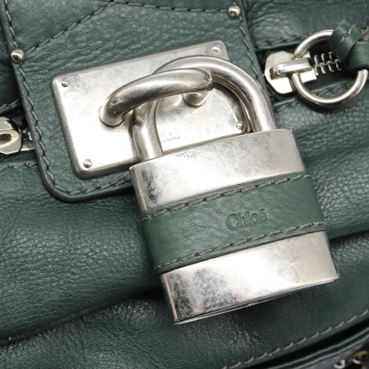 Chloe Paddington Shoulder Bag Leather Green Silver Auth 113085V