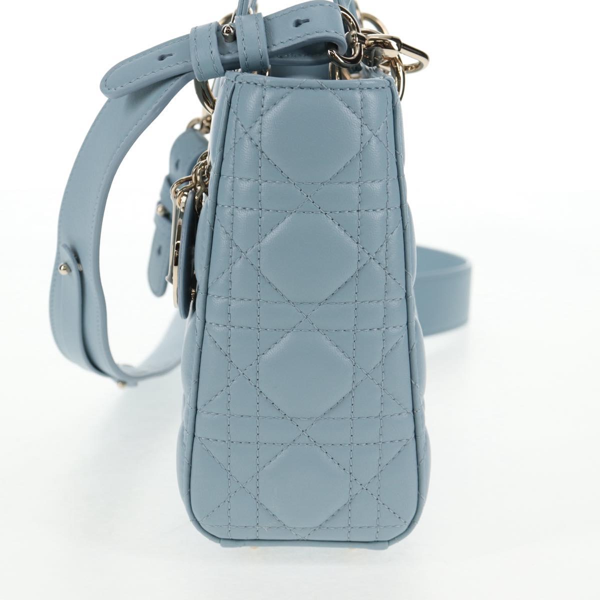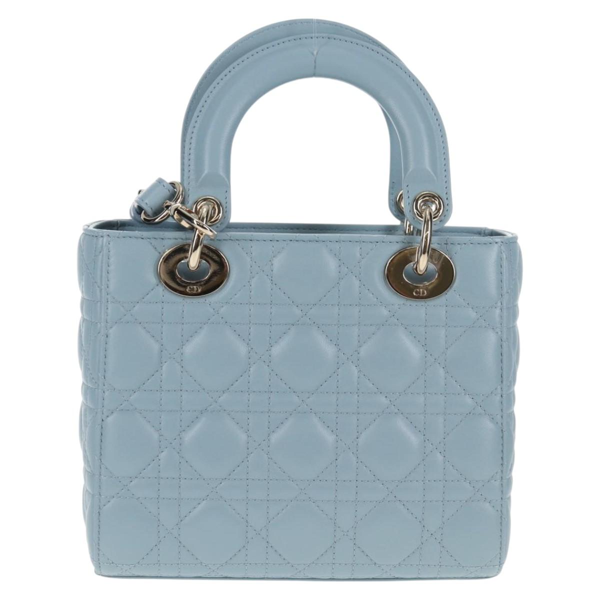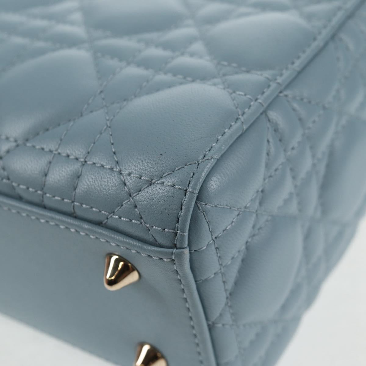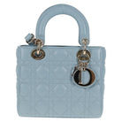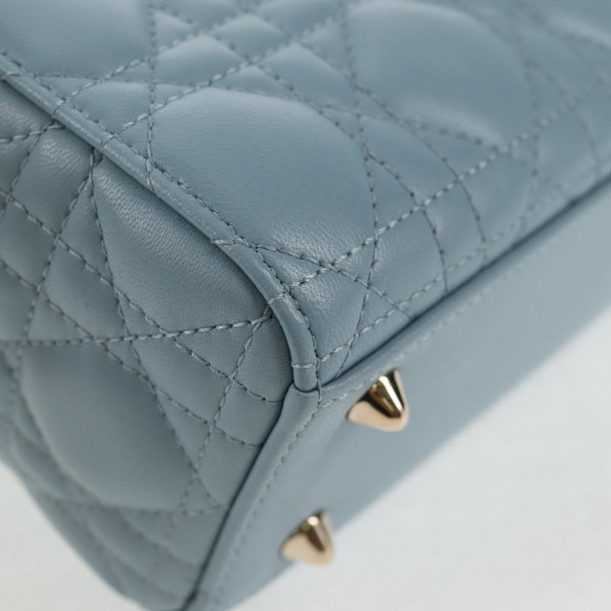 Christian Dior Canage Hand Bag Leather 2way Light Blue Gold Auth 135403M