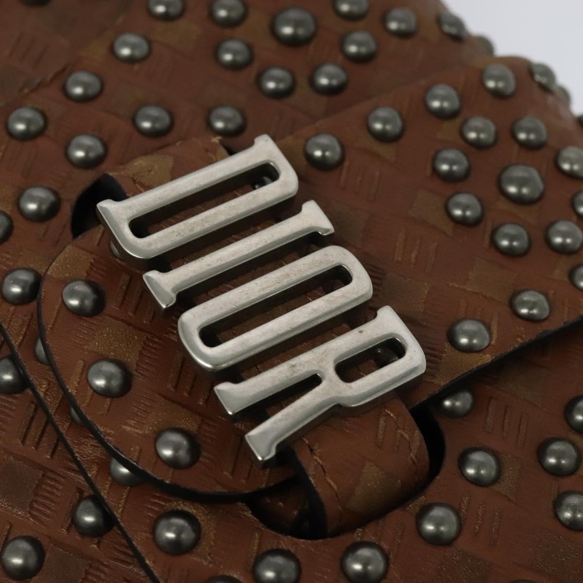 Christian Dior D FENCE Shoulder Bag Leather Brown Auth bs25342