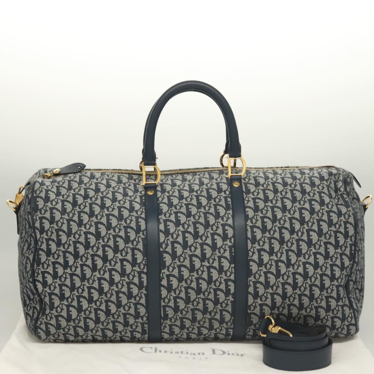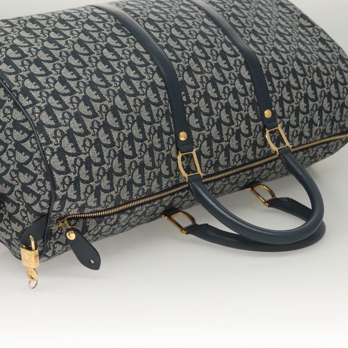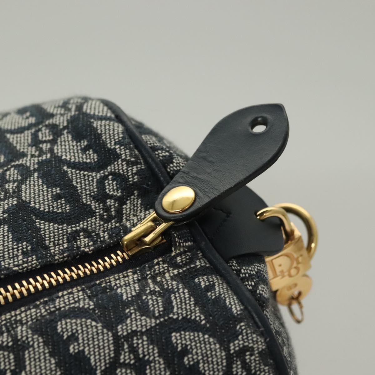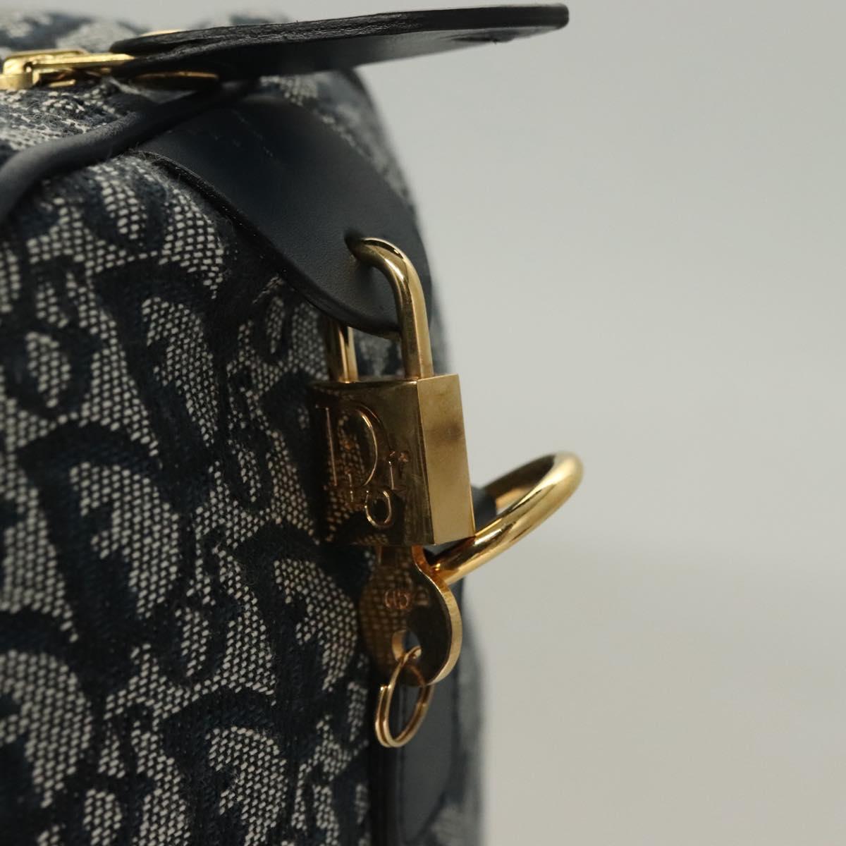 Christian Dior Trotter Canvas Boston Bag 2way Navy Gold Auth BD2104V