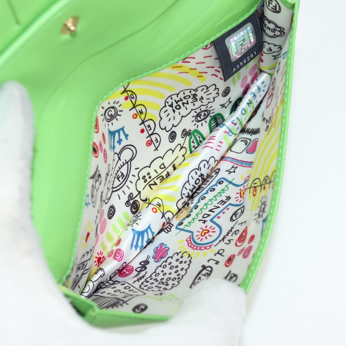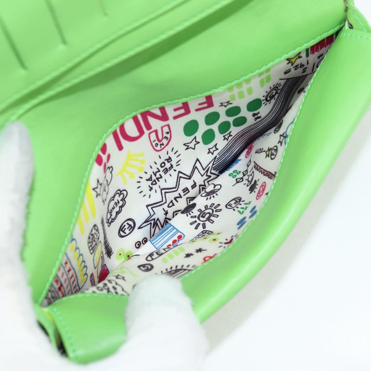FENDI Chain Shoulder Wallet Leather Green Gold Auth 130512M