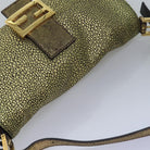 FENDI Mamma Baguette Shoulder Bag Canvas Gold Tone 40883613 Auth 74891AV