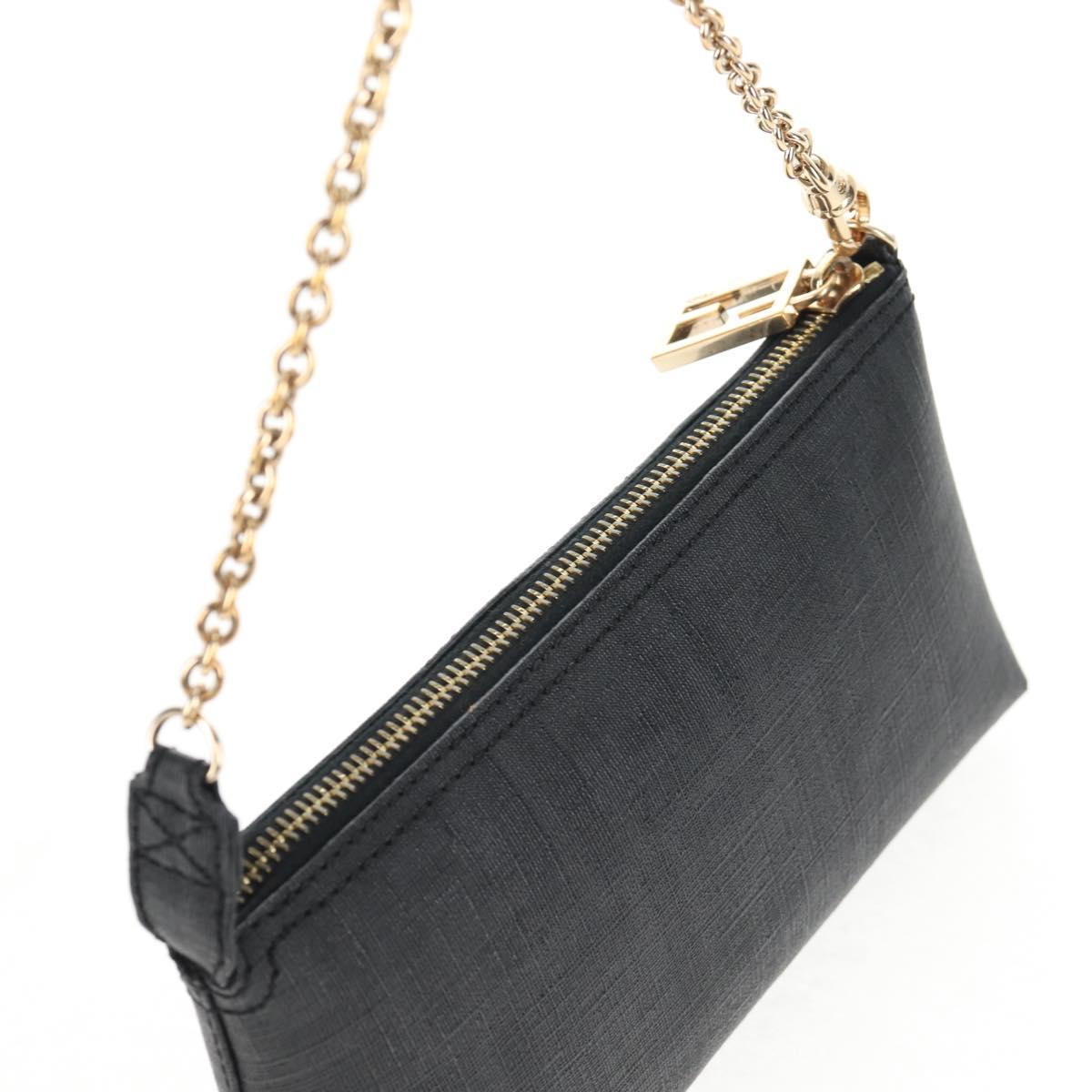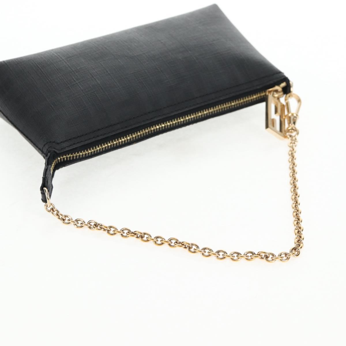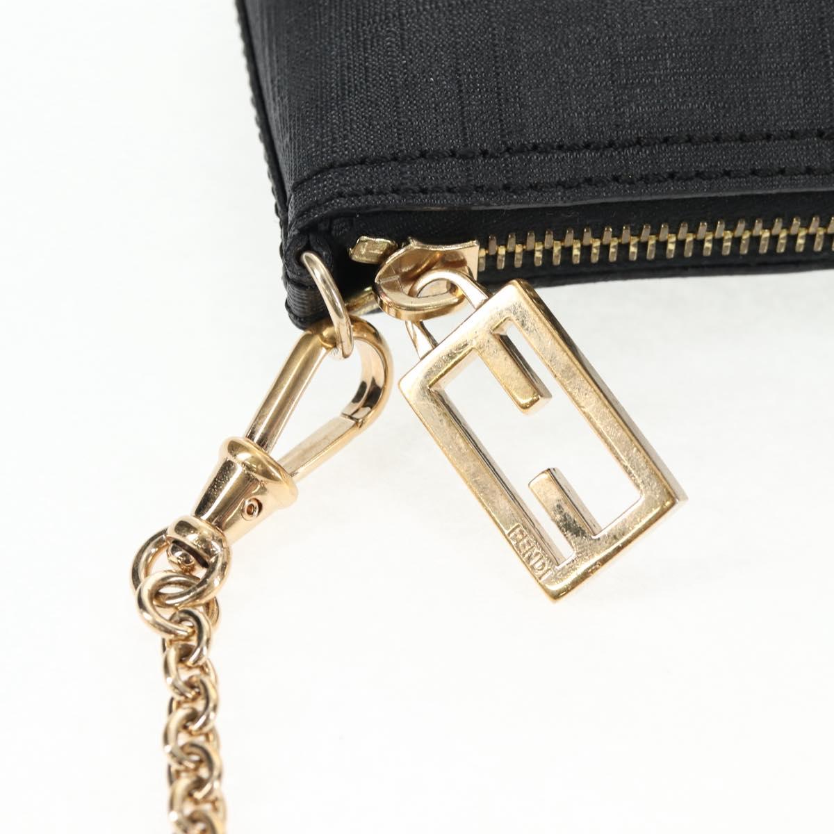 FENDI Zucca Canvas Accessory Pouch PVC Black Gold Auth 143790V