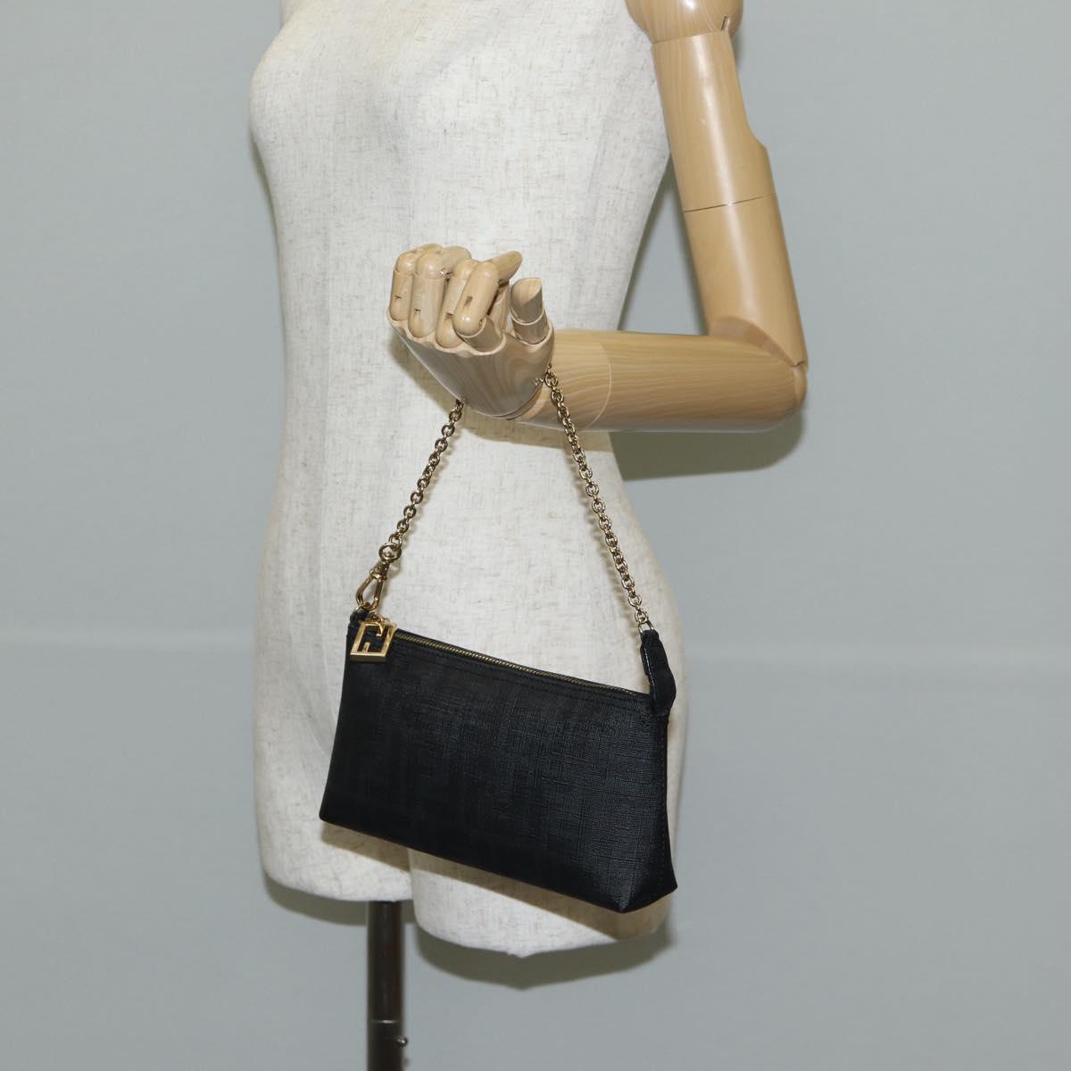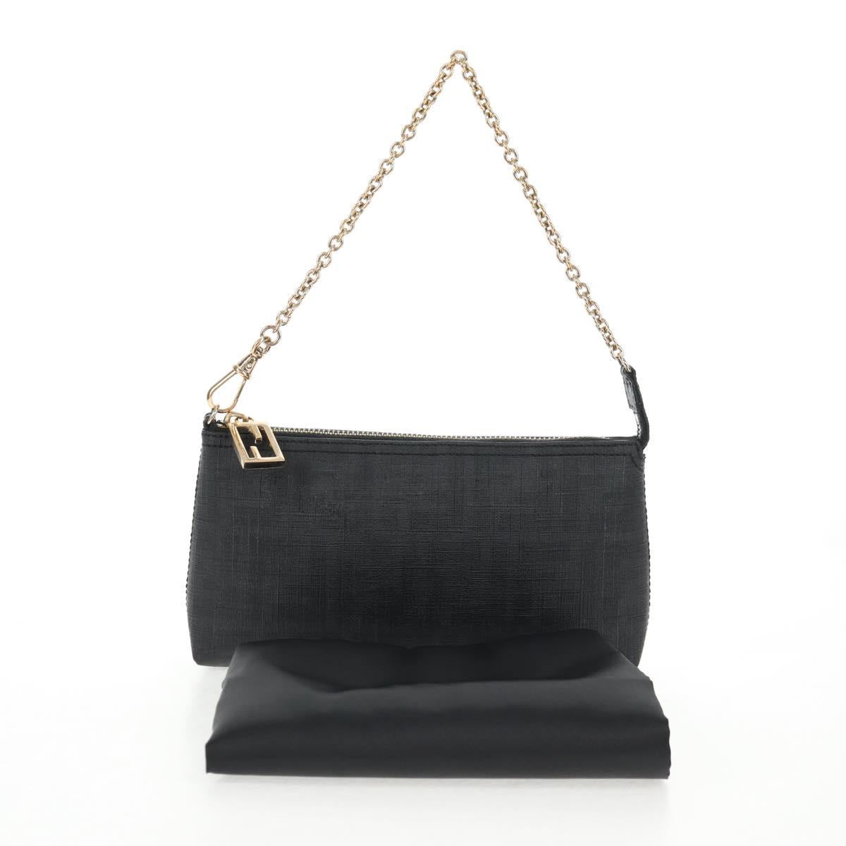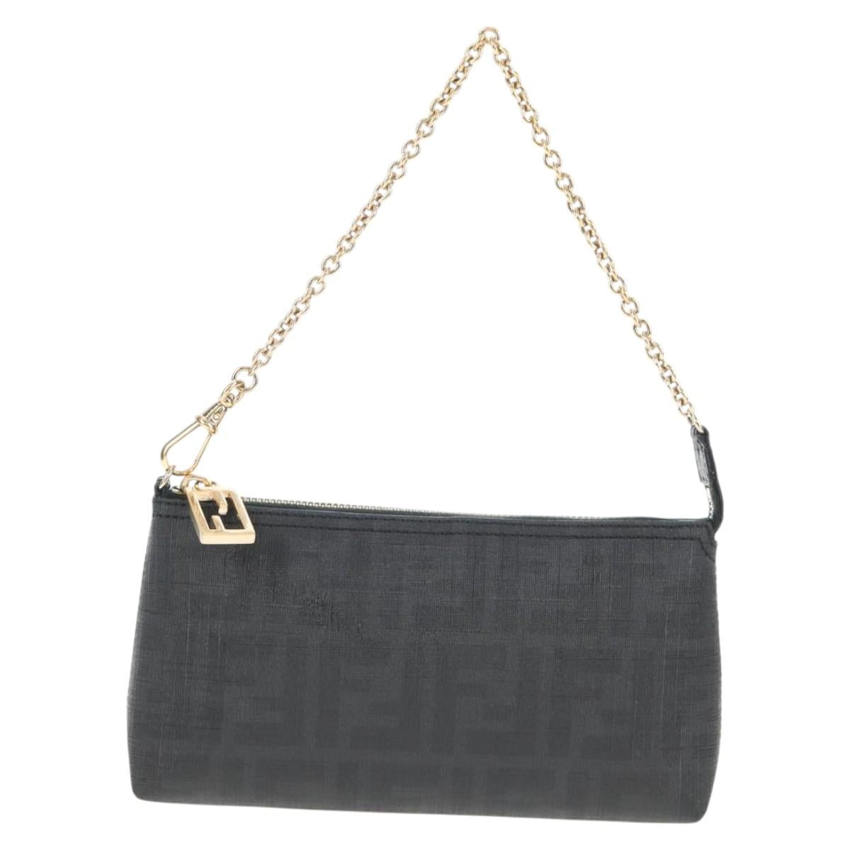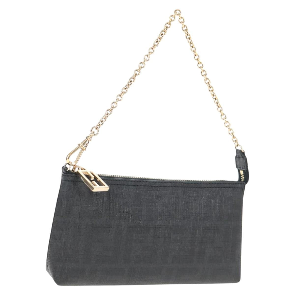 FENDI Zucca Canvas Accessory Pouch PVC Black Gold Auth 143790V