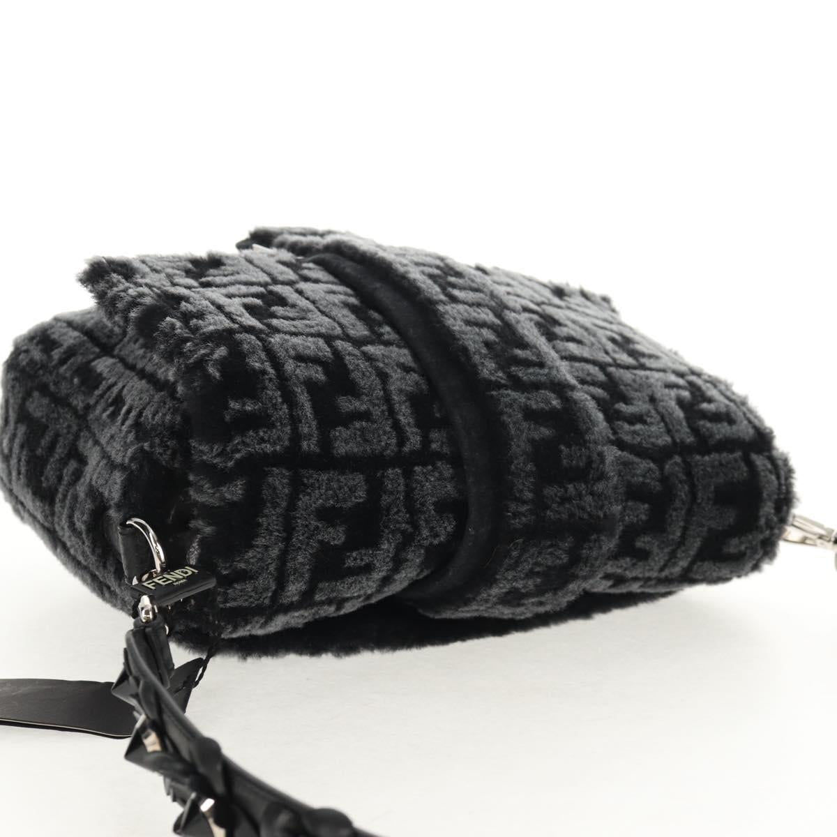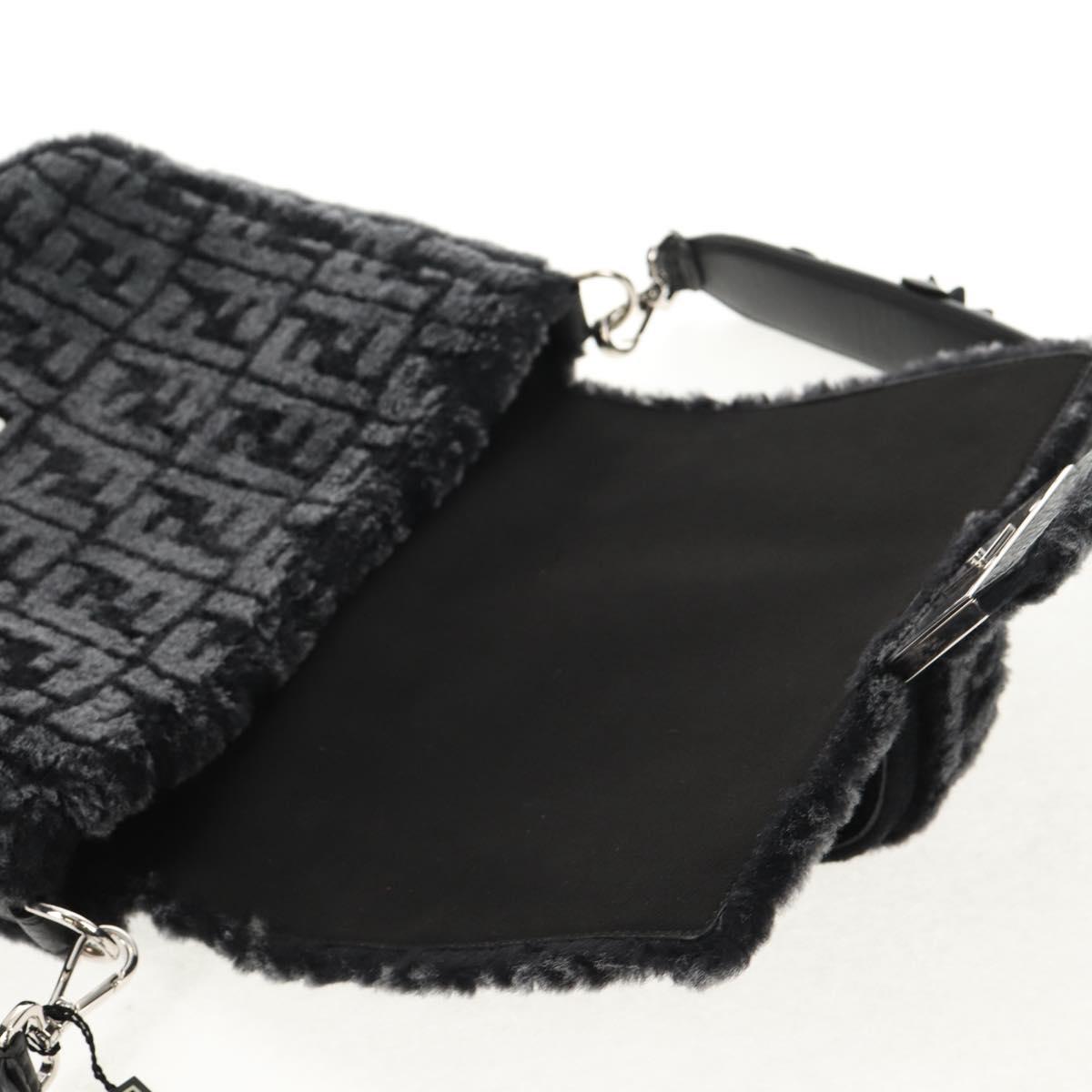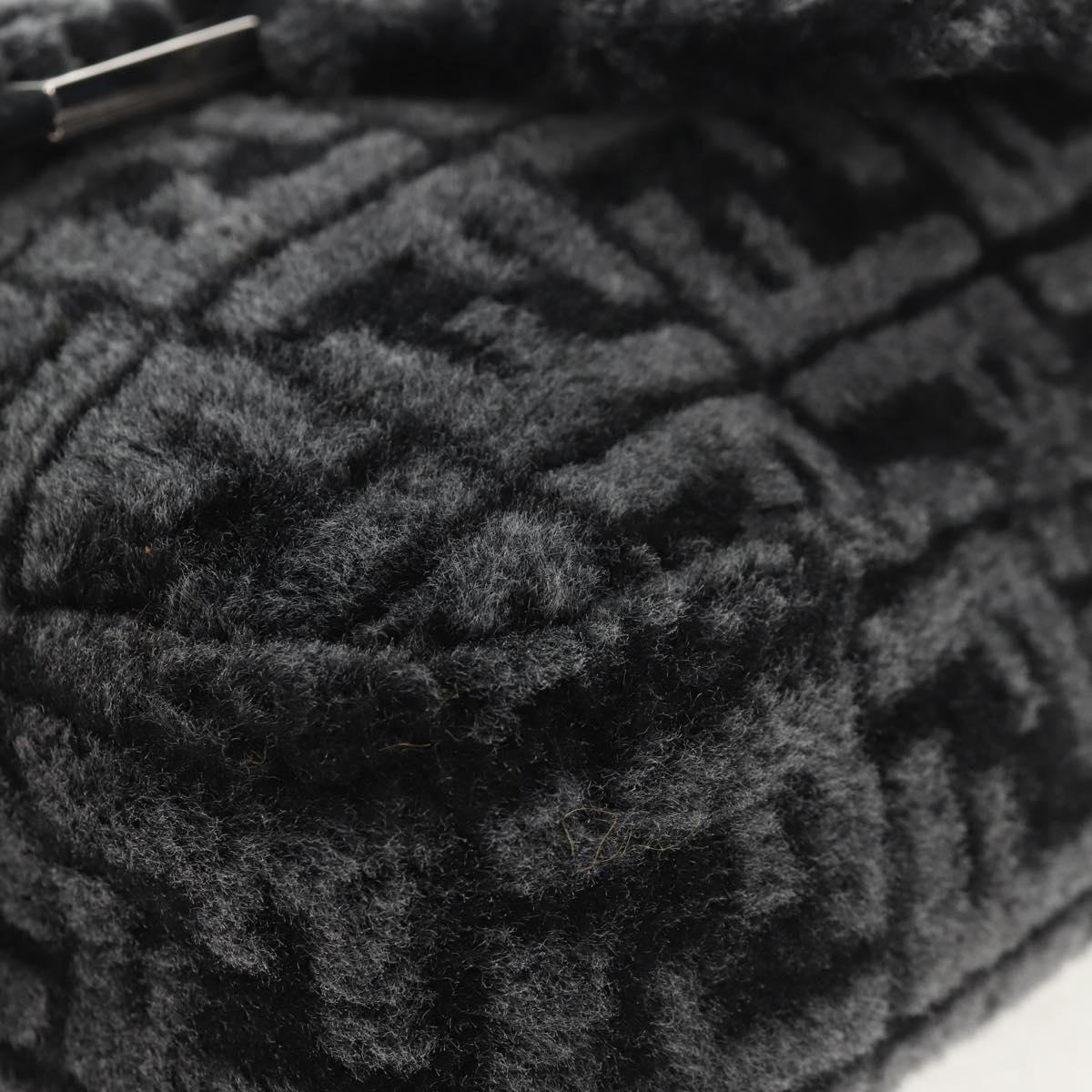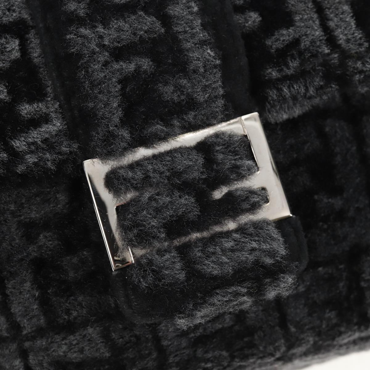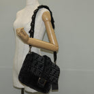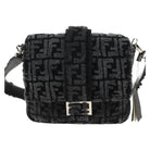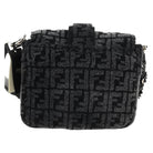 FENDI Zucca Canvas Baguette Messenger Medium Bag Black Silver Auth 141163M