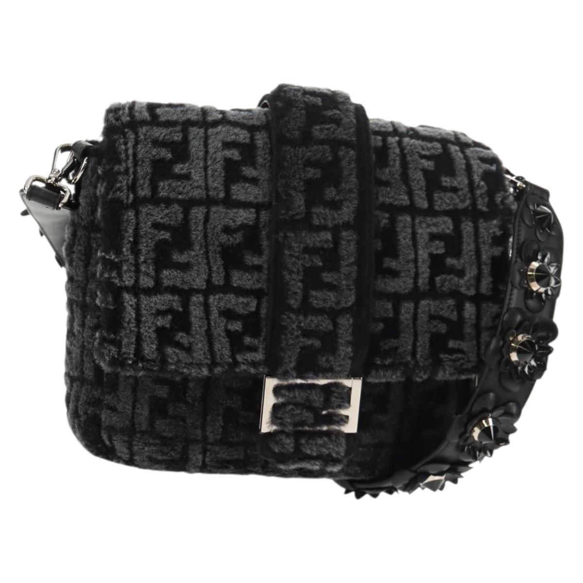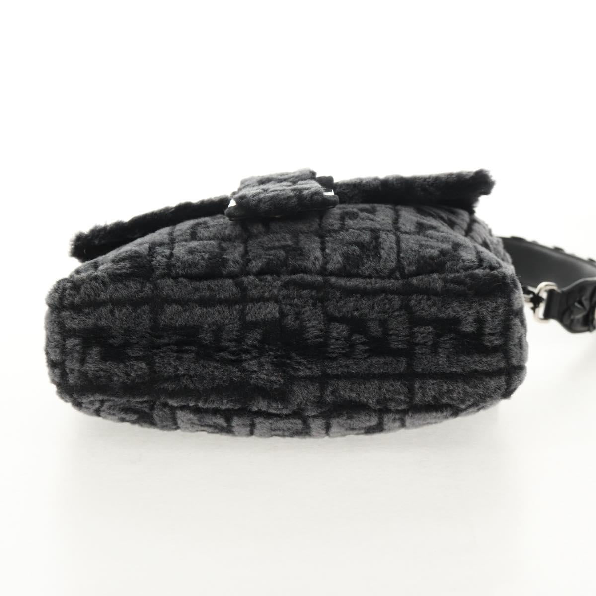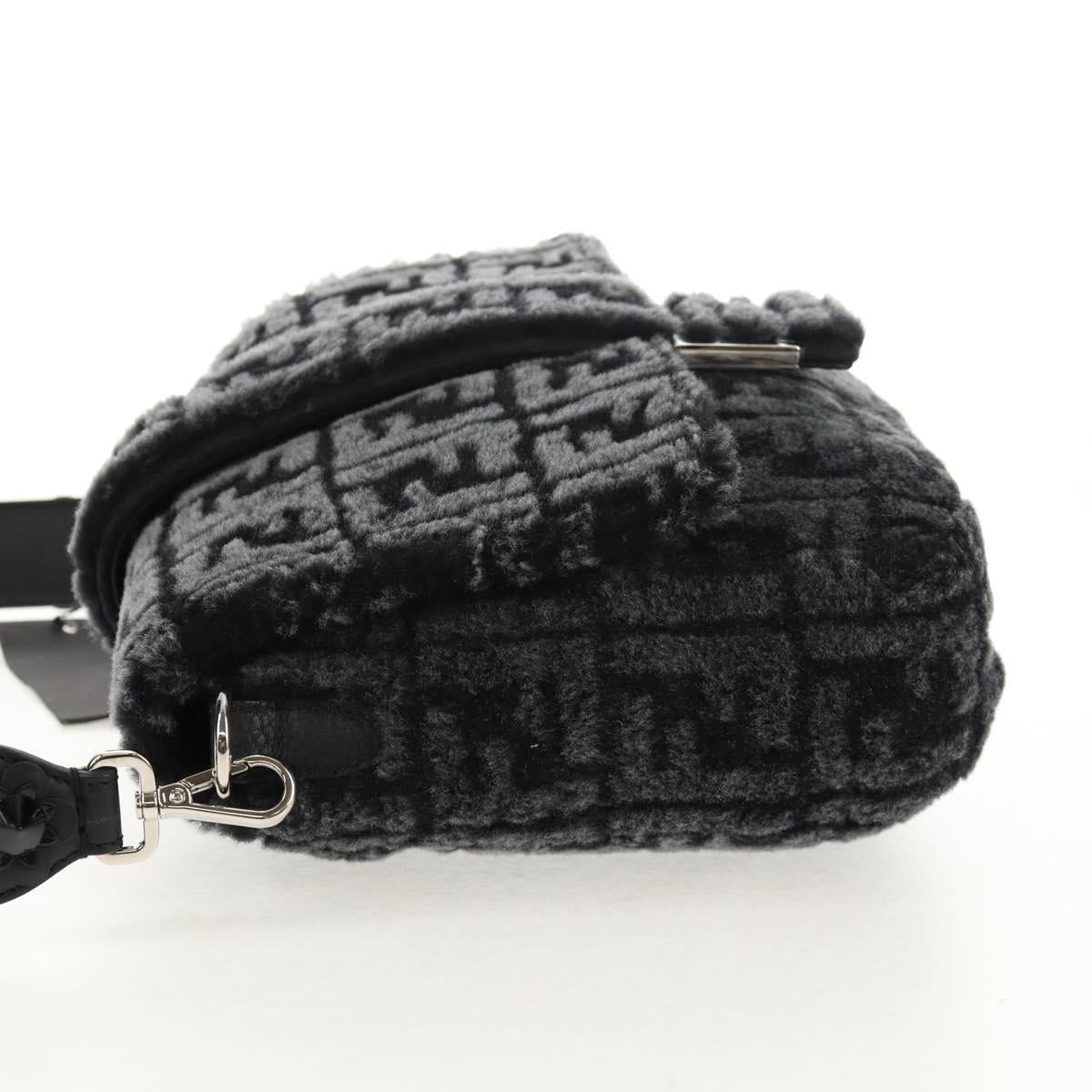 FENDI Zucca Canvas Baguette Messenger Medium Bag Black Silver Auth 141163M