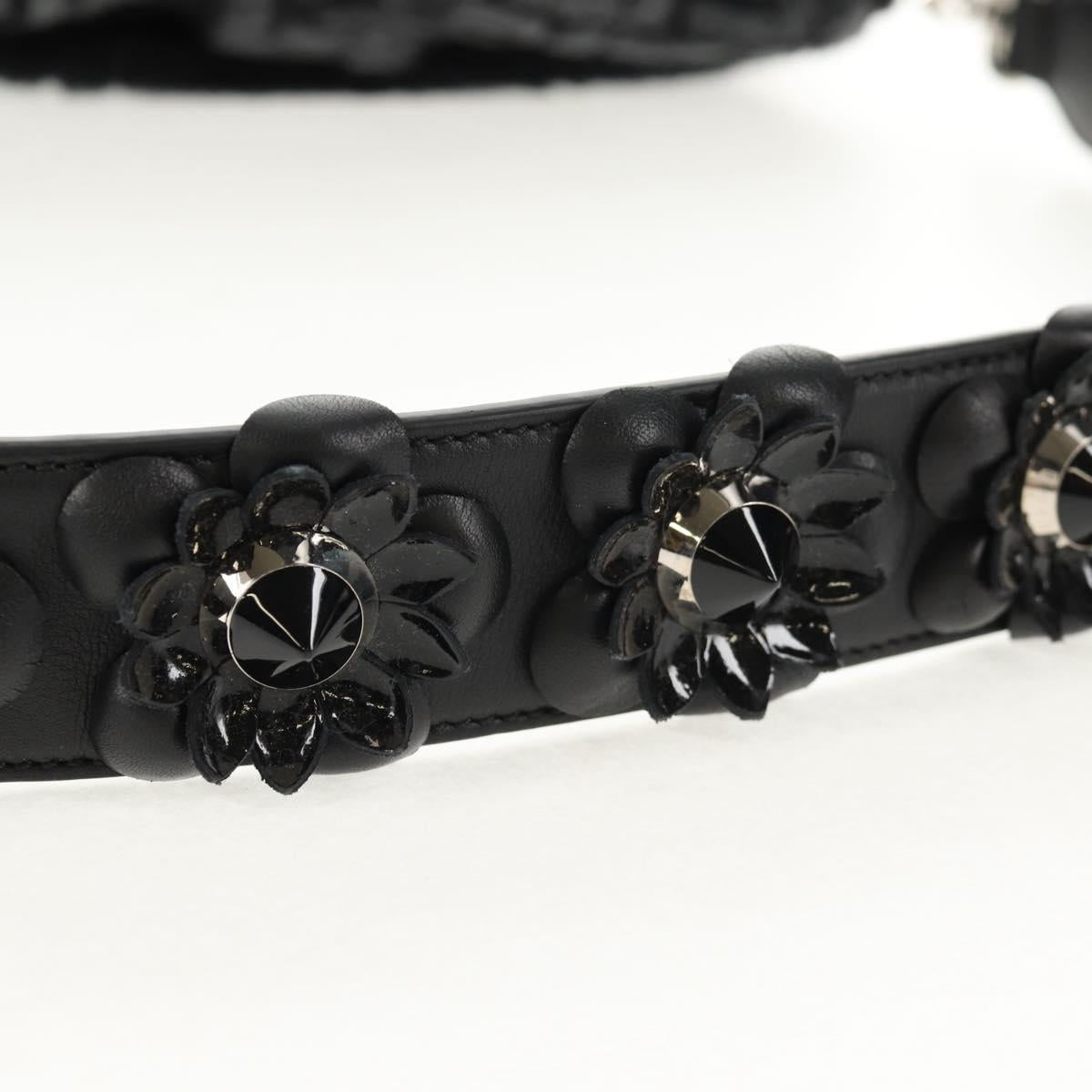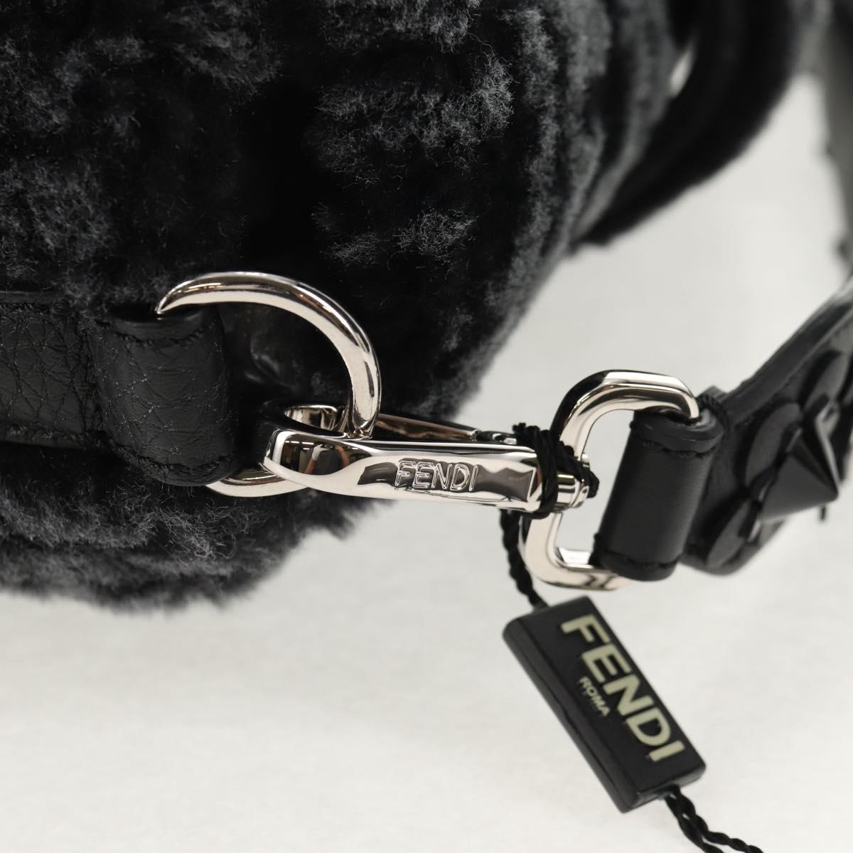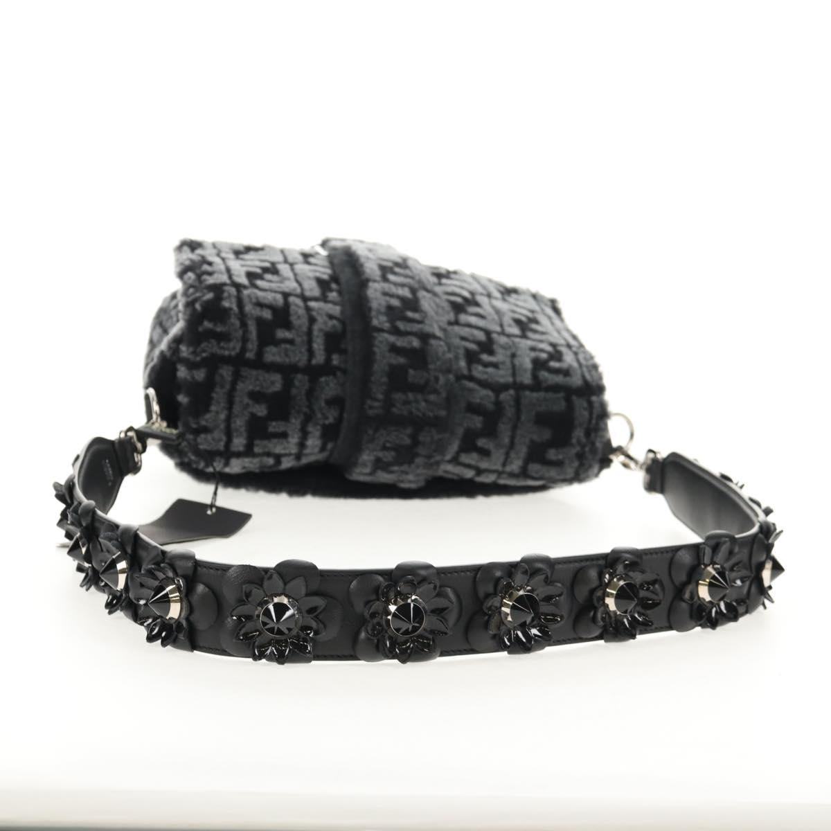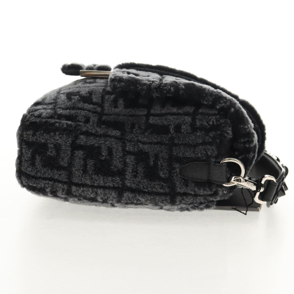 FENDI Zucca Canvas Baguette Messenger Medium Bag Black Silver Auth 141163M
