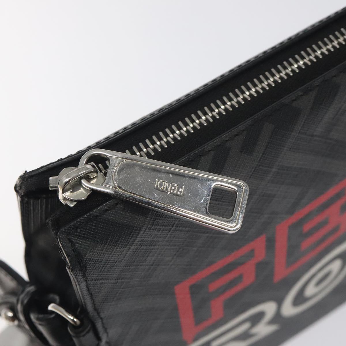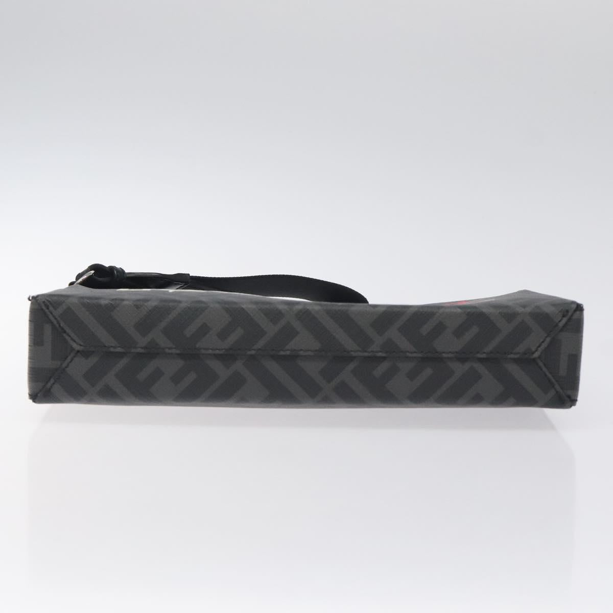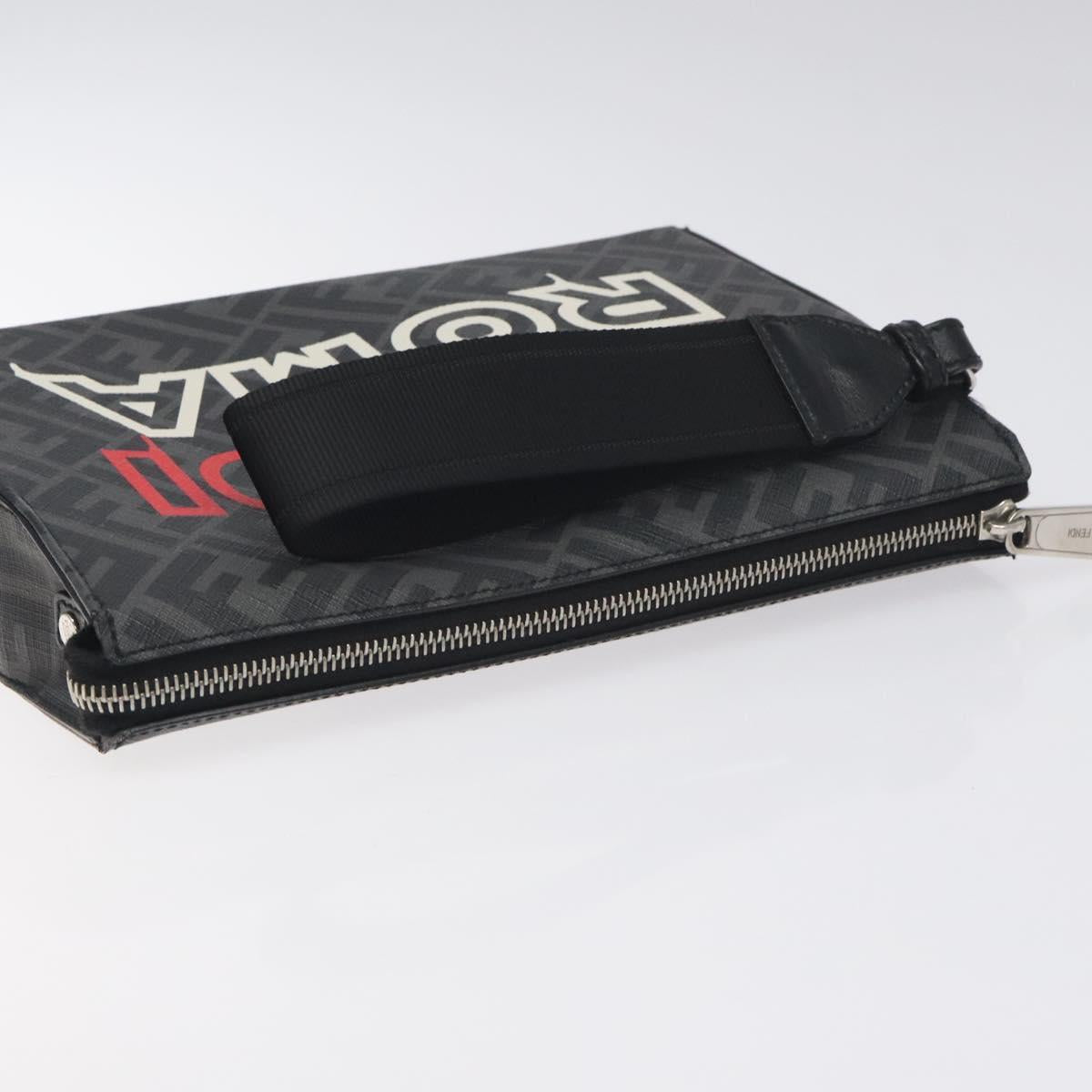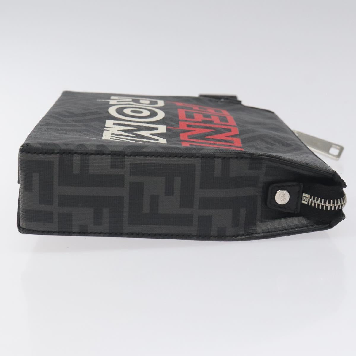FENDI Zucca Canvas Clutch Bag PVC Black Silver Auth BA3687M