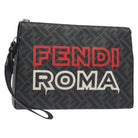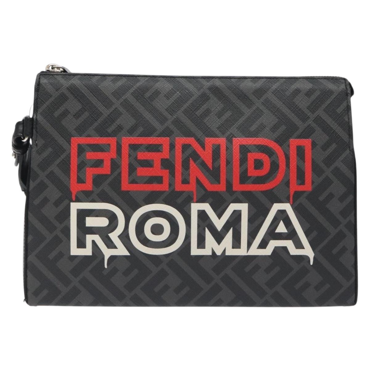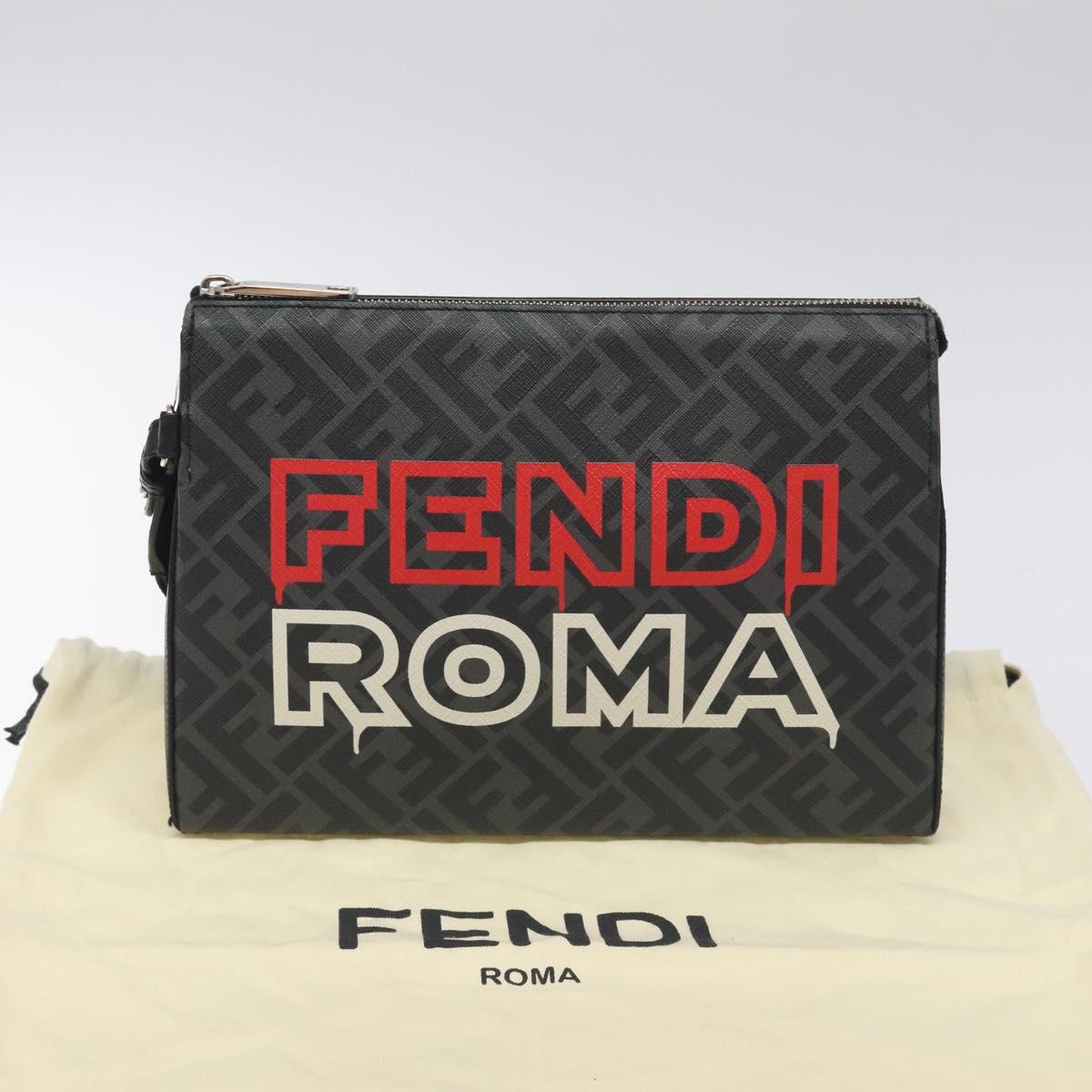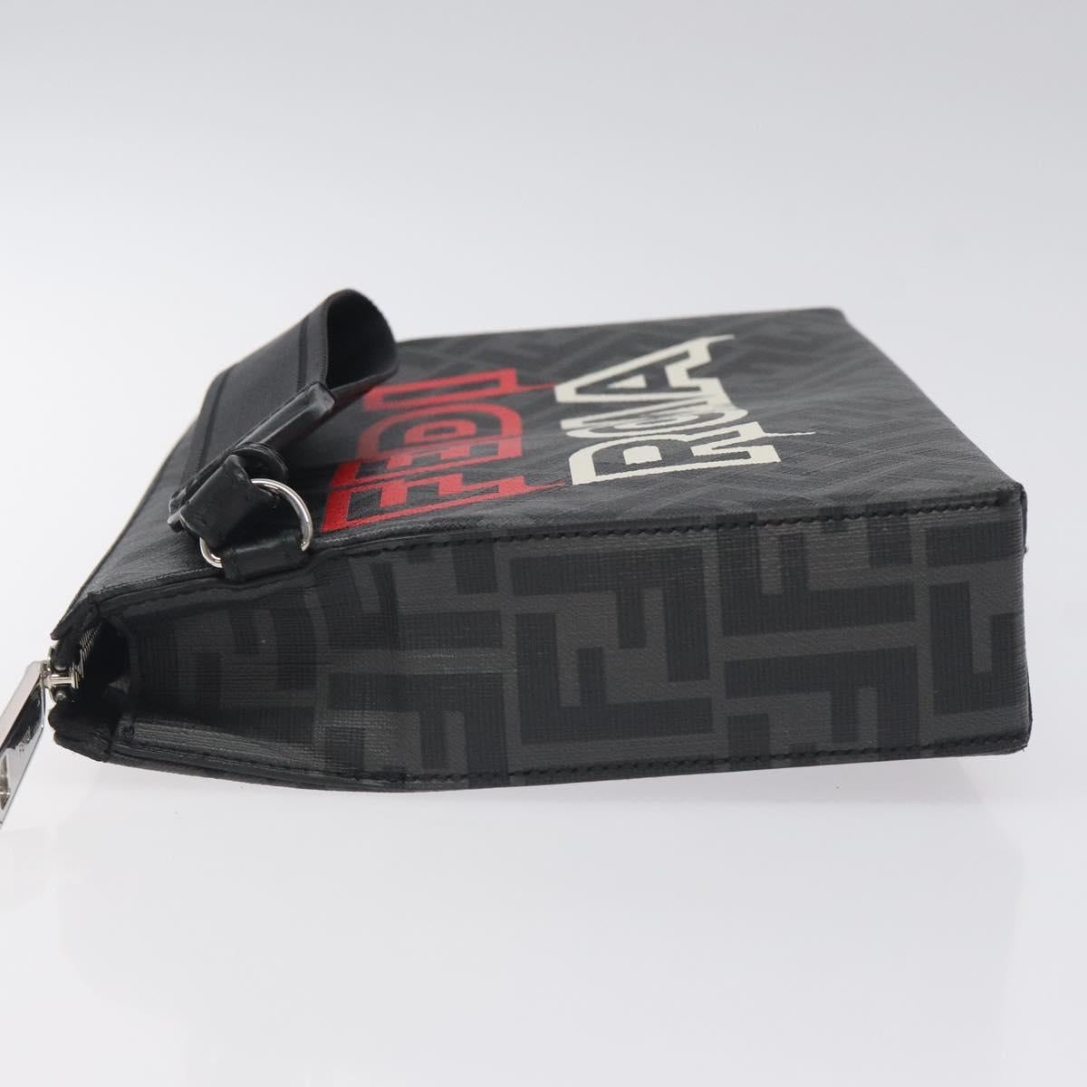 FENDI Zucca Canvas Clutch Bag PVC Black Silver Auth BA3687M