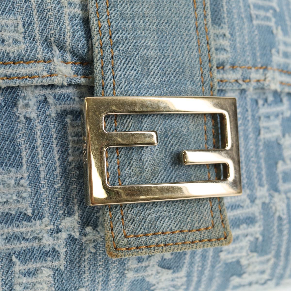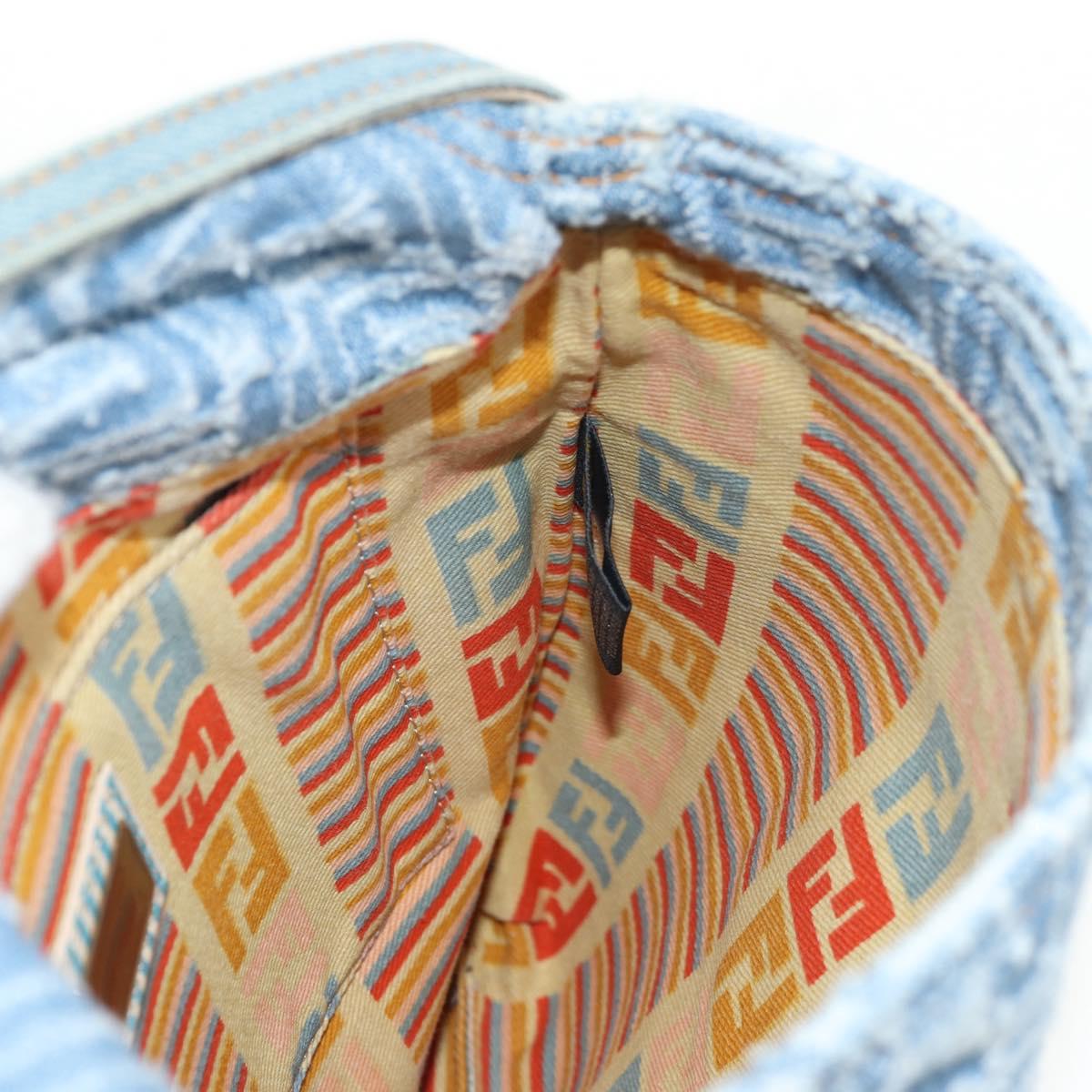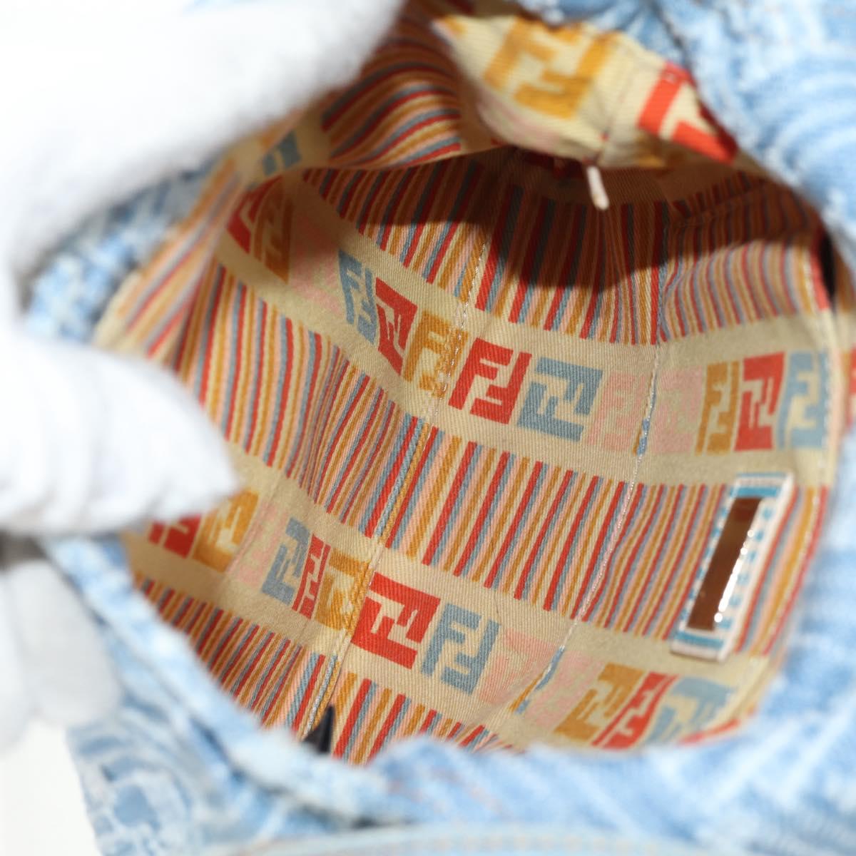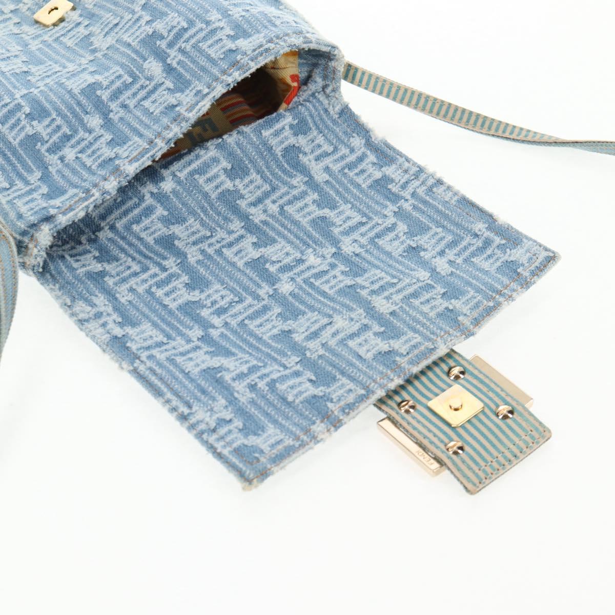 FENDI Zucca Canvas Mamma Baguette Shoulder Bag Denim Blue Gold Auth hk2972V