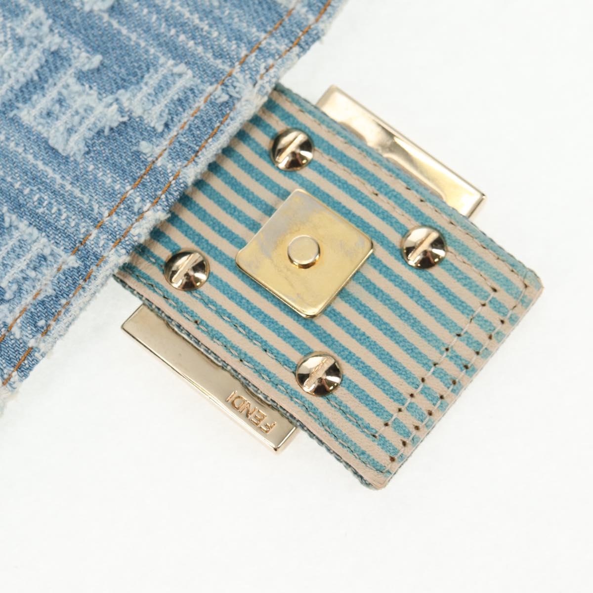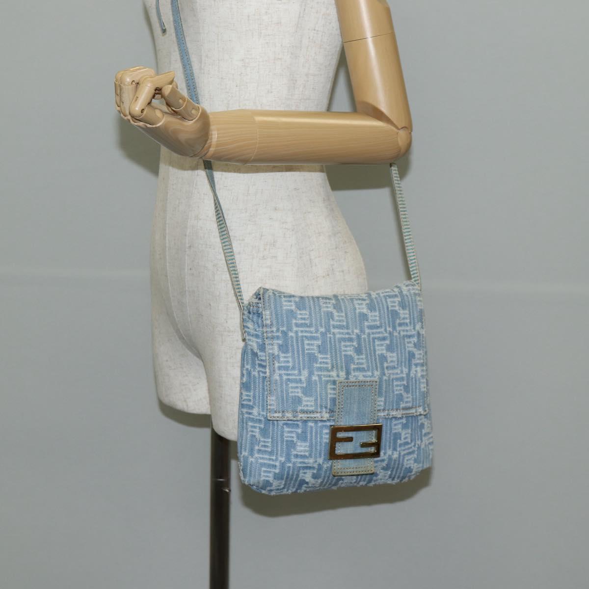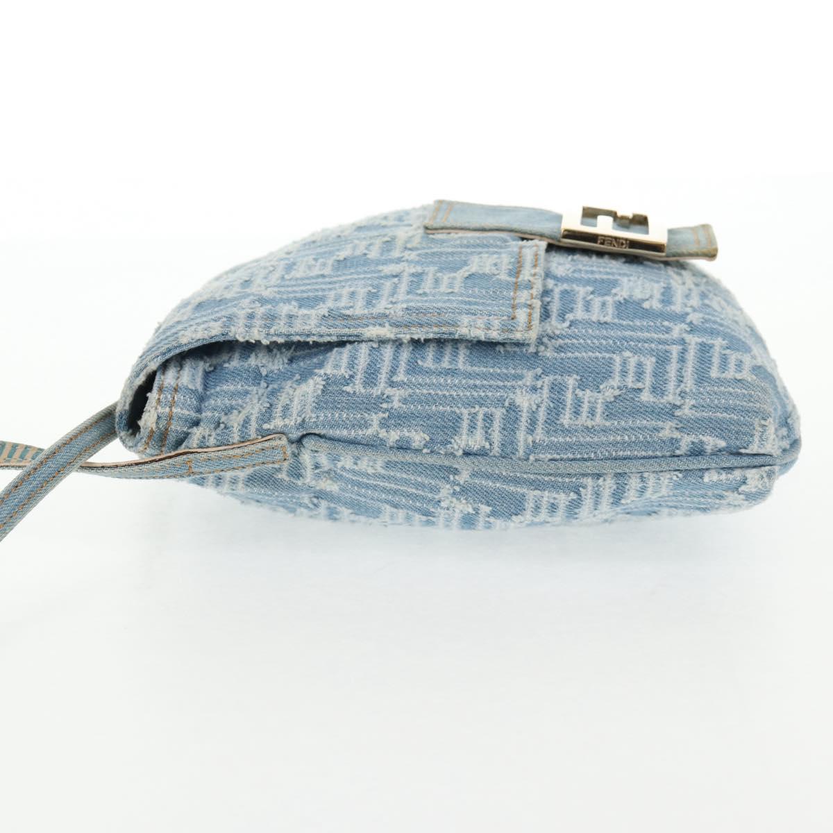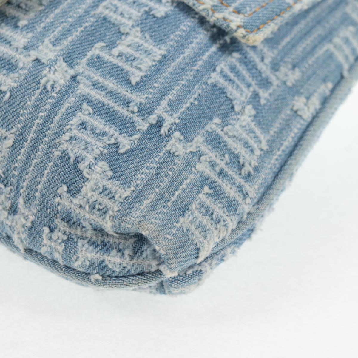 FENDI Zucca Canvas Mamma Baguette Shoulder Bag Denim Blue Gold Auth hk2972V