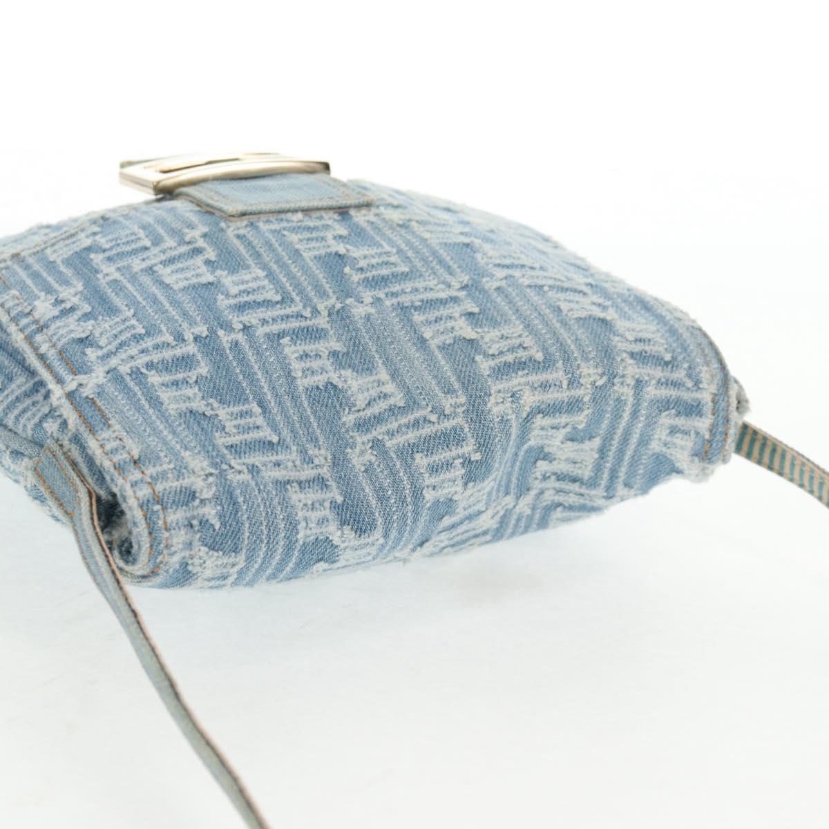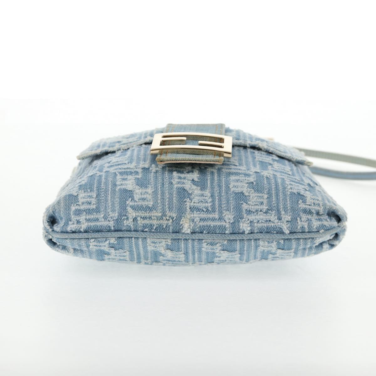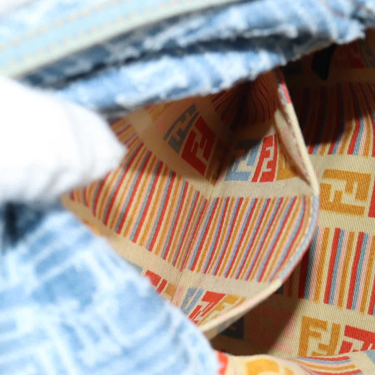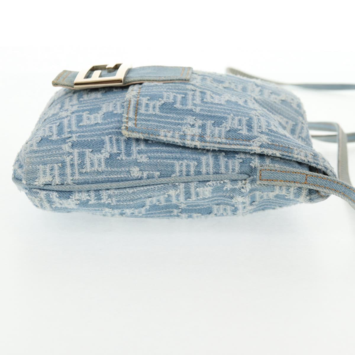 FENDI Zucca Canvas Mamma Baguette Shoulder Bag Denim Blue Gold Auth hk2972V