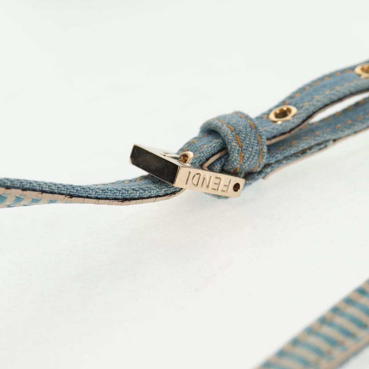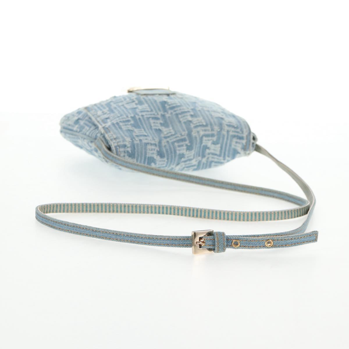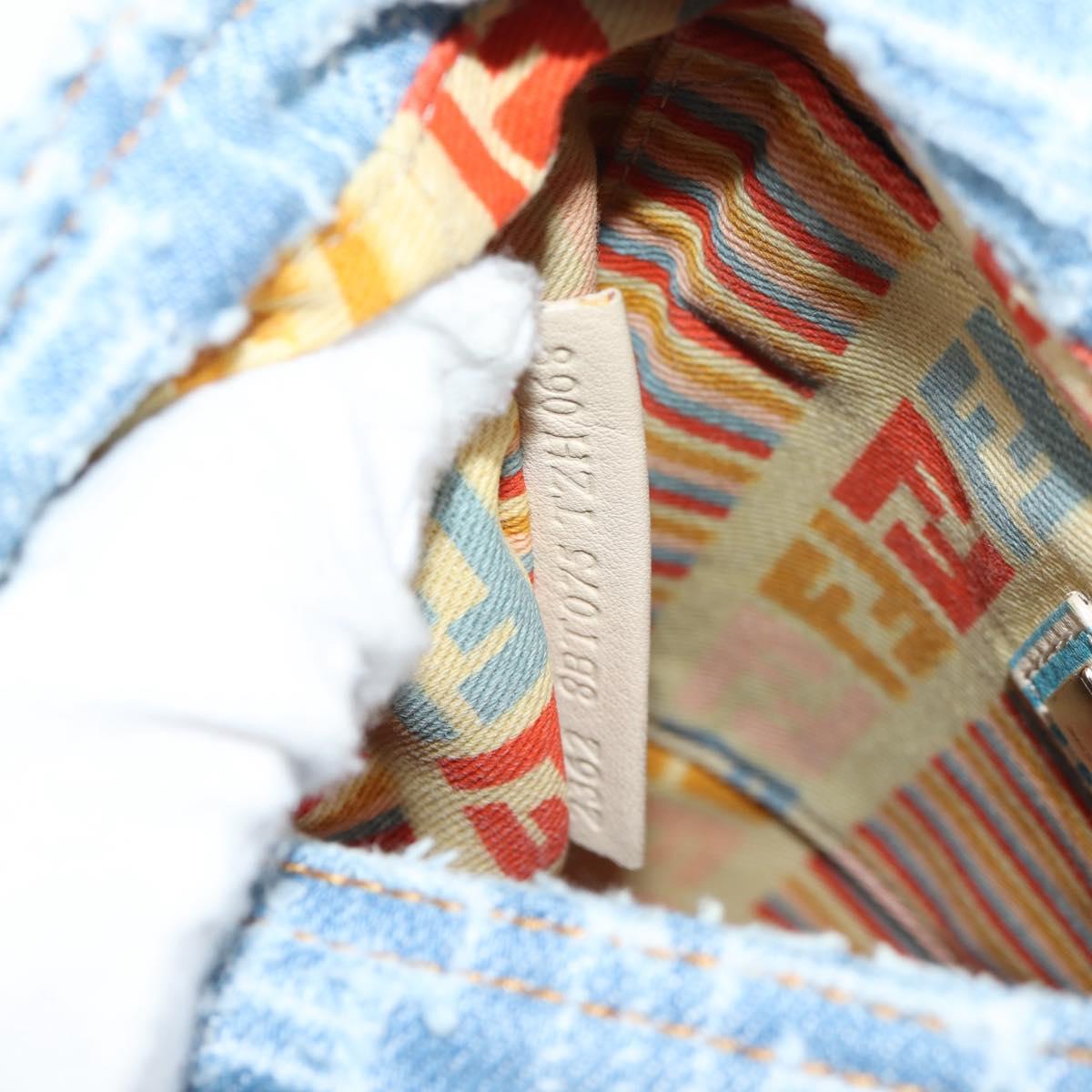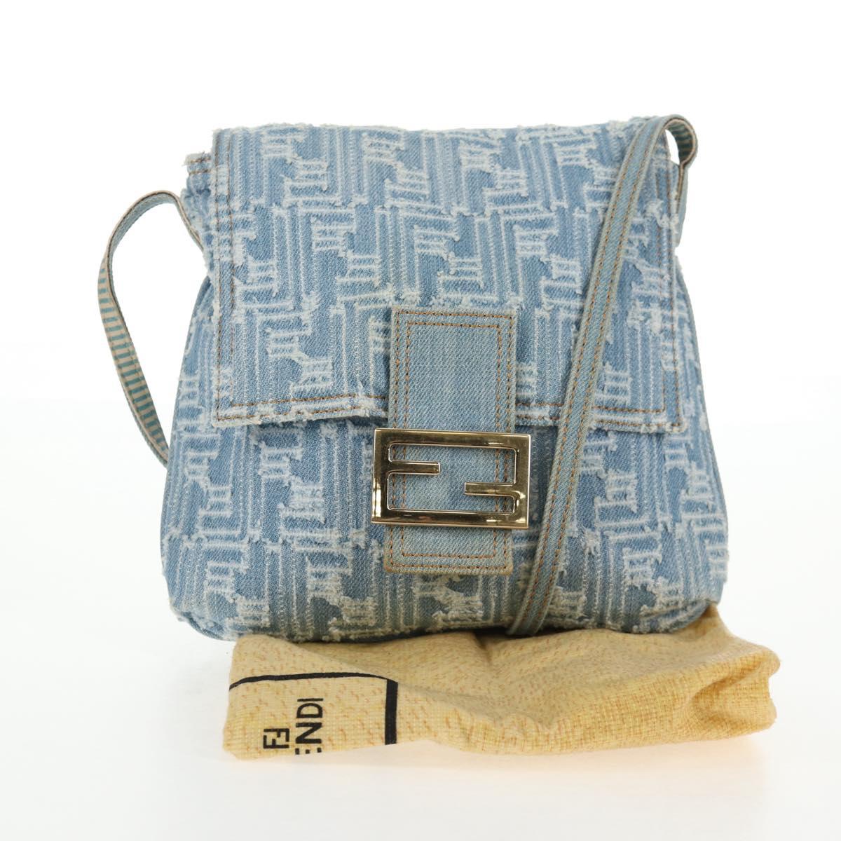FENDI Zucca Canvas Mamma Baguette Shoulder Bag Denim Blue Gold Auth hk2972V
