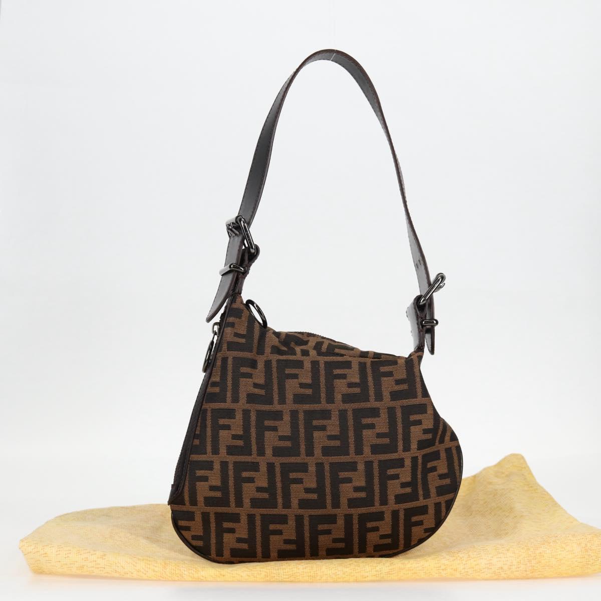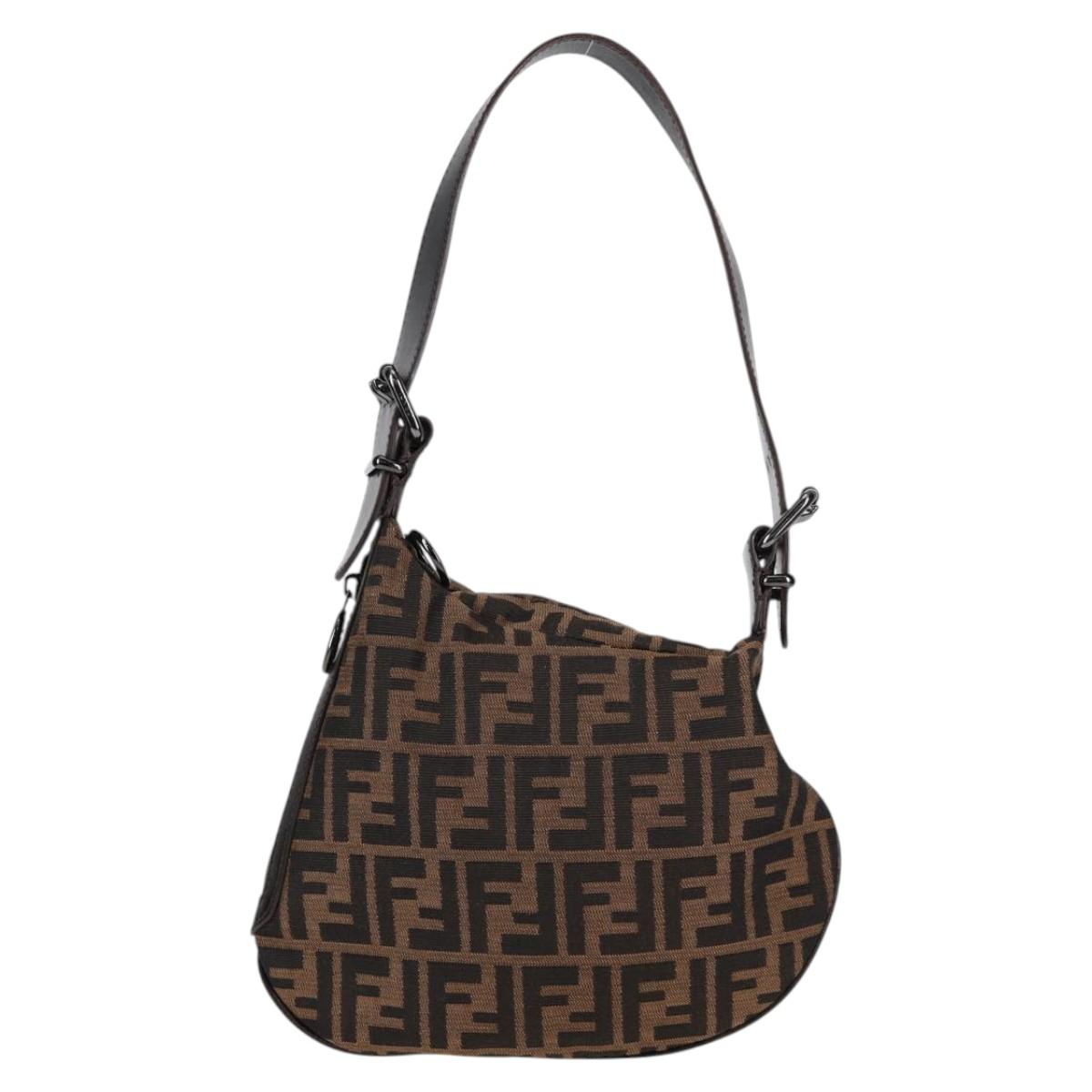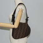 FENDI Zucca Canvas Shoulder Bag Brown Black 8BR128 Auth yk18251V