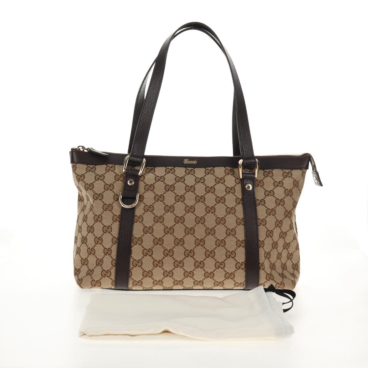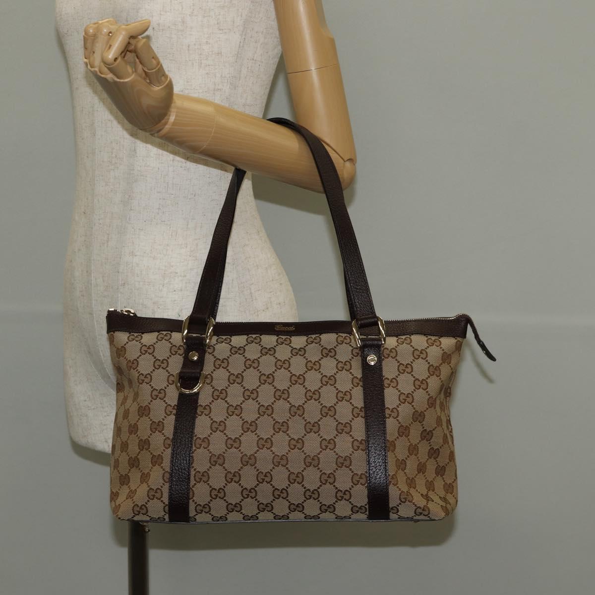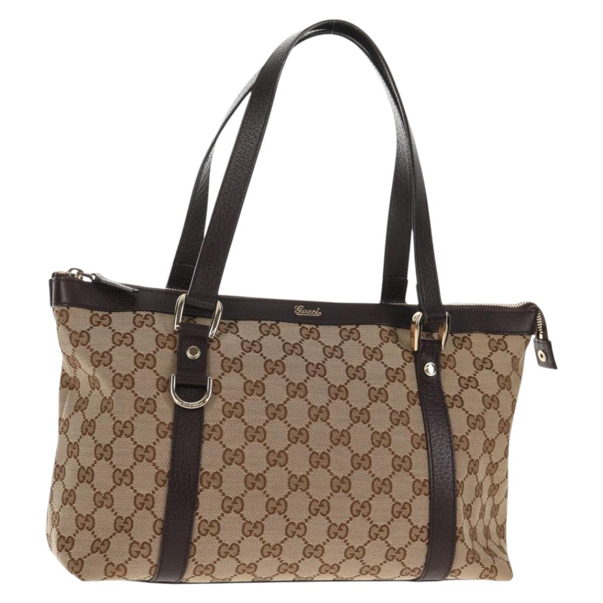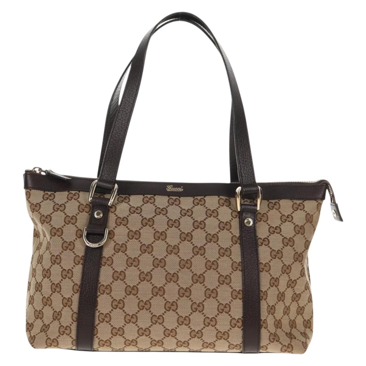 GUCCI GG Canvas Abbey Tote Bag Beige Gold 141470 Auth am9190V
