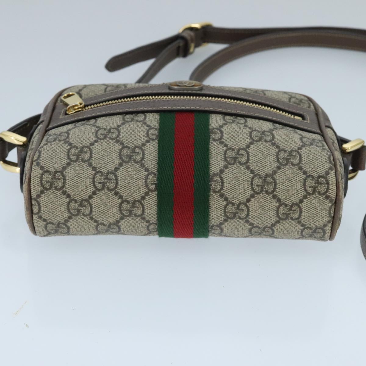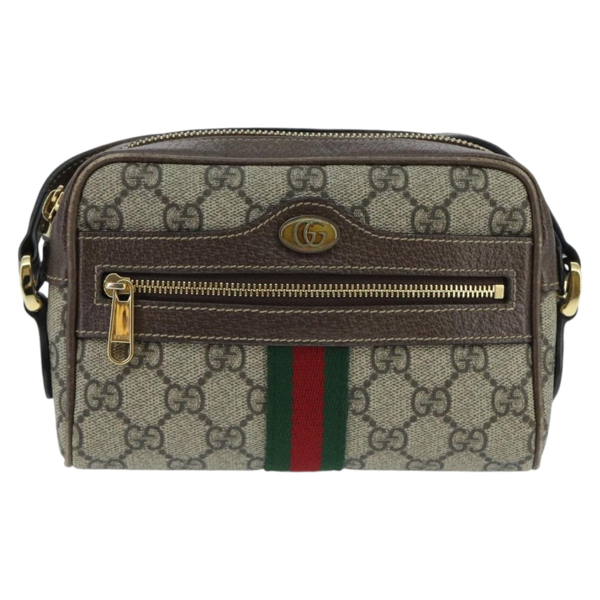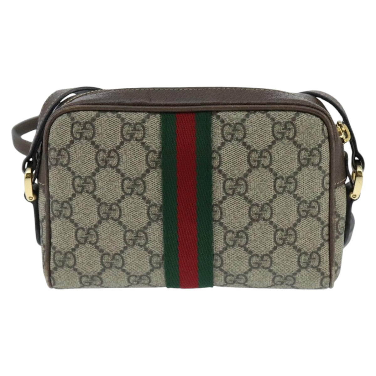 GUCCI GG Supreme Web Sherry Line Shoulder Bag PVC Beige Red 517350 Auth 96748M