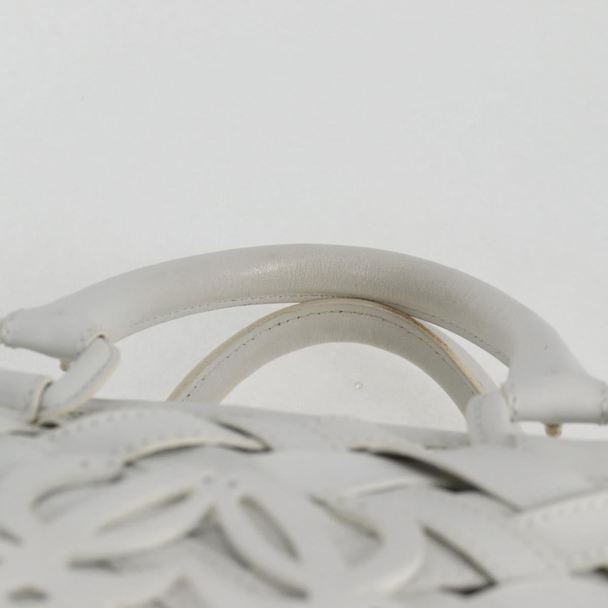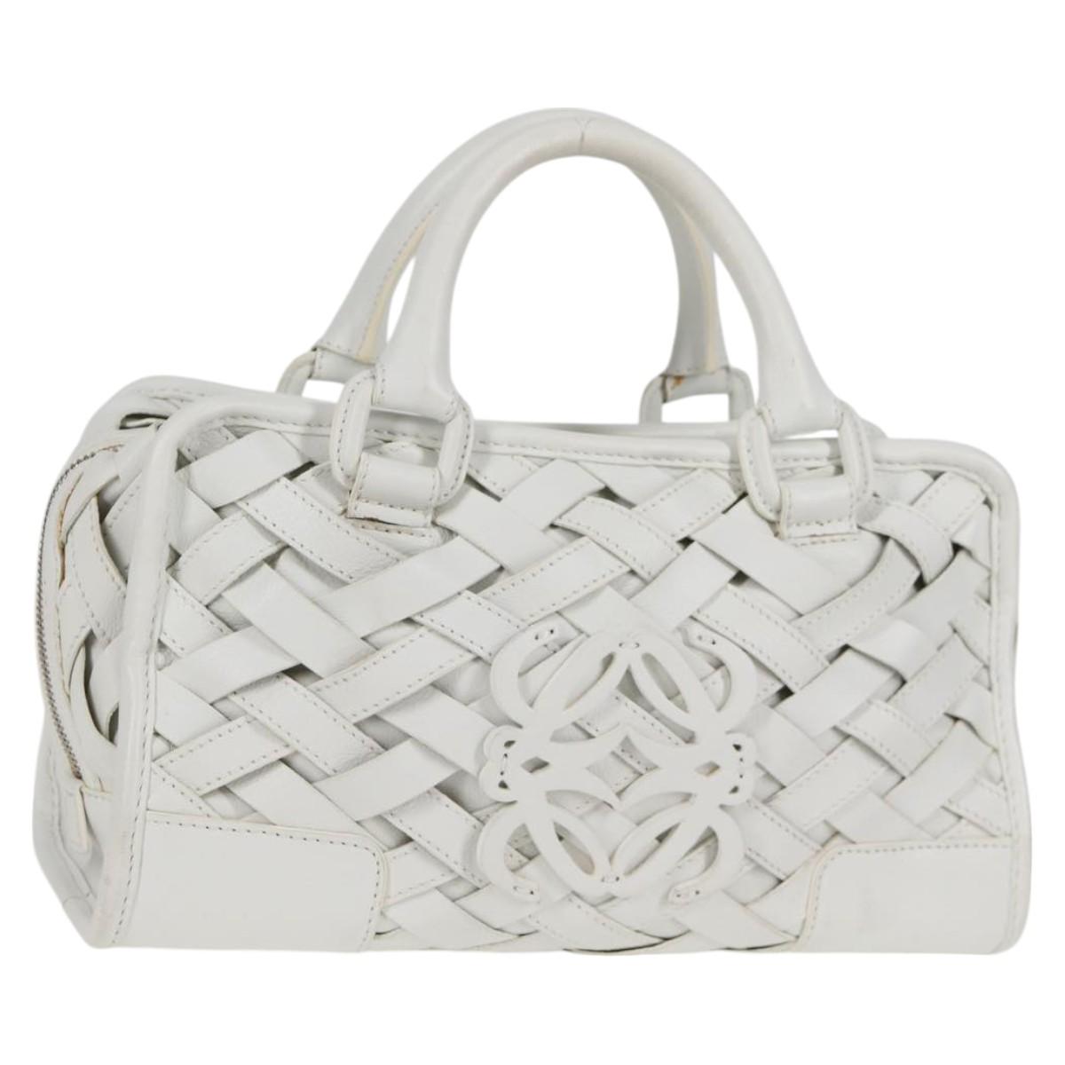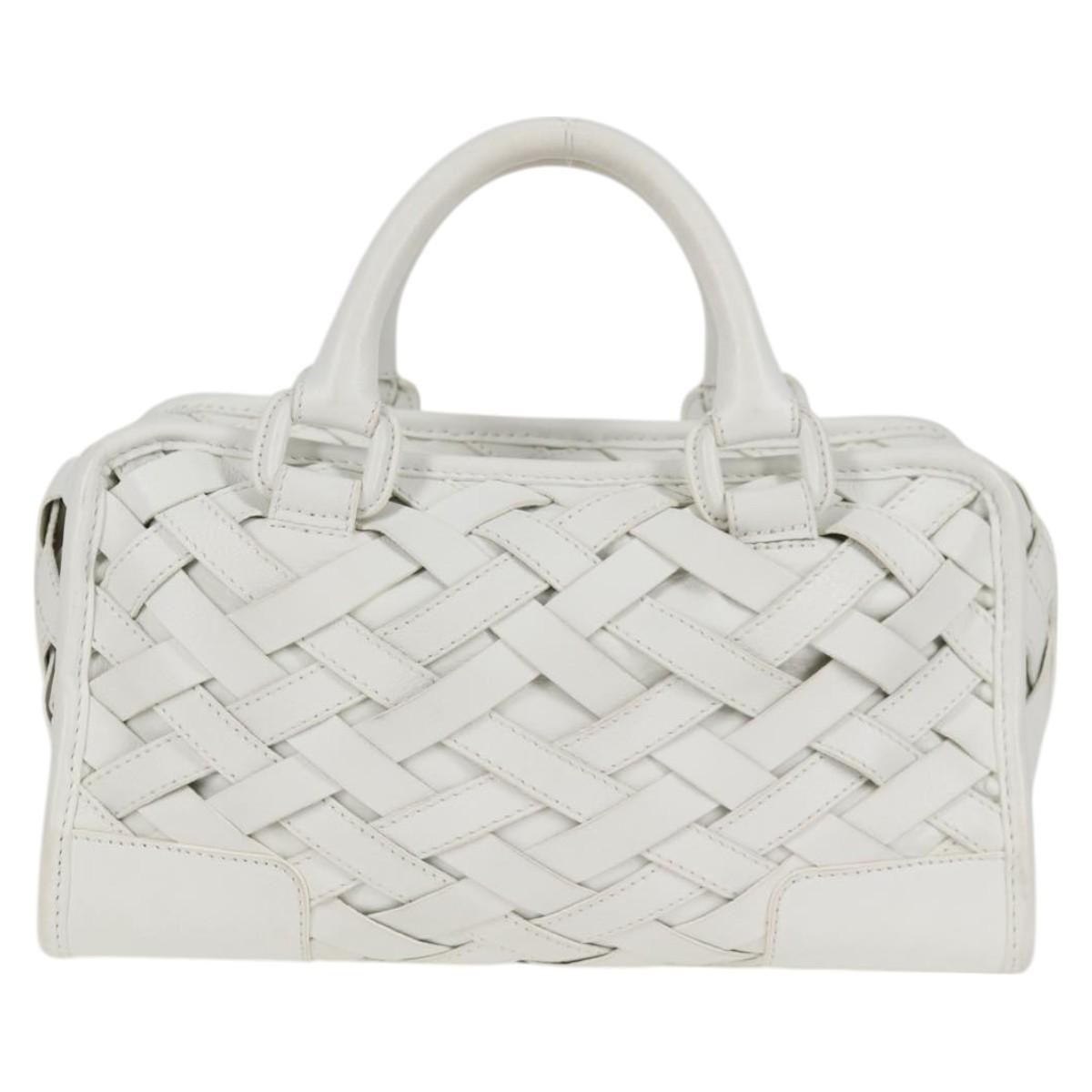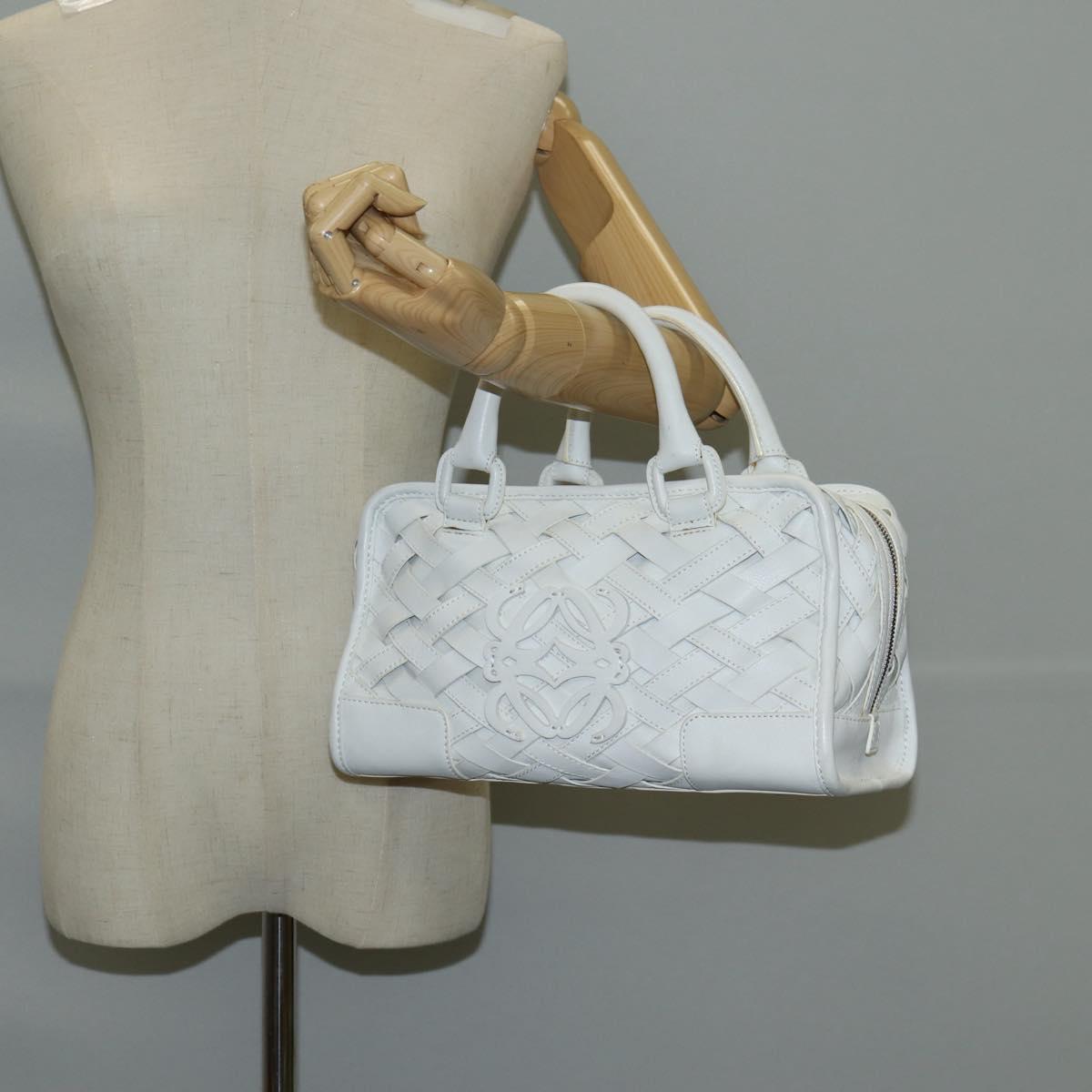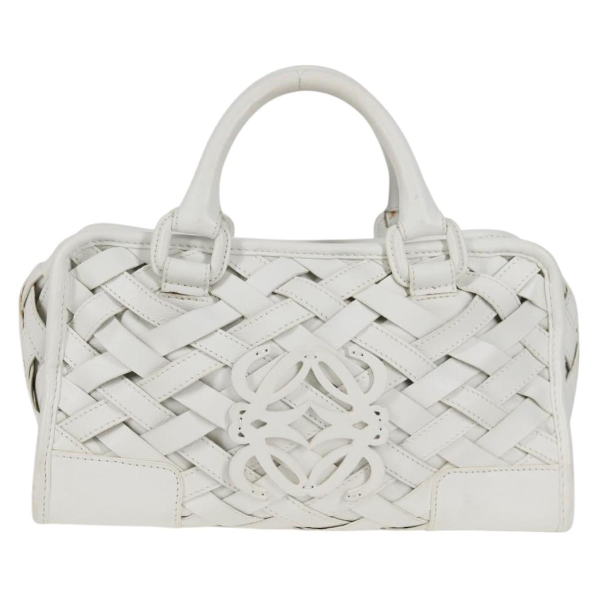 LOEWE Anagram Americana 28 Hand Bag Leather White Silver Auth 130483V