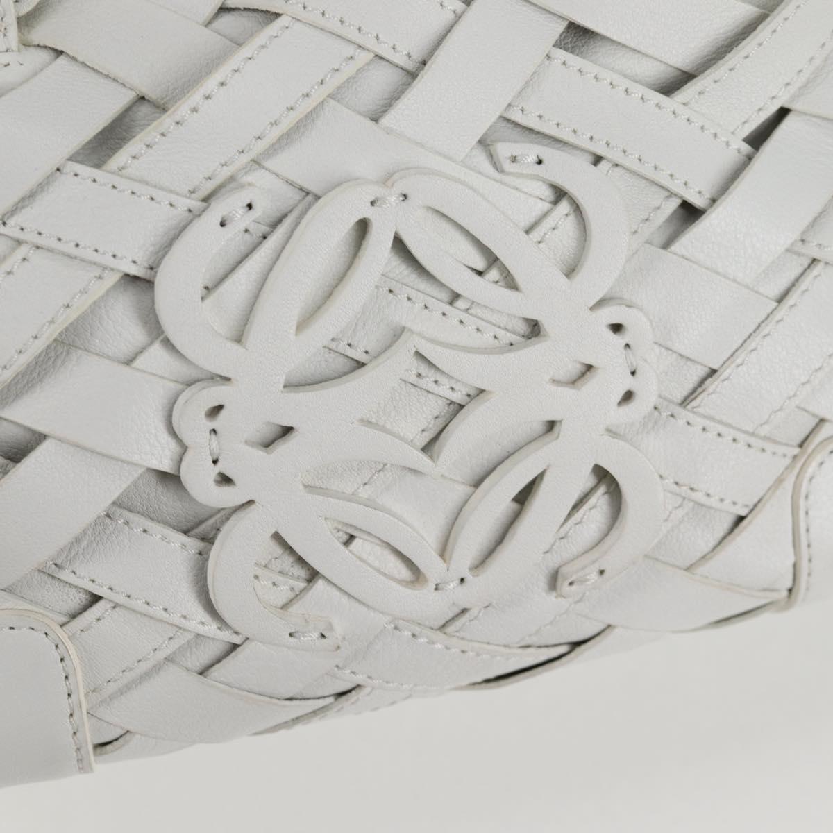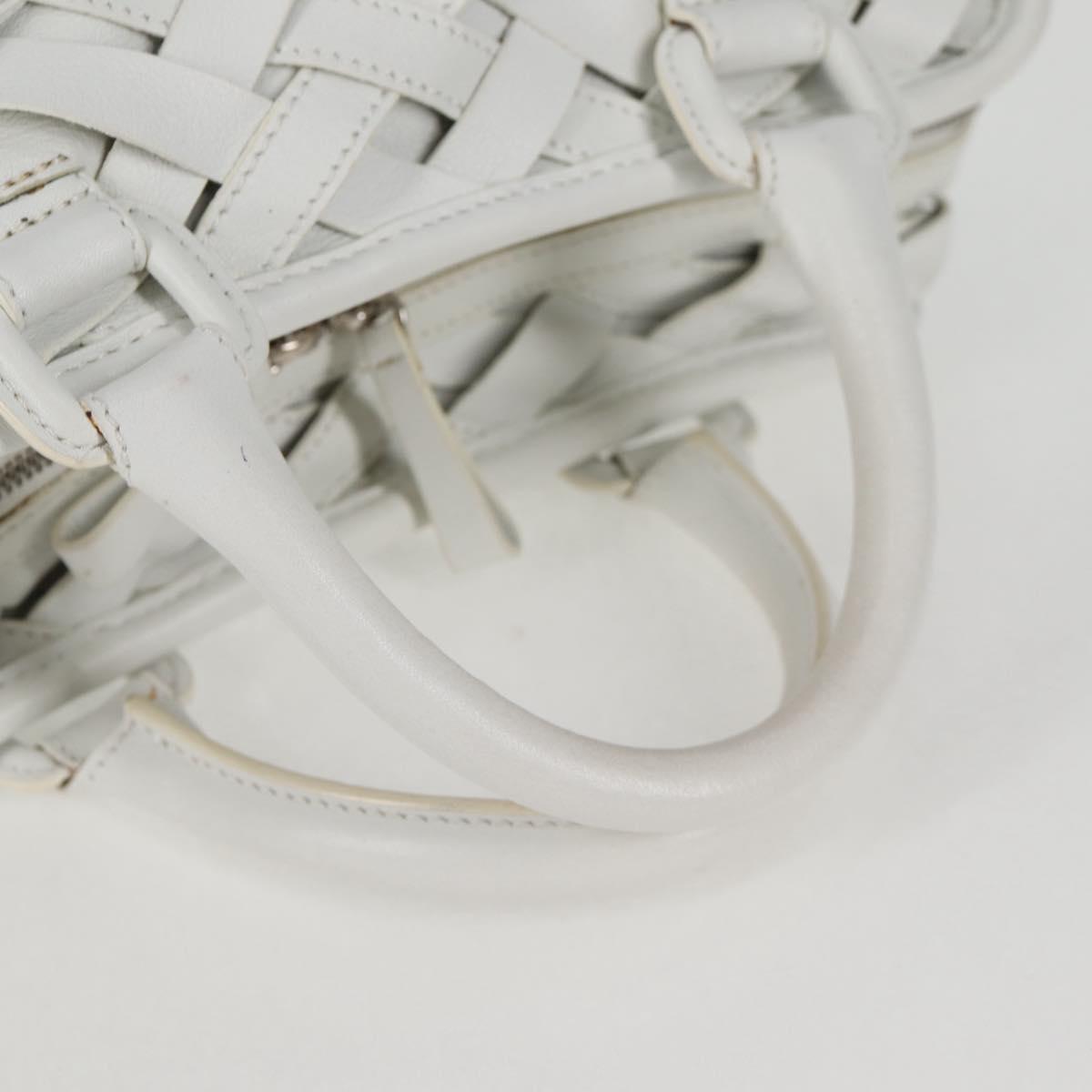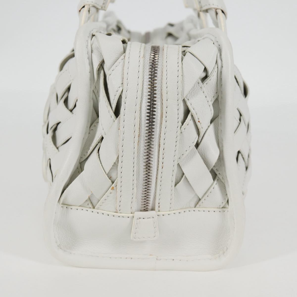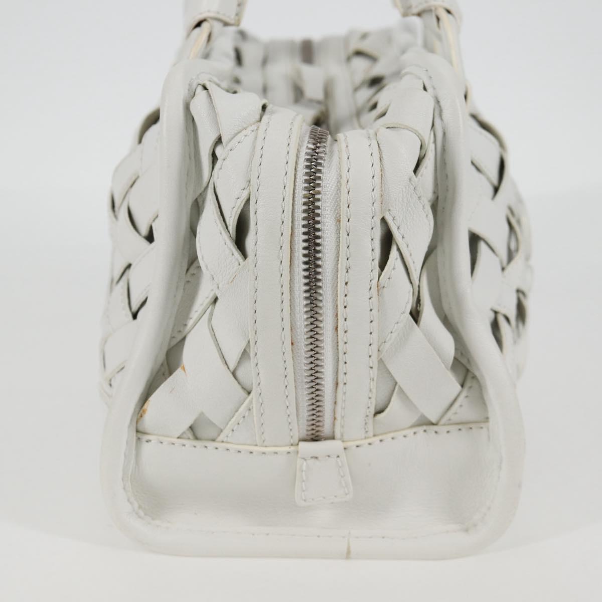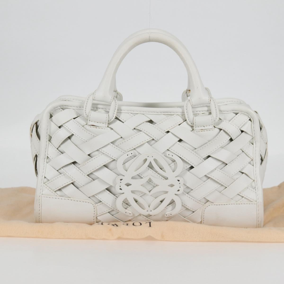 LOEWE Anagram Americana 28 Hand Bag Leather White Silver Auth 130483V