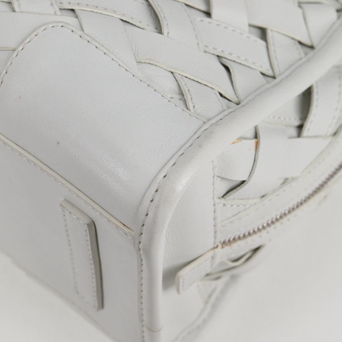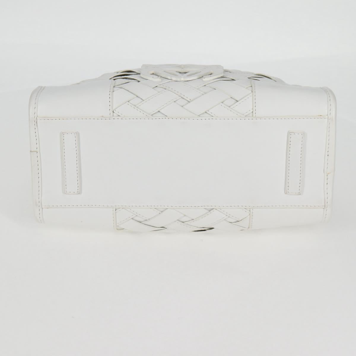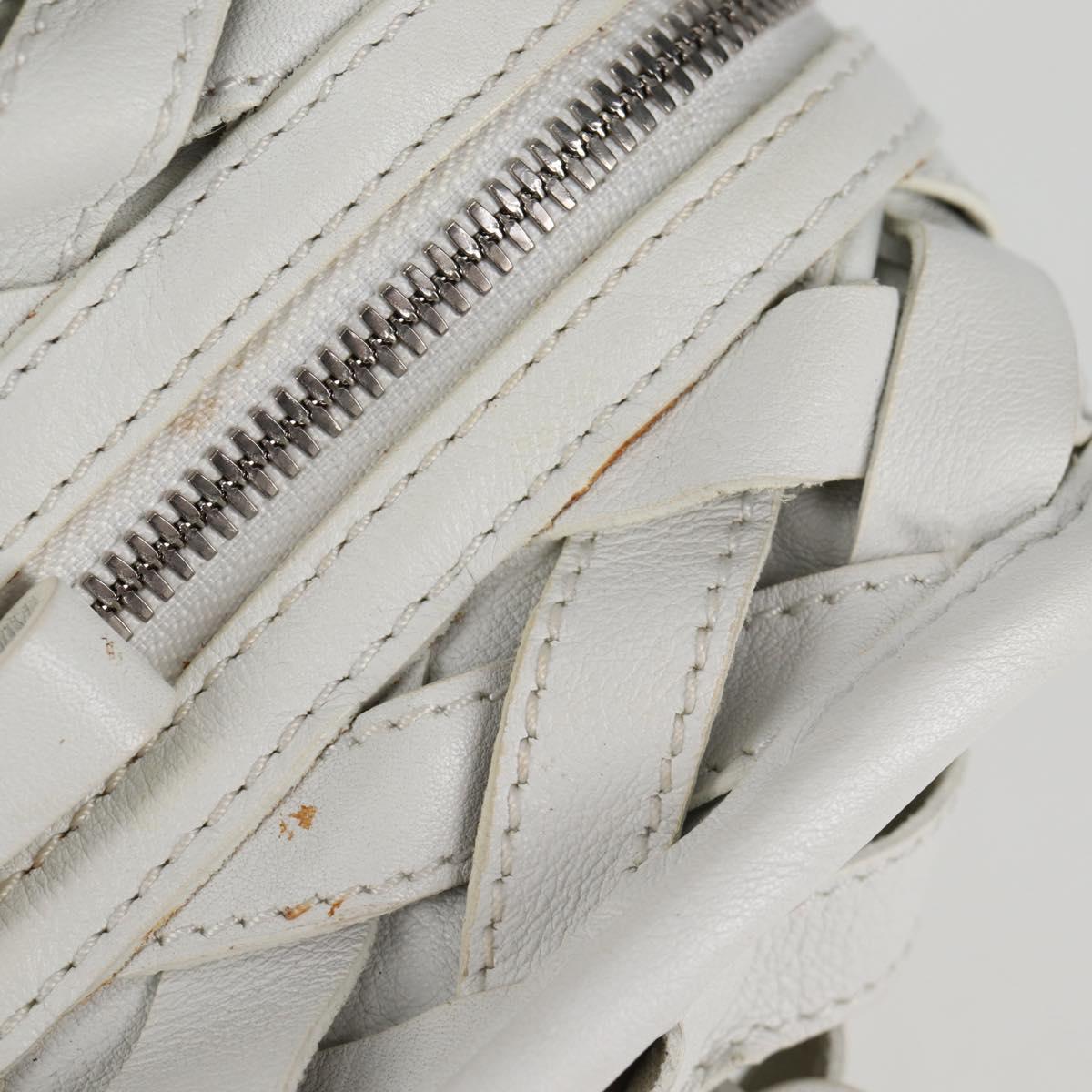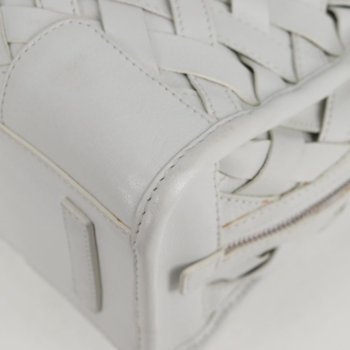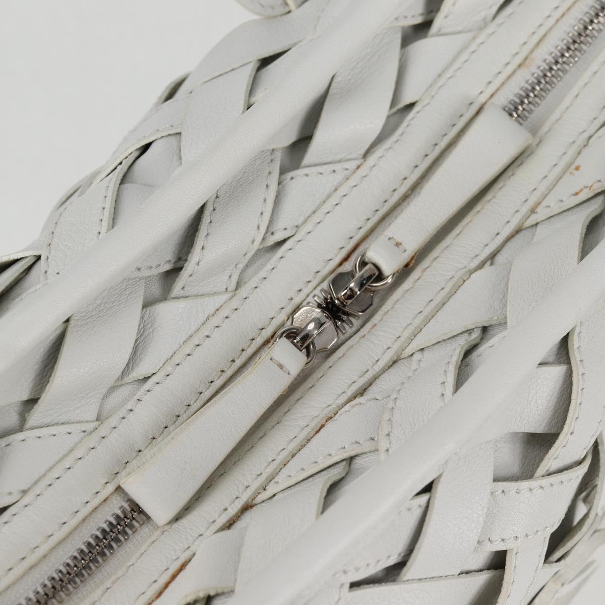 LOEWE Anagram Americana 28 Hand Bag Leather White Silver Auth 130483V