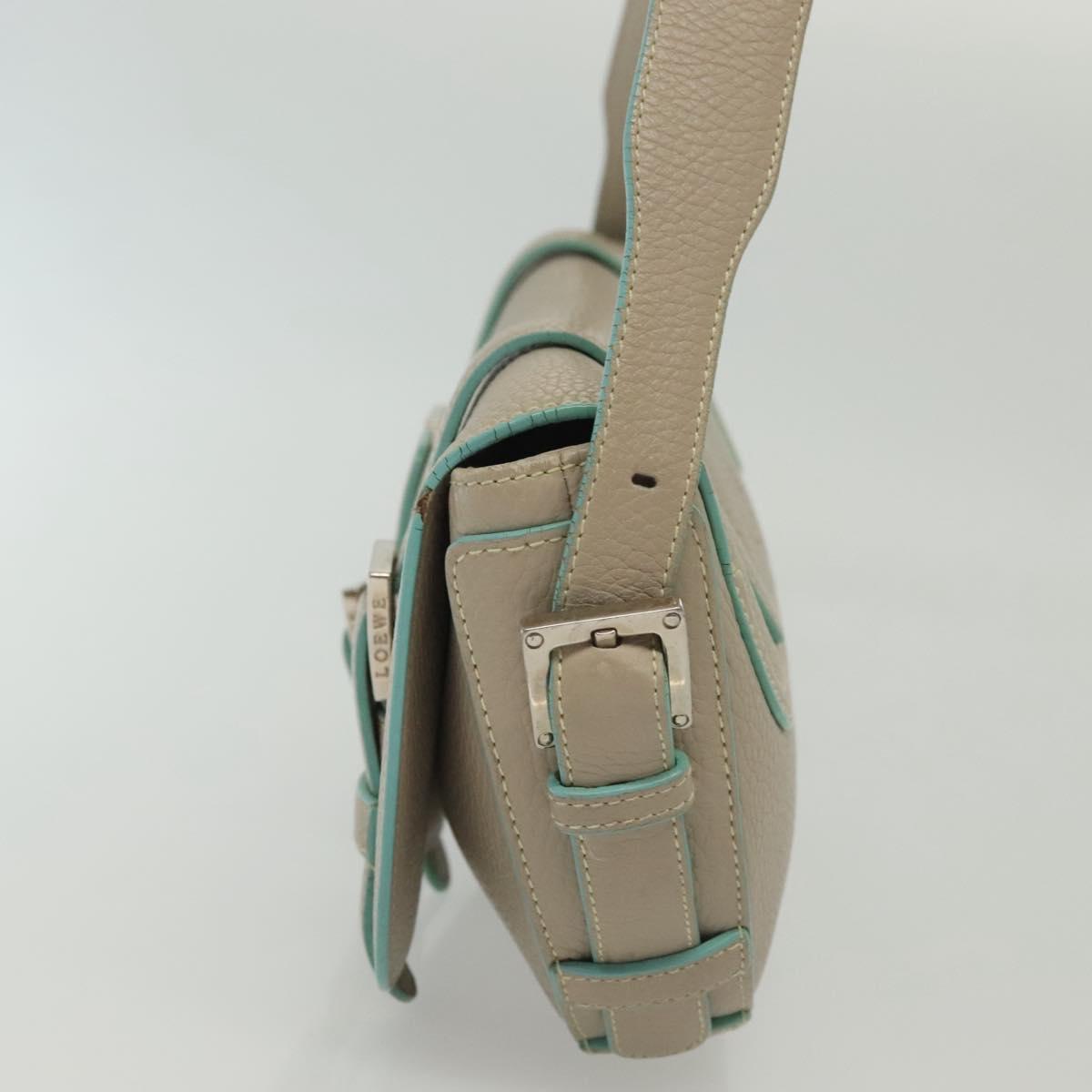 LOEWE Shoulder Bag Leather Beige Silver Auth 141961V