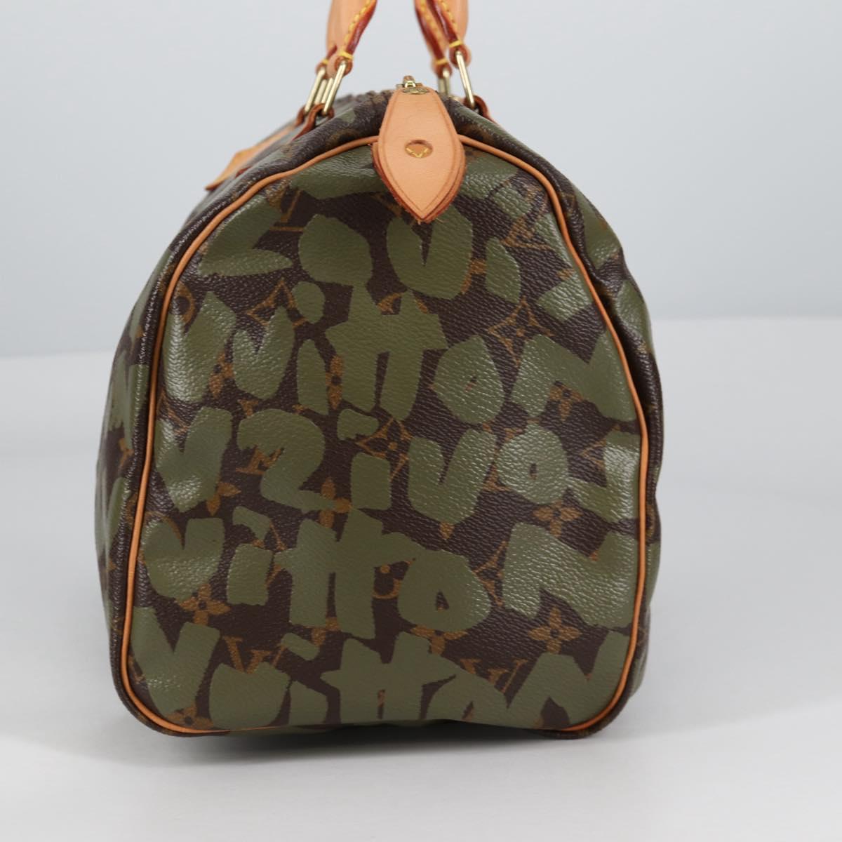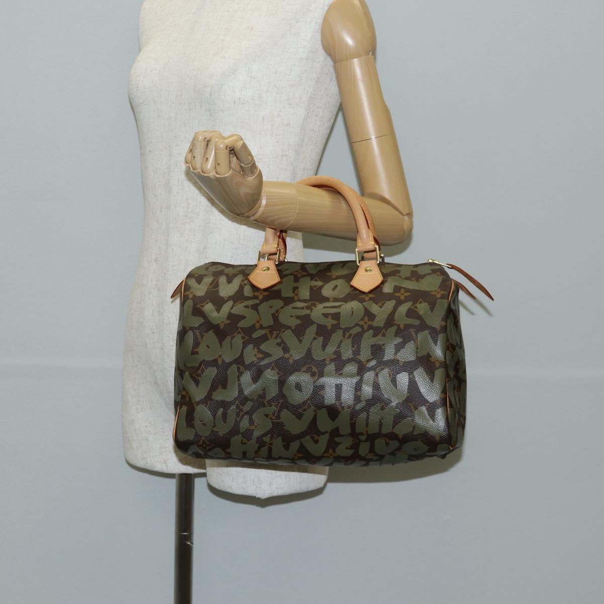 LOUIS VUITTON Monogram Graffiti Speedy 30 Bag Green Khaki M92194 Auth fm4850V