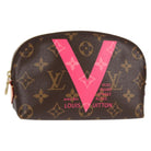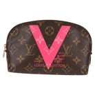 LOUIS VUITTON Monogram V Line Pochette Cosmetic PM Pouch Pink LV Auth 120232AM