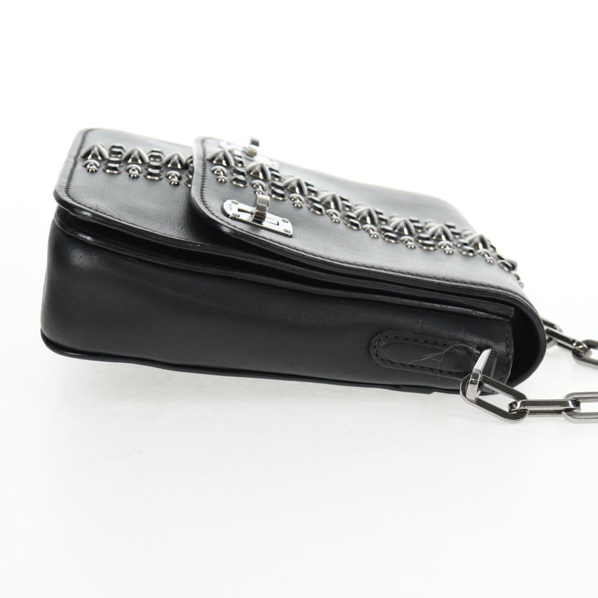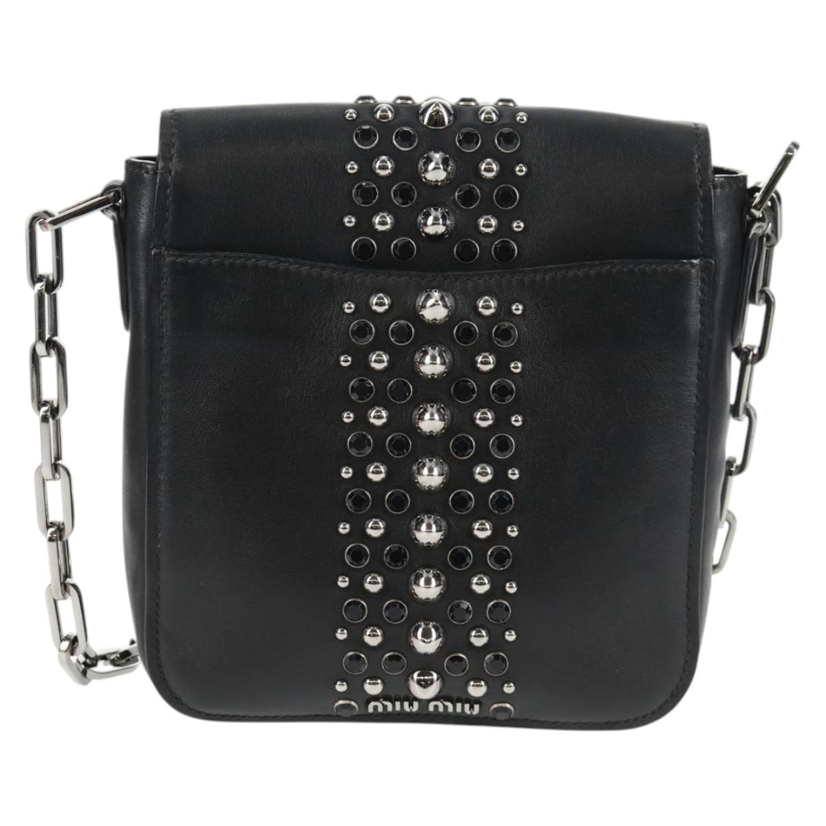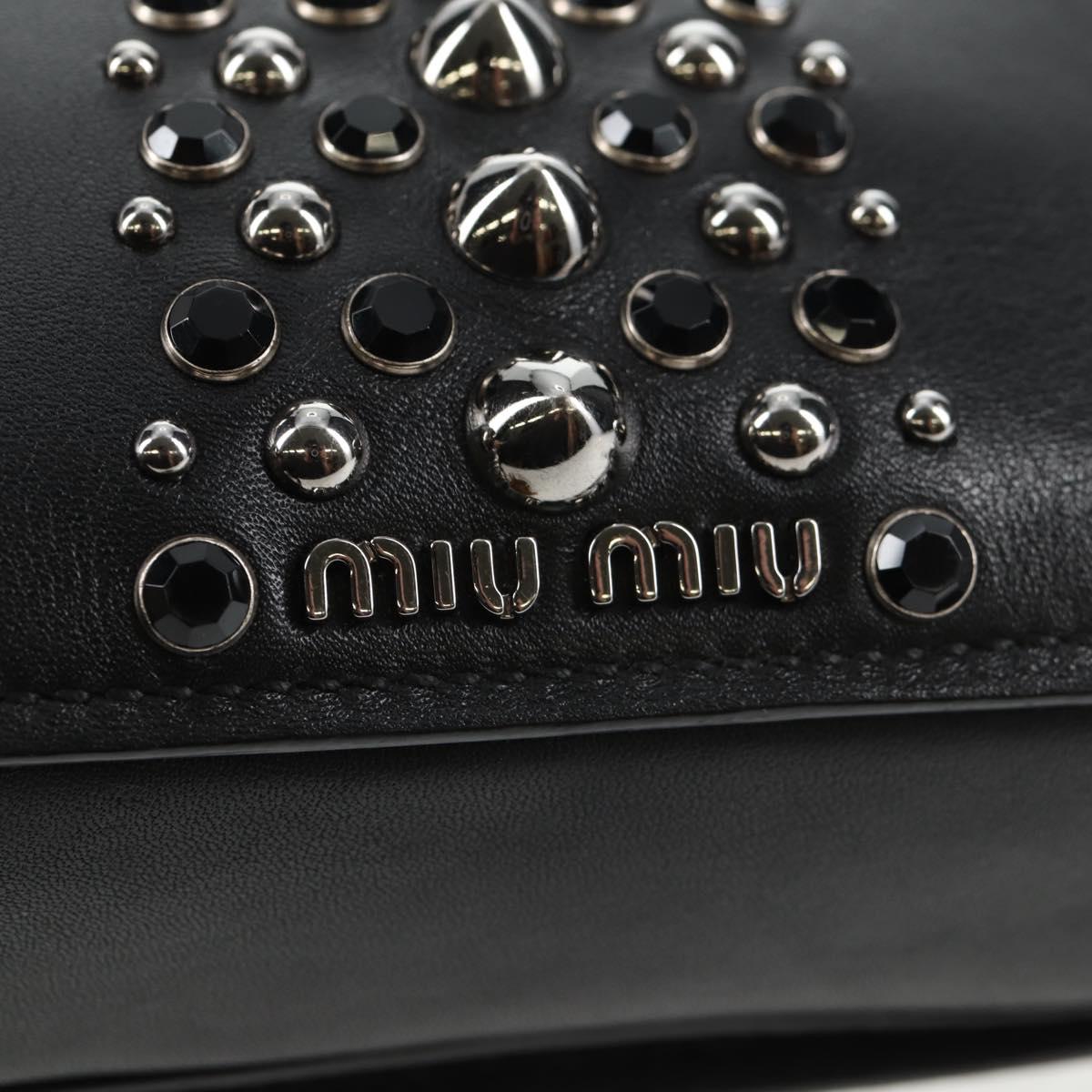 Miu Miu Chain Shoulder Bag Leather Black Silver Auth 138395V
