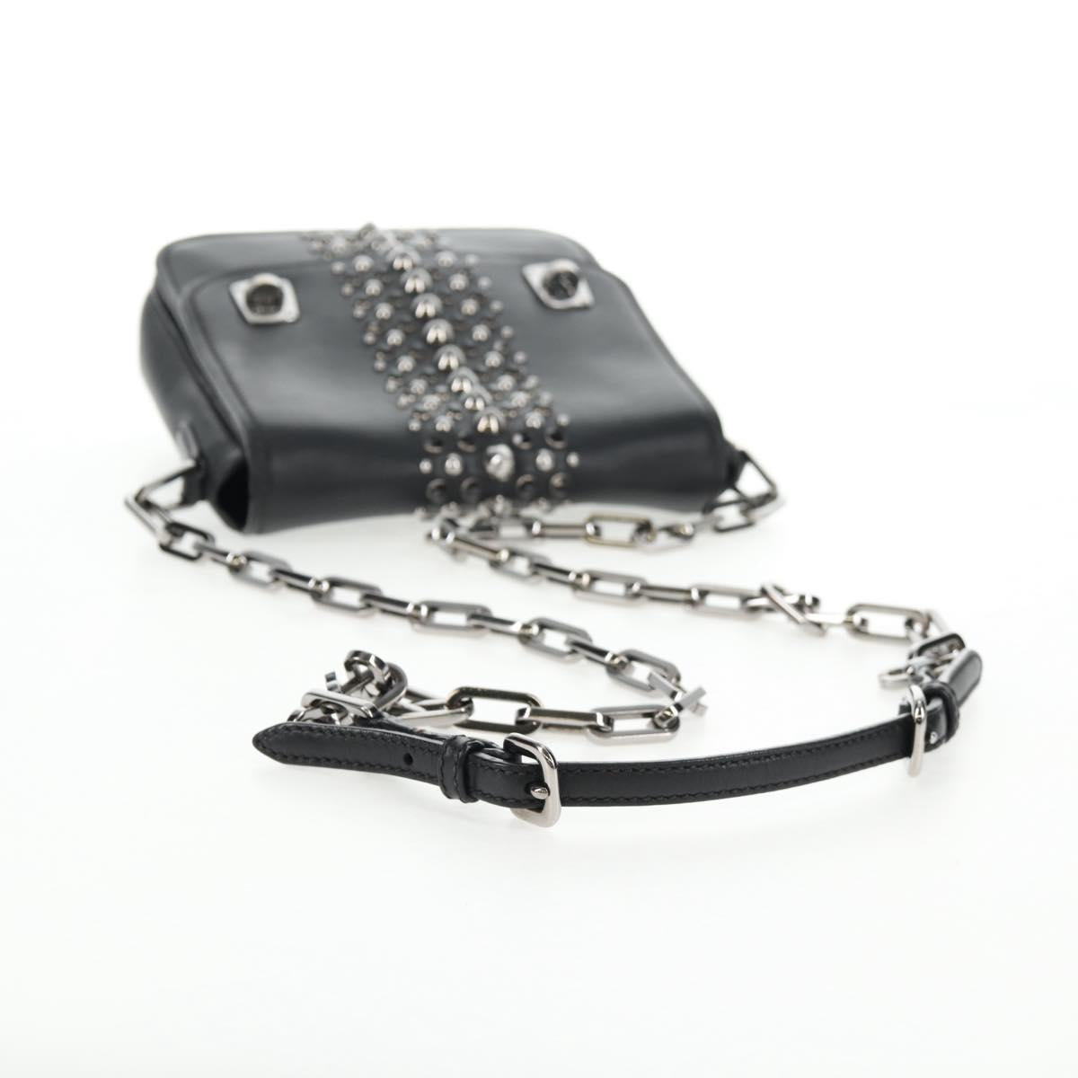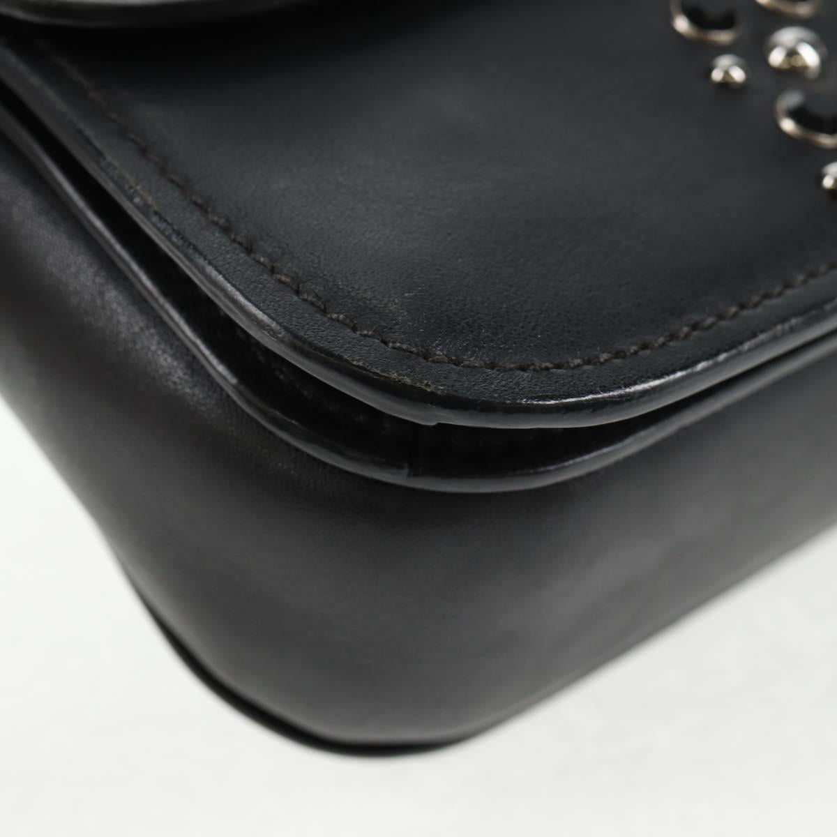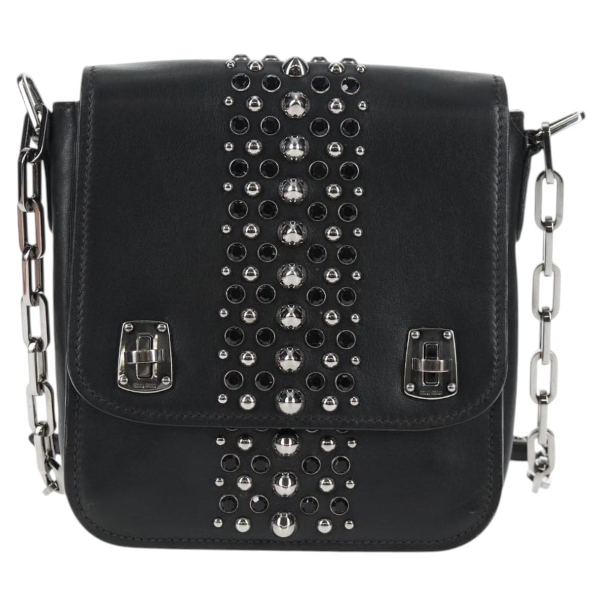 Miu Miu Chain Shoulder Bag Leather Black Silver Auth 138395V