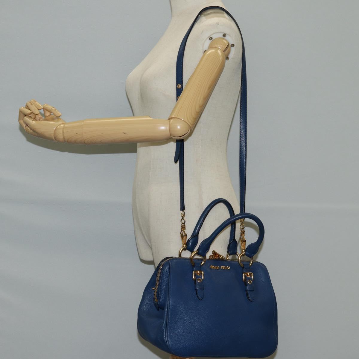 Miu Miu Hand Bag Leather 2way Blue Gold Auth 130218V